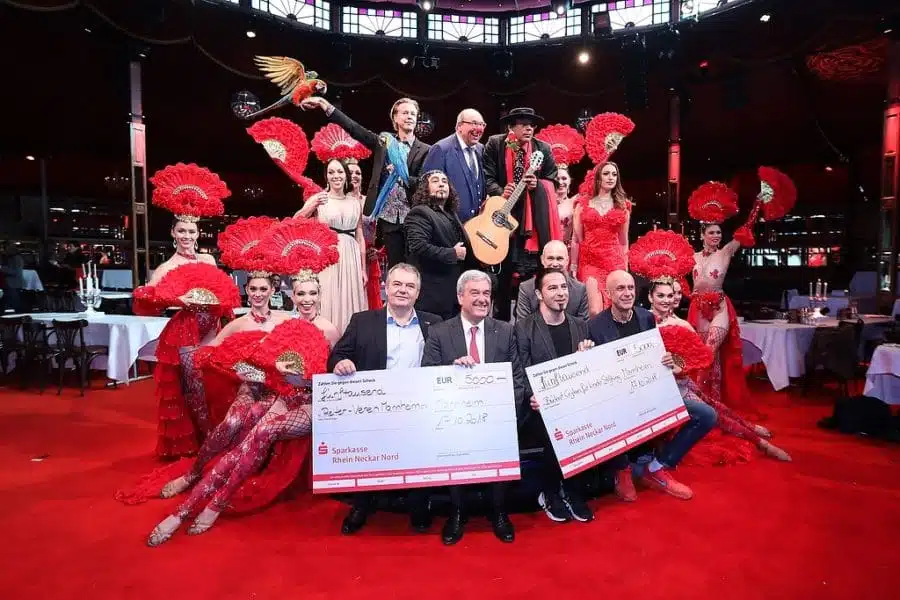 Mannheim, 17.10.2018 – Zwei Wochen vor der ersten Show vermelden die Palazzo-Produzenten Rolf Balschbach und Gregor Spachmann bei der heutigen Pressekonferenz im Mannheimer Spiegelpalast einen neuen sensationellen Verkaufsrekord in der 20-jährigen Palazzo-Geschichte: „Bereits jetzt sind schon über 30.000 Tickets verkauft! Wir sind überwältigt von der Nachfrage und bedanken uns für das Vertrauen unseres Palazzo-Publikums. Gerne möchten wir an diesem Erfolg auch die sozial schwachen und hilfsbedürftigen Menschen in unserer Gesellschaft teilhaben lassen. Aus diesem Grund setzen wir unser Charity-Engagement nunmehr im neunten Jahr mit einer Spende in Höhe von jeweils 5.000 Euro an die Bülent Ceylan Stiftung und den Reiter-Verein Mannheim fort.“