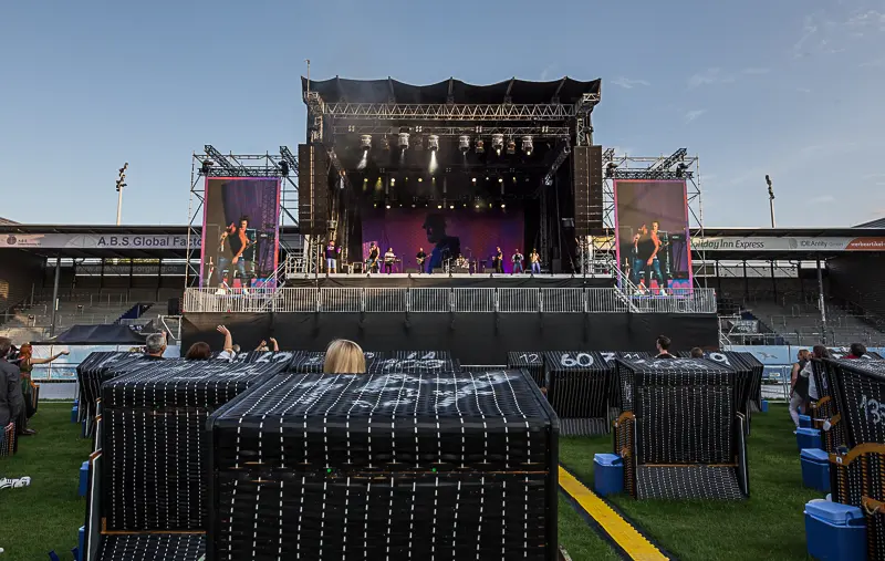 Als erstes betraten Backgroundsängerinnen Treesha und Tamika die Bühne und führten in den Abend ein. Nach 2 Songs und einem weiteren Intro betrat Gentleman nun die Bühne, gut gelaunt steig er ohne weitere Ausschweife ins Programm ein. Die Good Vibrations sprangen direkt aufs Publikum über, selten war Jamaika soweit entfernt aber doch so nah. In Zeiten von Corona liegt Amerika in unerreichbarer Entfernung, so ist jeder dankbar zumindest das Gefühl entfernter Ziele im Herzen spüren zu können. Auch das Wetter spielte an diesem Abend mehr wie mit, zu den karibischen Klängen kamen noch karibische Temperaturen und ein beeindruckender Sonnenuntergang über dem Gelände der Brita Arena. Gentleman bot einen gelungen Mix aus alten Klassikern und spielte sogar neue Stücke aus seinem aktuellen Album „Blaue Stunde“. Bei den neuen Stücken gab es eine Neuerung, denn alle alten Stücke waren durchweg auf Englisch eingesungen. Mit dem aktuellen Album hat sich Gentleman selbst einen Wunsch erfüllt und ein komplettes Album in Deutsch aufgenommen. Auch die neuen Stücke kamen sehr gut beim Publikum an, Reggae funktioniert auch auf Deutsch. Endlich wieder Musik von der Bühne und nicht nur aus dem Radio, ein wohltuender Fortschritt in Richtung Normalität bei Konzerten.