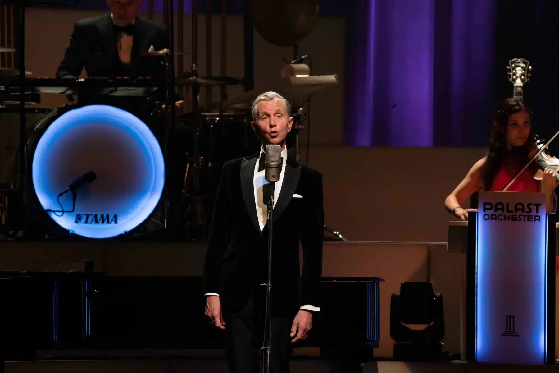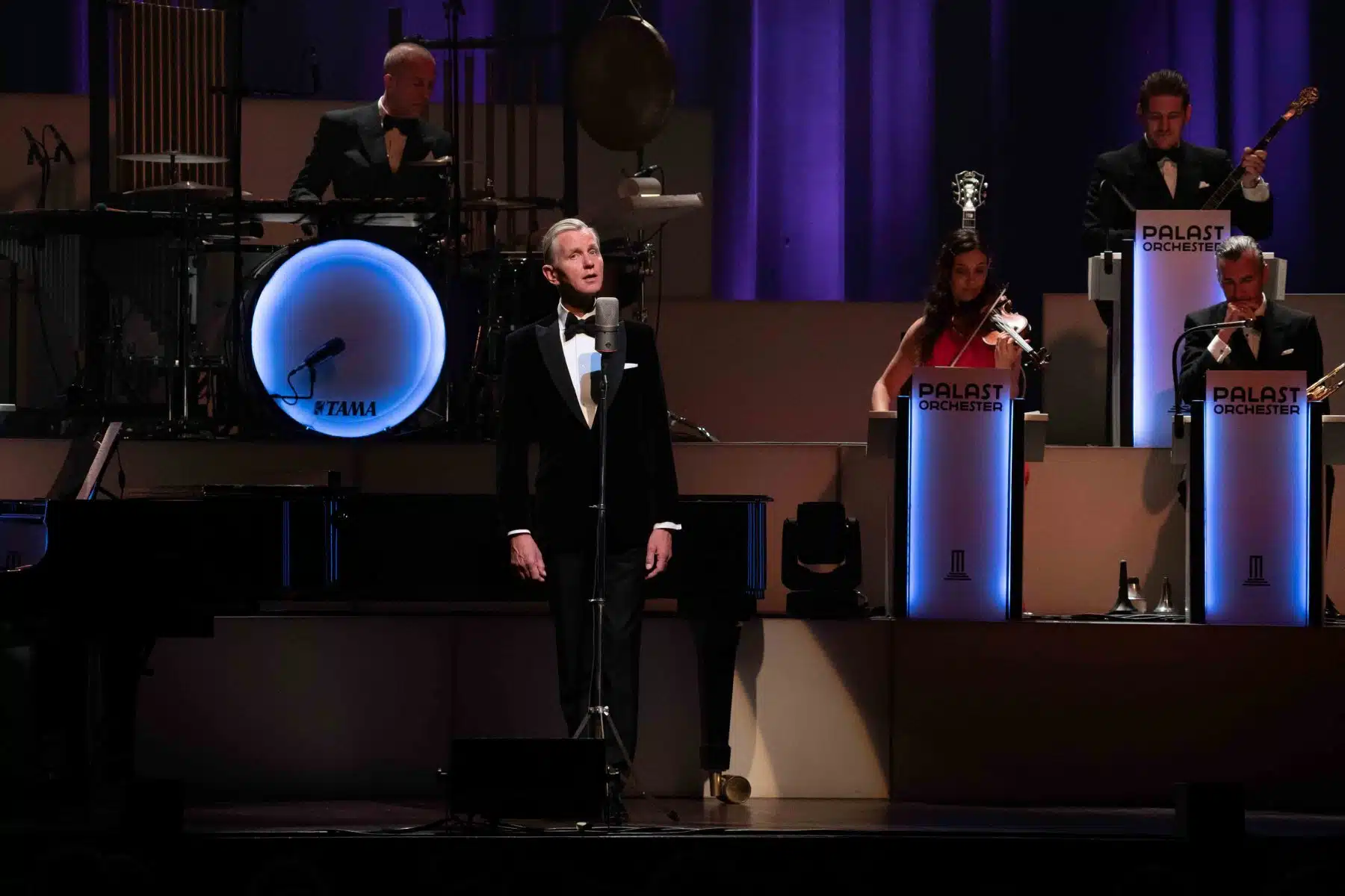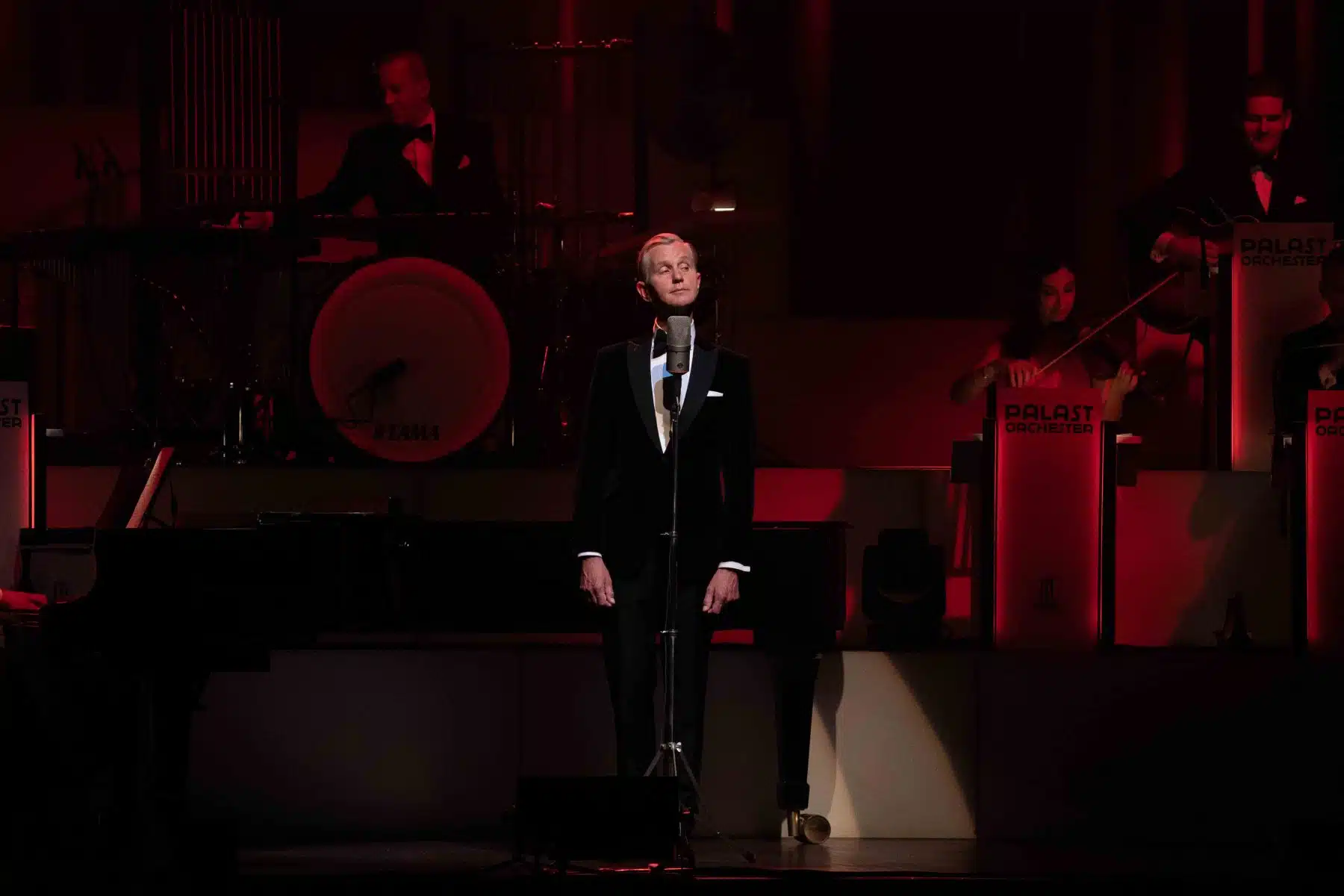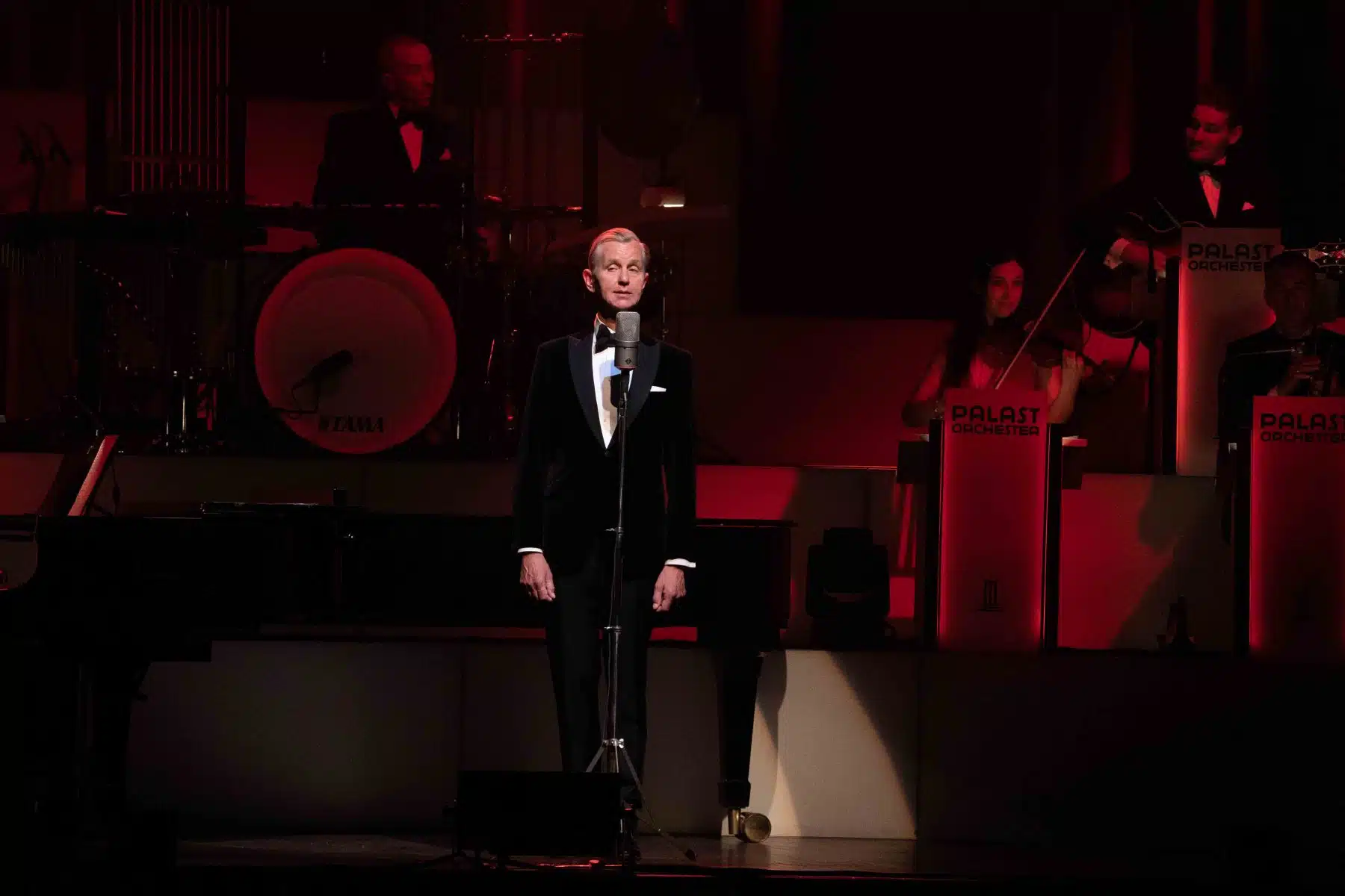 “Heute ist ein guter Tag, um glücklich zu sein” das passte gestern Abend zu Max Raabe & Palast Orchester im ausverkauften Mannheimer Rosengarten. Max Raabe schrieb die Zeile für das Lied „Guten Tag, liebes Glück“. Nun ist “Guten Tag, liebes Glück” Titel des neuen Konzertprogramms von Max Raabe & Palast Orchester. Dazu erschien im November das Album “Max Raabe & Palast Orchester MTV Unplugged”. Zu dieser besonderen Live-Produktion lud sich das Ensemble Künstler ein, die man nicht sofort mit ihm in Verbindung gebracht hätte. Max Raabe präsentiert beispielsweise „Guten Tag, liebes Glück“ zusammen mit der charmanten Sängerin LEA, mit Herbert Grönemeyer singt er „Mambo“, “Der perfekte Moment” entwickelt sich durch Samy Deluxe mühelos zur Rap-Nummer, und mit dem monströsen Mr. Lordi entsteht eine überraschend berührende Version von „Just A Gigolo“. Getragen wird das Ganze mit traumwandlerischer Sicherheit vom virtuosen Palast Orchester.