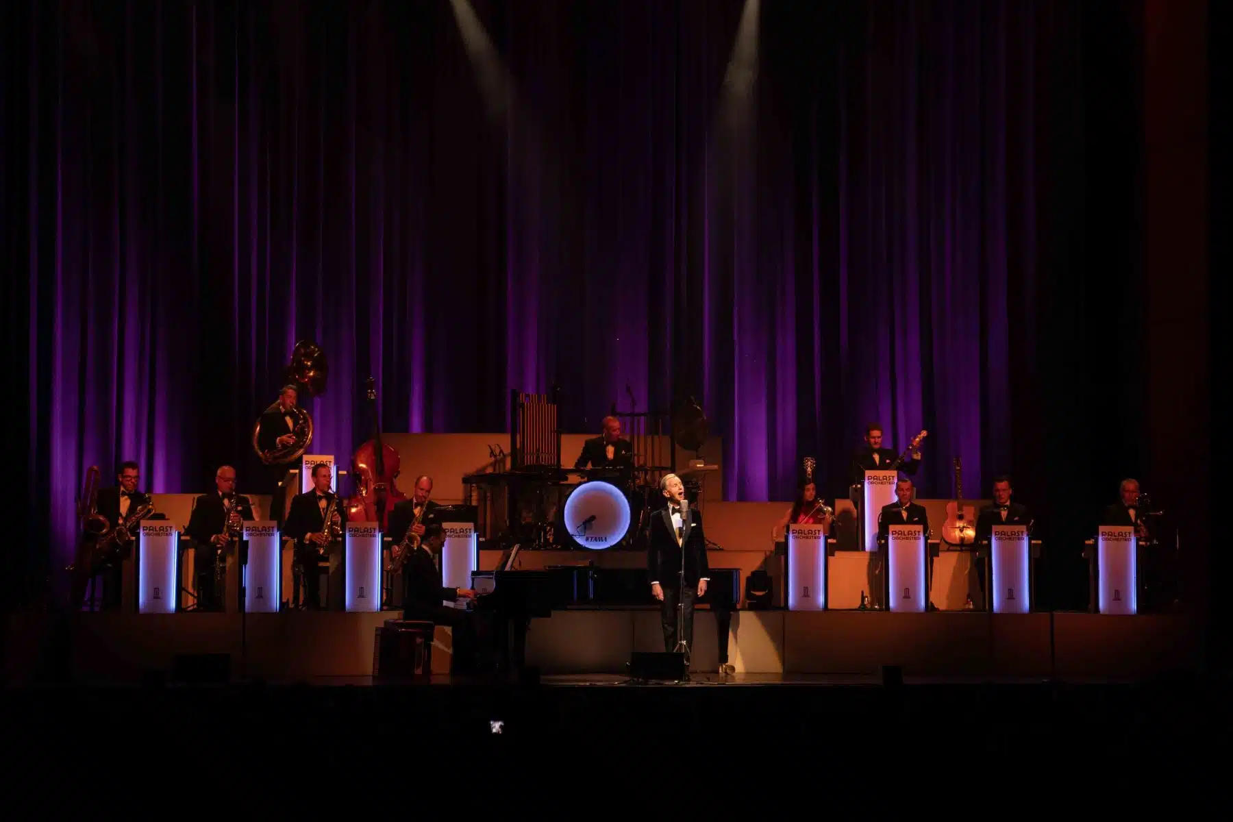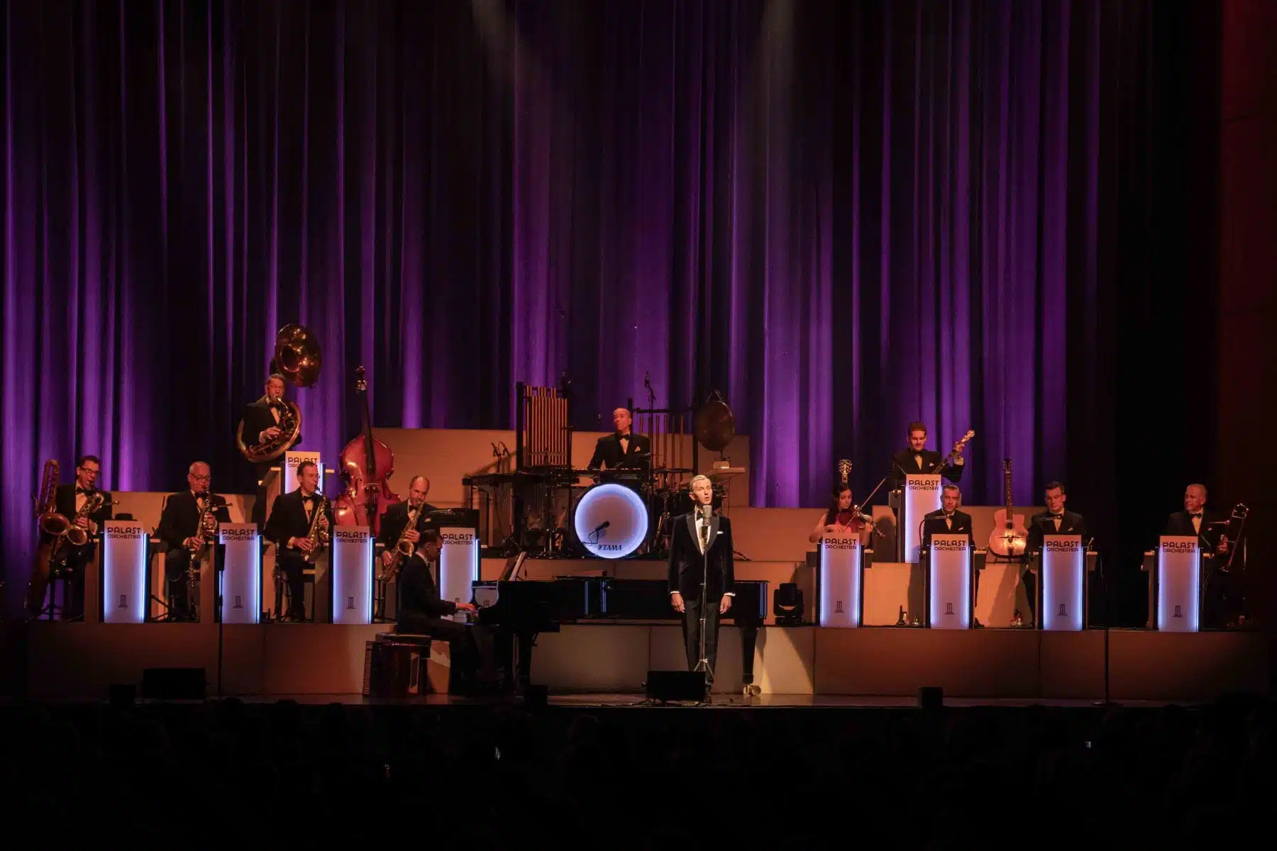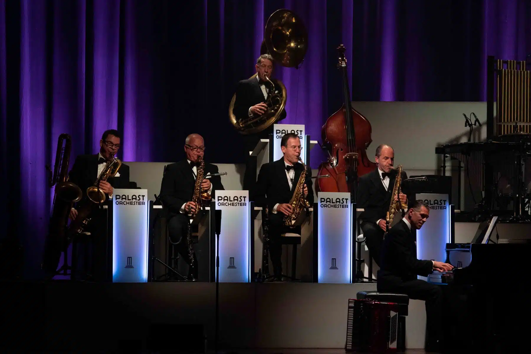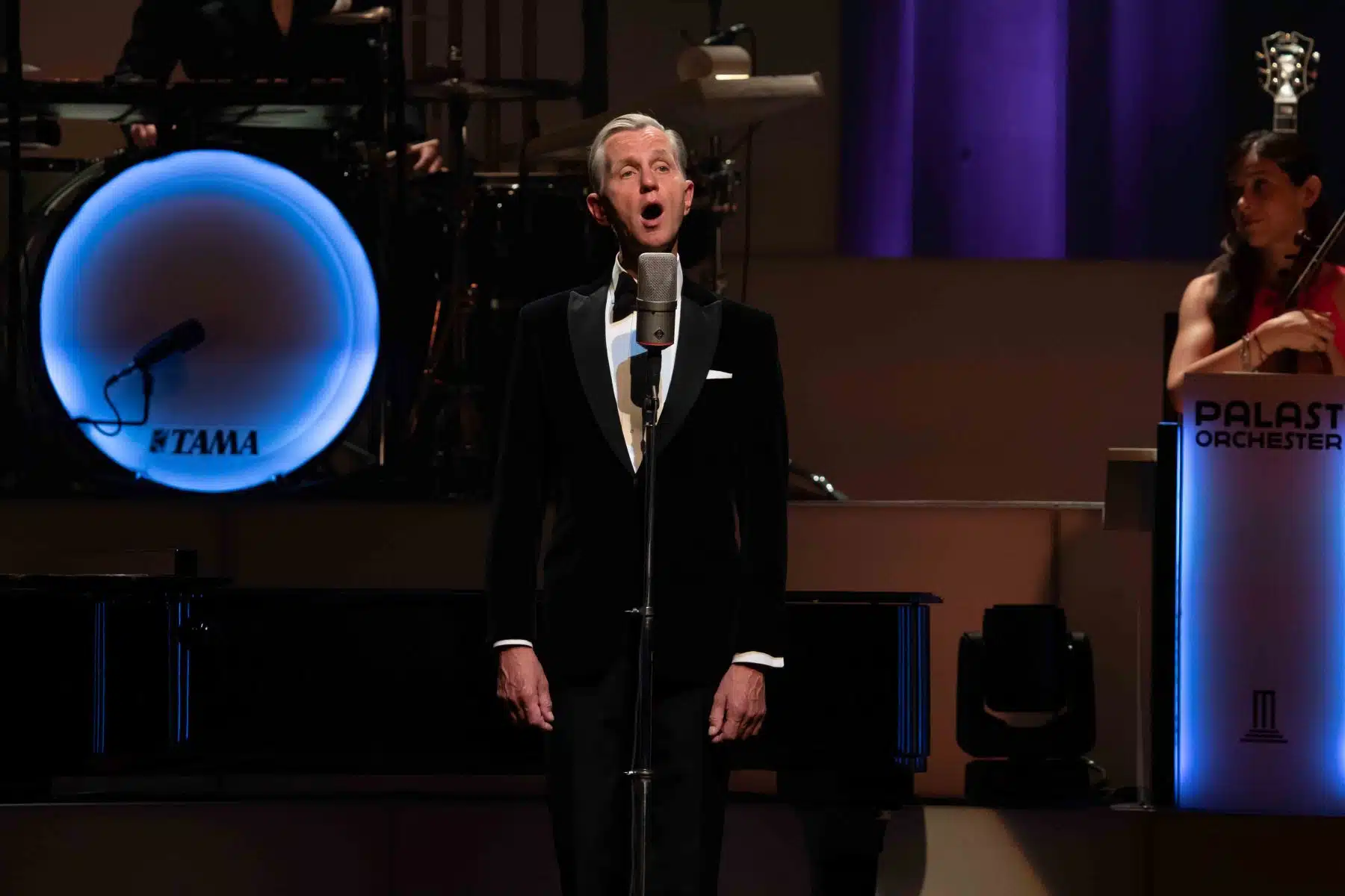 “Heute ist ein guter Tag, um glücklich zu sein” das passte gestern Abend zu Max Raabe & Palast Orchester im ausverkauften Mannheimer Rosengarten. Max Raabe schrieb die Zeile für das Lied „Guten Tag, liebes Glück“. Nun ist “Guten Tag, liebes Glück” Titel des neuen Konzertprogramms von Max Raabe & Palast Orchester. Dazu erschien im November das Album “Max Raabe & Palast Orchester MTV Unplugged”. Zu dieser besonderen Live-Produktion lud sich das Ensemble Künstler ein, die man nicht sofort mit ihm in Verbindung gebracht hätte. Max Raabe präsentiert beispielsweise „Guten Tag, liebes Glück“ zusammen mit der charmanten Sängerin LEA, mit Herbert Grönemeyer singt er „Mambo“, “Der perfekte Moment” entwickelt sich durch Samy Deluxe mühelos zur Rap-Nummer, und mit dem monströsen Mr. Lordi entsteht eine überraschend berührende Version von „Just A Gigolo“. Getragen wird das Ganze mit traumwandlerischer Sicherheit vom virtuosen Palast Orchester.