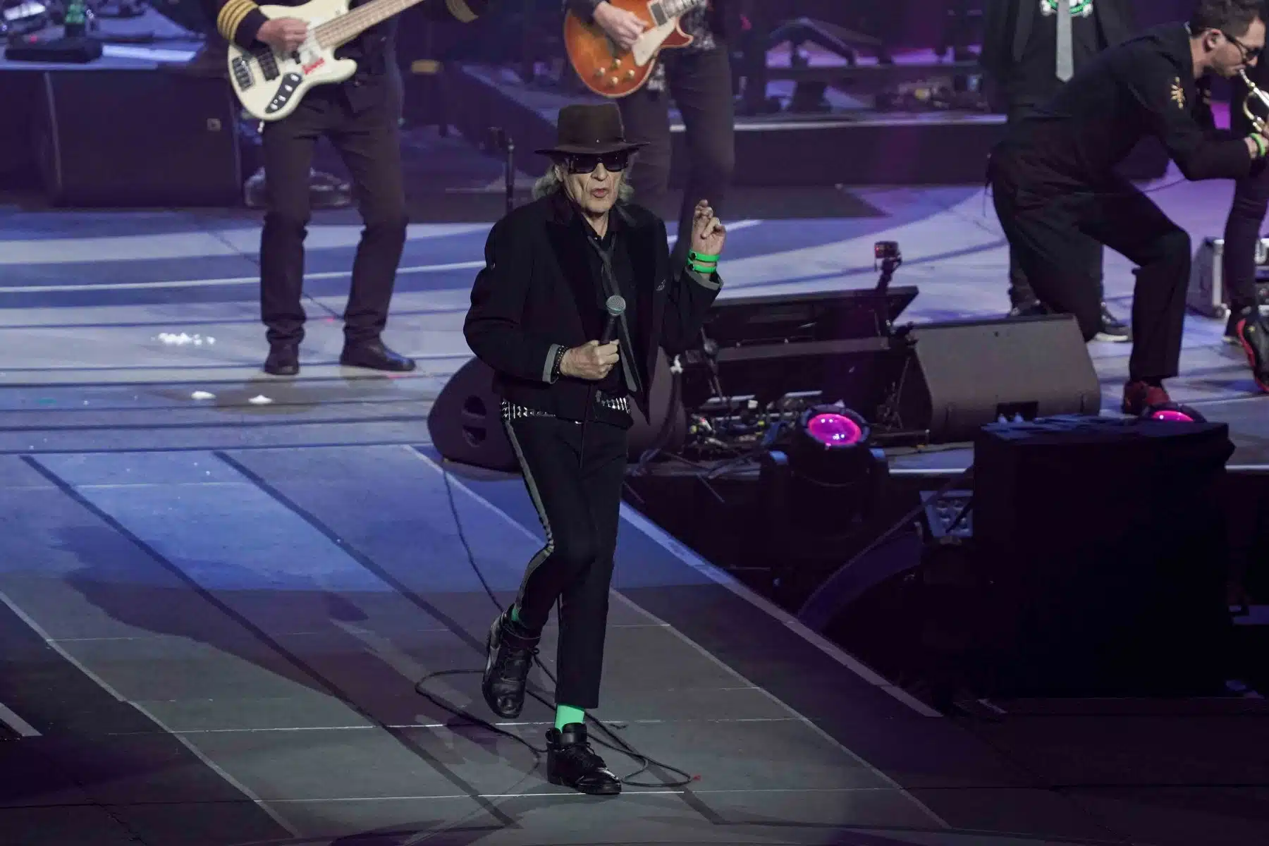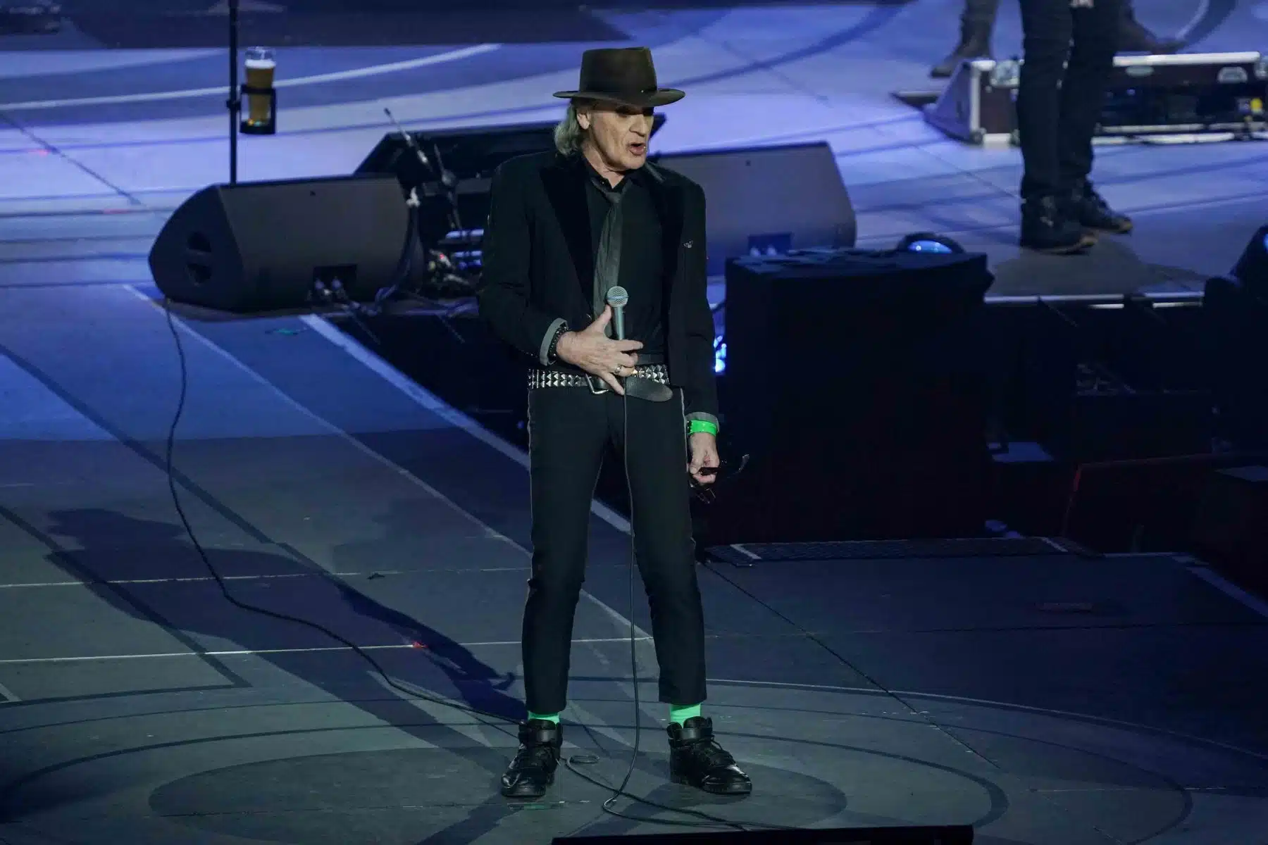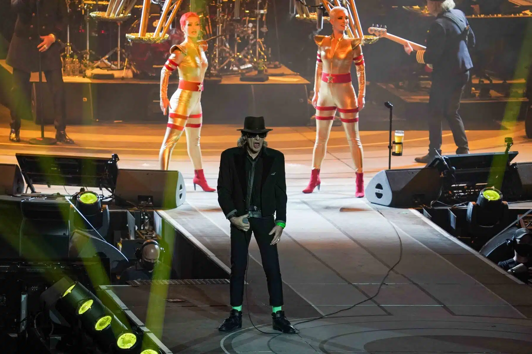 Mit einer humorvollen Einlage schickte Udo Lindenberg Versionen von Putin und Trump in einen imaginären Boxring, um zu verdeutlichen, dass die Politiker, die Kriege anheizen, nie selbst daran beteiligt sind. Der Funken an Humor, den er in all seine Botschaften einfließen ließ, blieb auch bei diesen kritischen Themen nicht aus.
