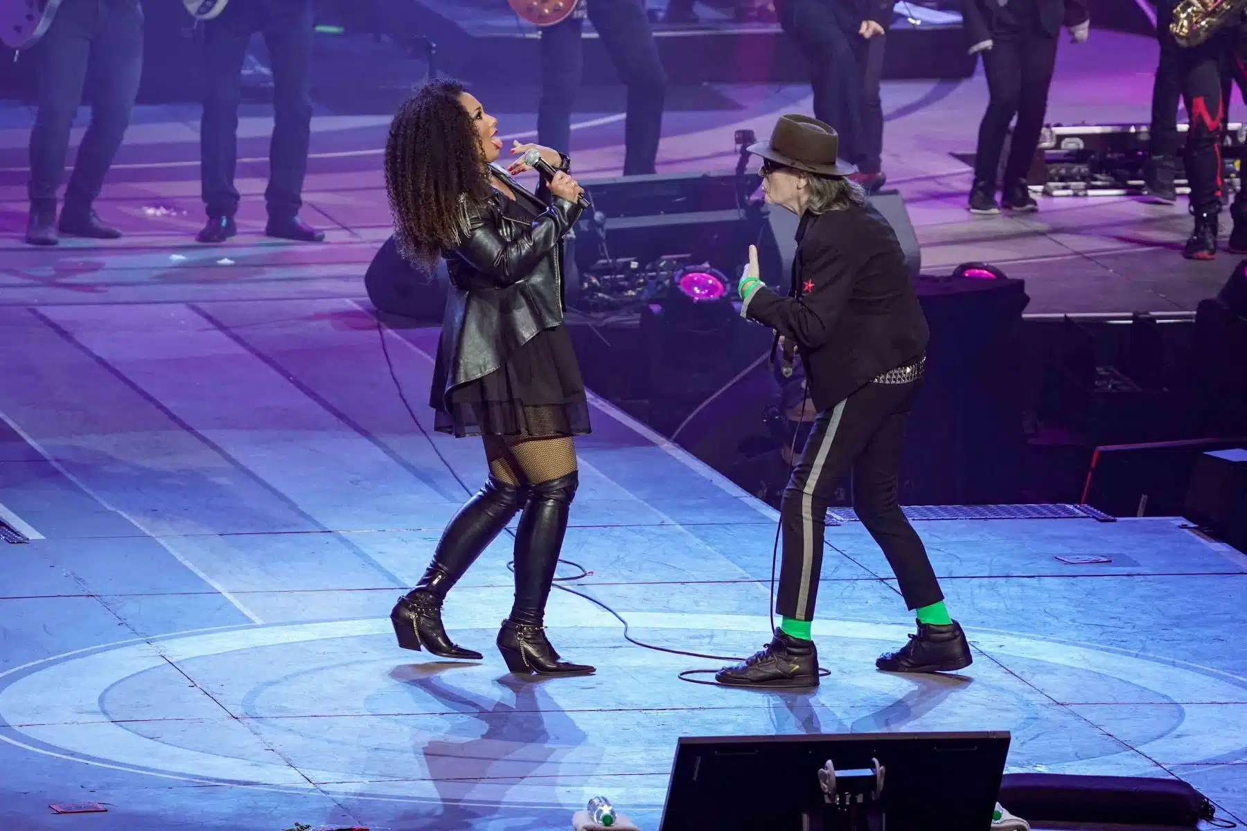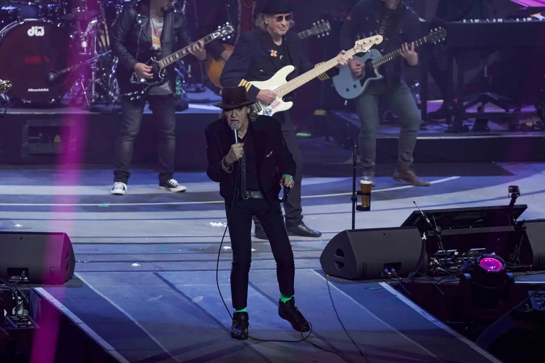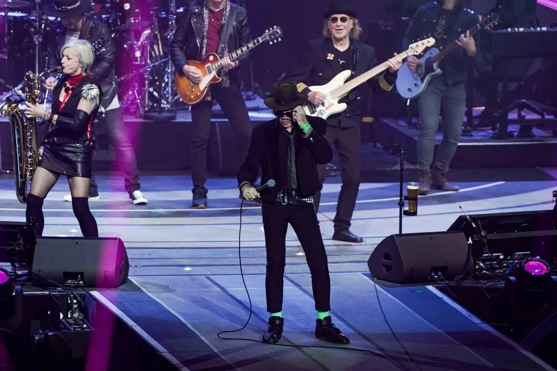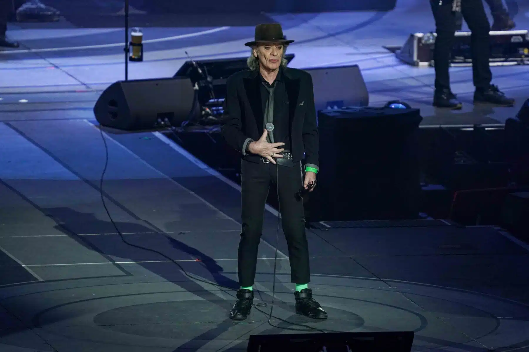 Mit einer humorvollen Einlage schickte Udo Lindenberg Versionen von Putin und Trump in einen imaginären Boxring, um zu verdeutlichen, dass die Politiker, die Kriege anheizen, nie selbst daran beteiligt sind. Der Funken an Humor, den er in all seine Botschaften einfließen ließ, blieb auch bei diesen kritischen Themen nicht aus.
