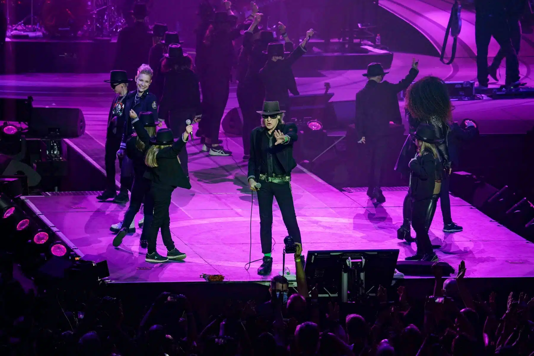 Das Panikorchester und die Tänzer sorgten für eine bunte, fast Varieté-artige Atmosphäre, die das Konzert zusätzlich bereicherte. Auch ein Kinderchor hatte seinen festen Platz in der Show, was für einen besonders emotionalen Moment sorgte. Ein weiterer Höhepunkt des Abends war die Frage, die Udo schon viele Jahre lang aufwirft: „Wozu sind Kriege da?“ Eine Frage, auf die es auch heute noch keine Antwort gibt, aber die für den Künstler und seine Fans von enormer Wichtigkeit bleibt.