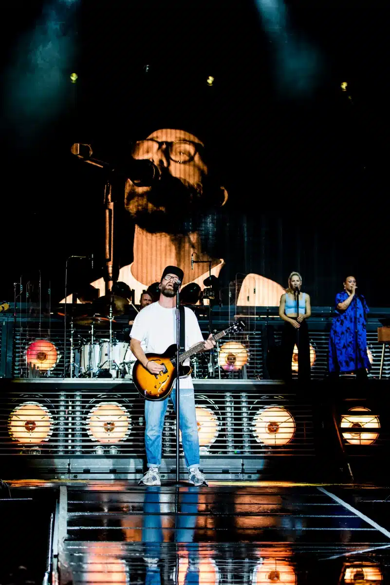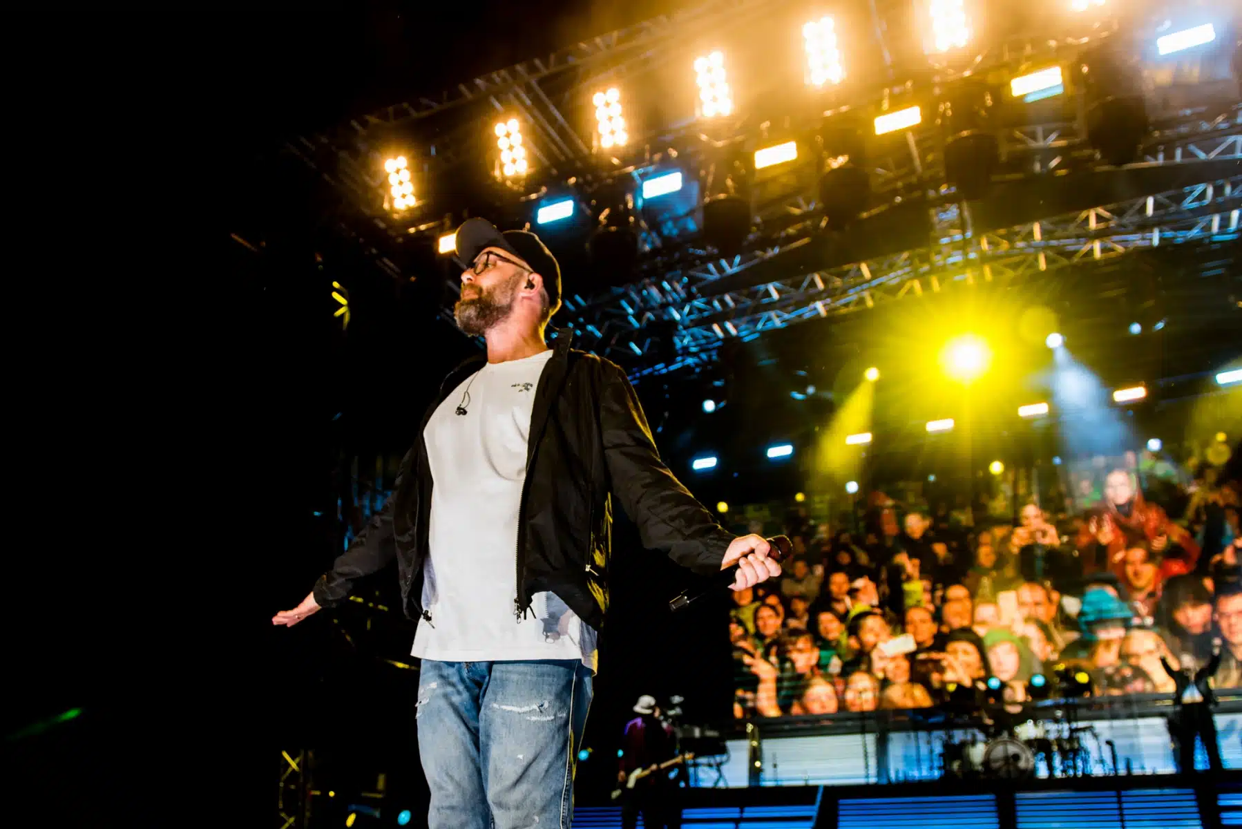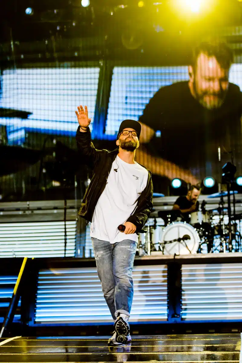 Für Mark Forster war die Liebe das große Thema seiner mitreißenden Show. Direkt zu Beginn seines Konzertes animierte er seine Fans immer, wenn ihnen etwas gut gefällt und/oder sie Liebe spüren, sollen sie eine Hand in die Höhe strecken und die Finger auf- und zumachen. Dieses Zeichen wurde vom gesamten Publikum nach Mark’s berührenden Worten vor dem Lied Liebe umgesetzt: „Wir können hier und heute nicht viel gegen den schrecklichen Krieg in der Ukraine tun, außer Geld spenden und jemand aufnehmen, aber lasst uns unsere Liebe bündeln und raus ins Universum schicken, vielleicht kommt es am richtigen Ende der Welt zurück“.