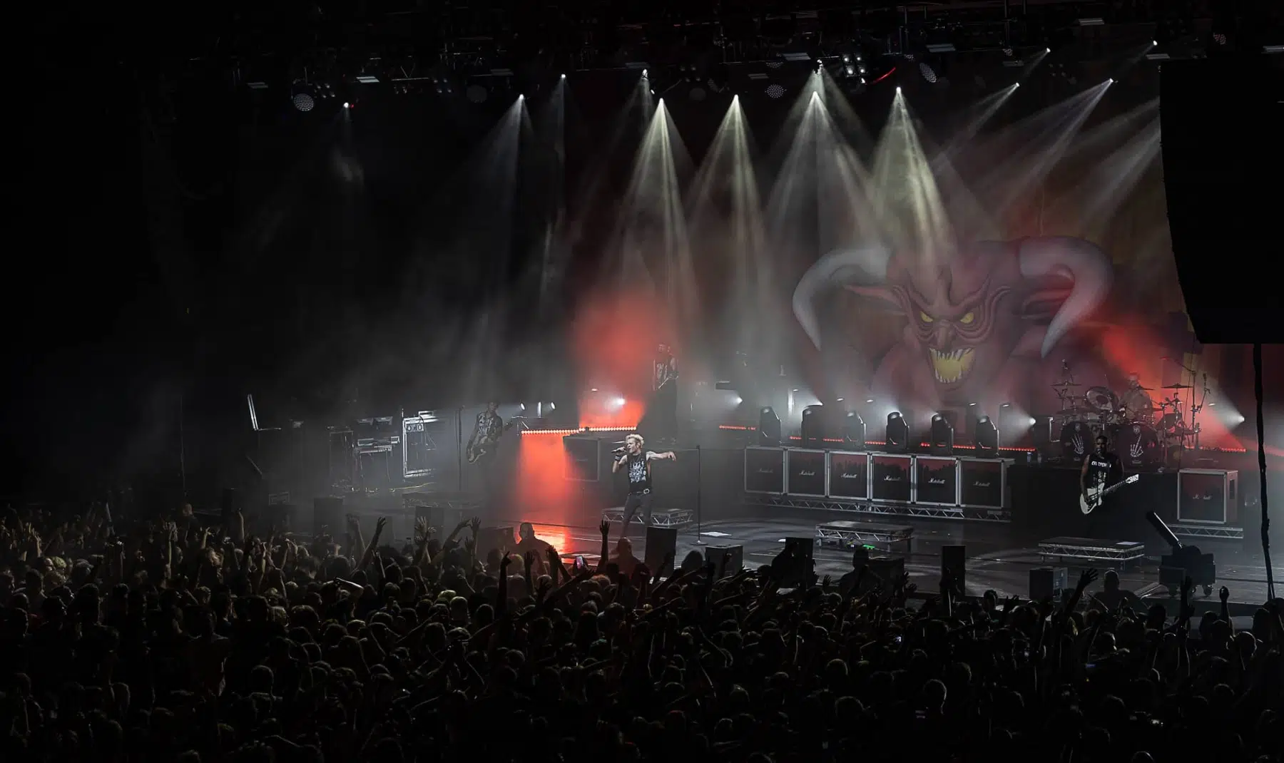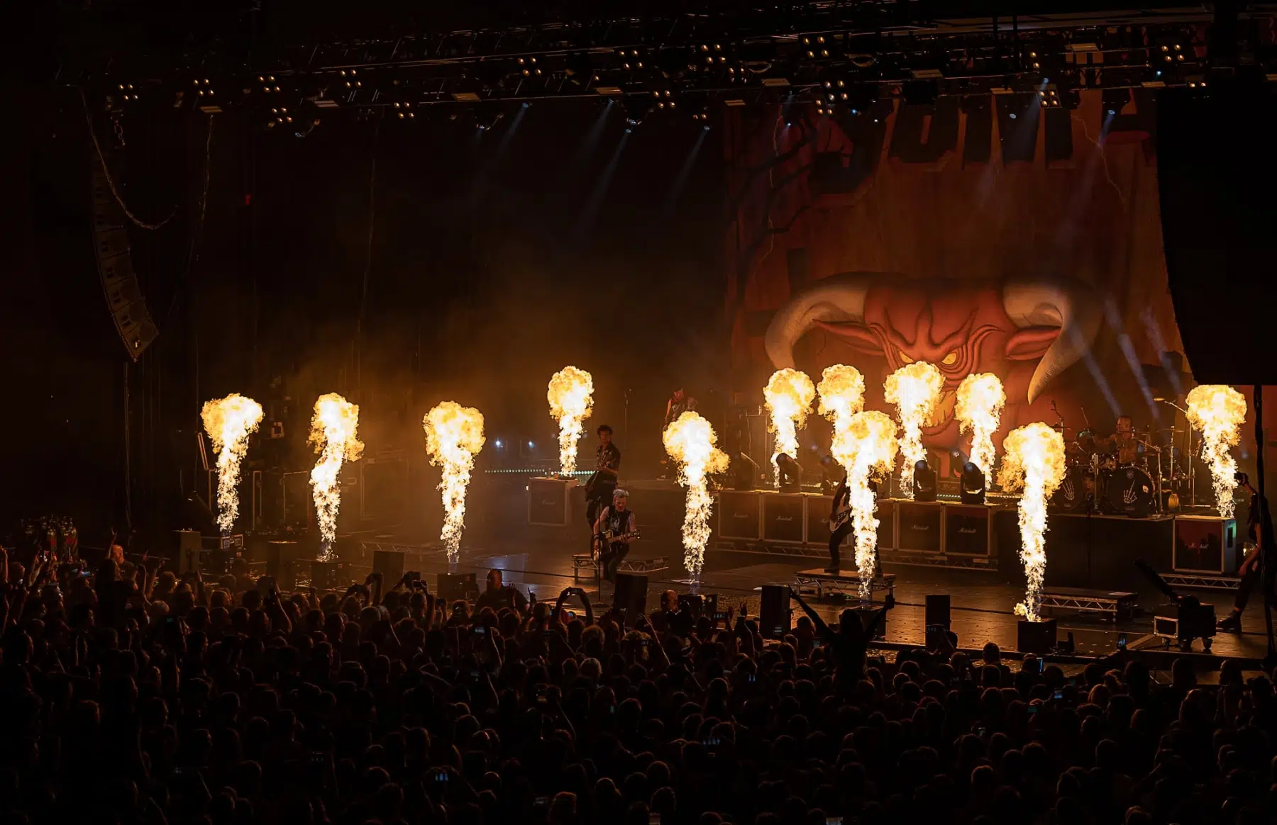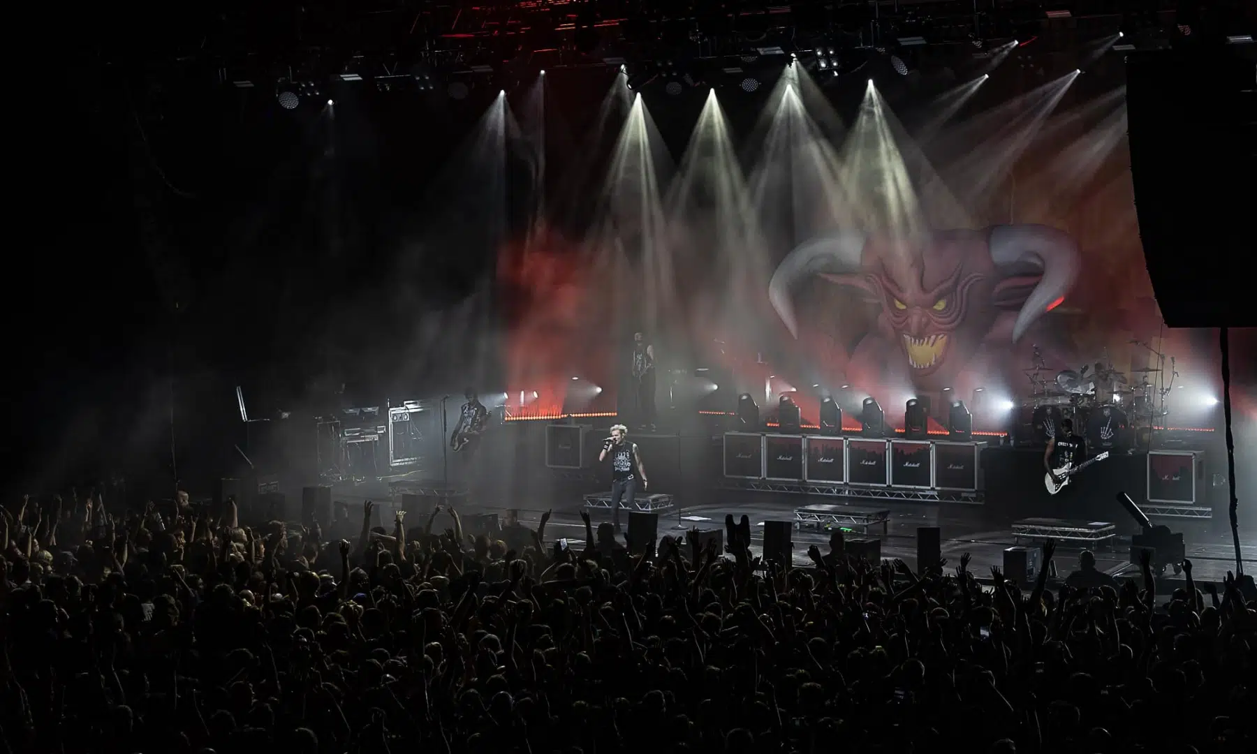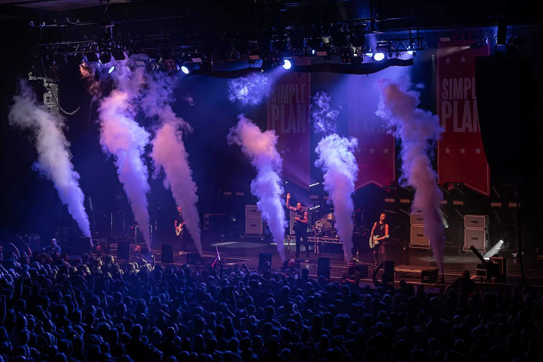 Am 21.09.2022 besuchten Sum 41 mit ihrem Special Guest Simple Plan die Jahrhunderthalle Frankfurt, eröffnet wurde der Abend von Cassyette. Wer in den frühen 2000er das Kinogeschehen verfolgt hatte kam an diesen beiden Bands nicht vorbei, die Komödie „American Pie“ und seine Nachfolger hatten so einige Titel der beiden Bands in ihrem Soundtrack verewigt. So wußte man schon lange im Voraus was einen an diesem Abend erwarten würde. Amerikanischer College Rock vom Feinsten. Man fühlte sich direkt wieder jung als die ersten Töne erklungen. Mit viel Spielfreude betraten Simple Plan die Bühne und legten direkt los, Vollgas war die Devise an diesem Abend. Simple Plan ließen nichts anbrennen und verwöhnten ihre Fans mit all den Songs die sie berühmt machten, „Welcome to my life“ dürfte natürlich nicht fehlen. Simple Plan hatten soviel Spass auf der Bühne dass sie direkt 20 Minuten länger wie geplant spielten. Nach einer verkürzten Umbaupause betraten schließlich Sum 41 die Bühne, nicht minder gut gelaunt wie ihr Special Guest. Drei Jahre ohne Auftritt machten alle Bands hungrig nach dem Band in der Menge, endlich wieder in die Gesichter der Fans blicken war deren Wunsch der sich heute endlich wieder erfüllen sollte. Gut gelaunt und motiviert boten Sum 41 eine emotionsgeladene Show begleitet von passender Pyrotechnik. Für ein paar Stunden kam der Sommer wieder zurück, Sum 41 und Simple Plan stehen für Party, Sommer und Sonne, und feiern bis in den Morgen. Trotzdem nahmen sie sich auch die Zeit um ein paar ernstere Töne anzuschlagen. Man merkte dass auch diese Bands nun erwachsener geworden sind, man wird nun mal nicht jünger und geht mit der Zeit. Ihre Musik haben sie allerdings nie geändert, man bekommt was man erwartet wenn man zu ihren Shows geht.