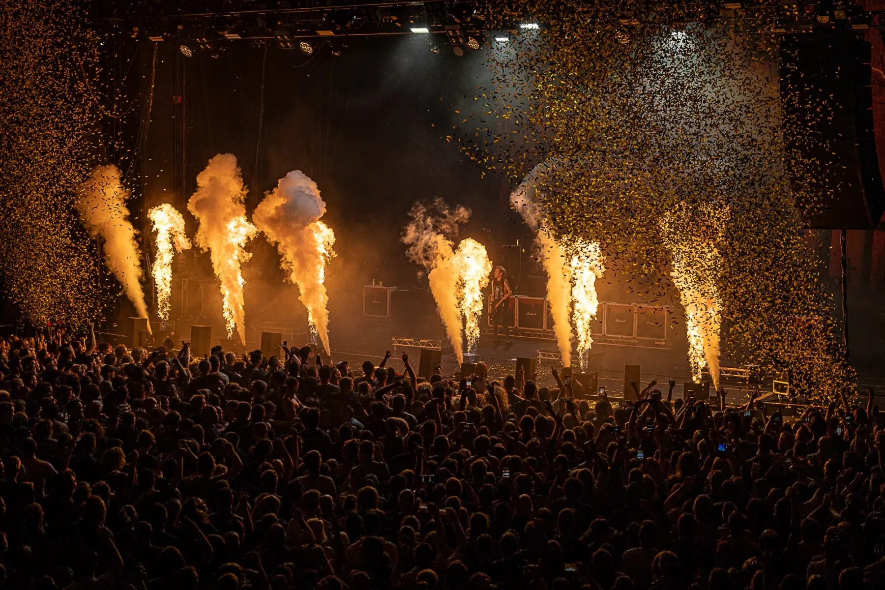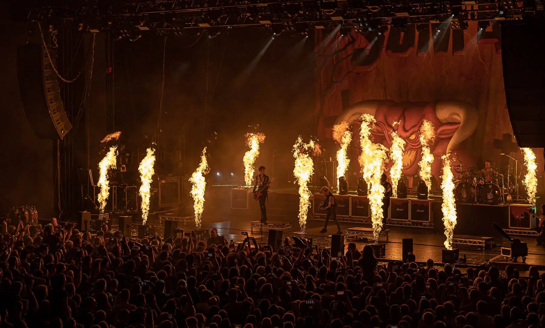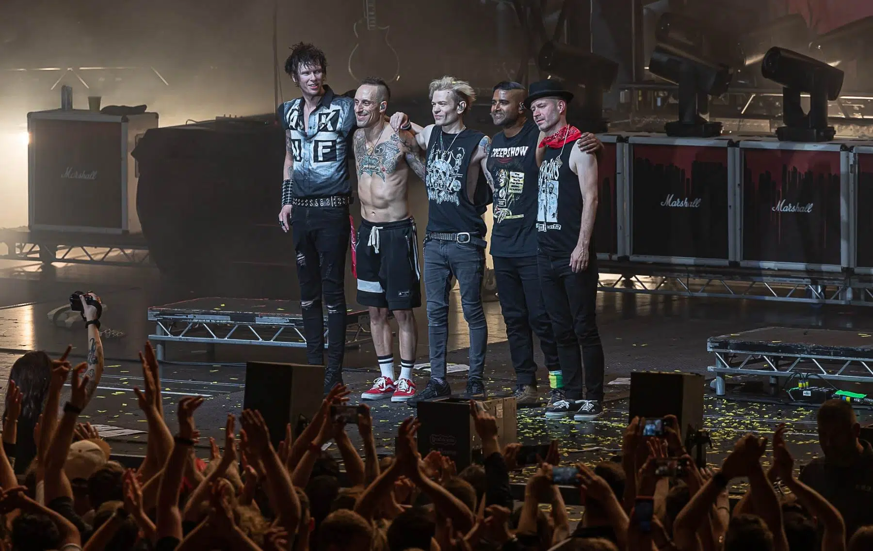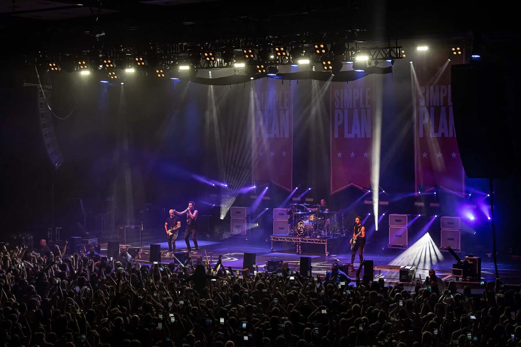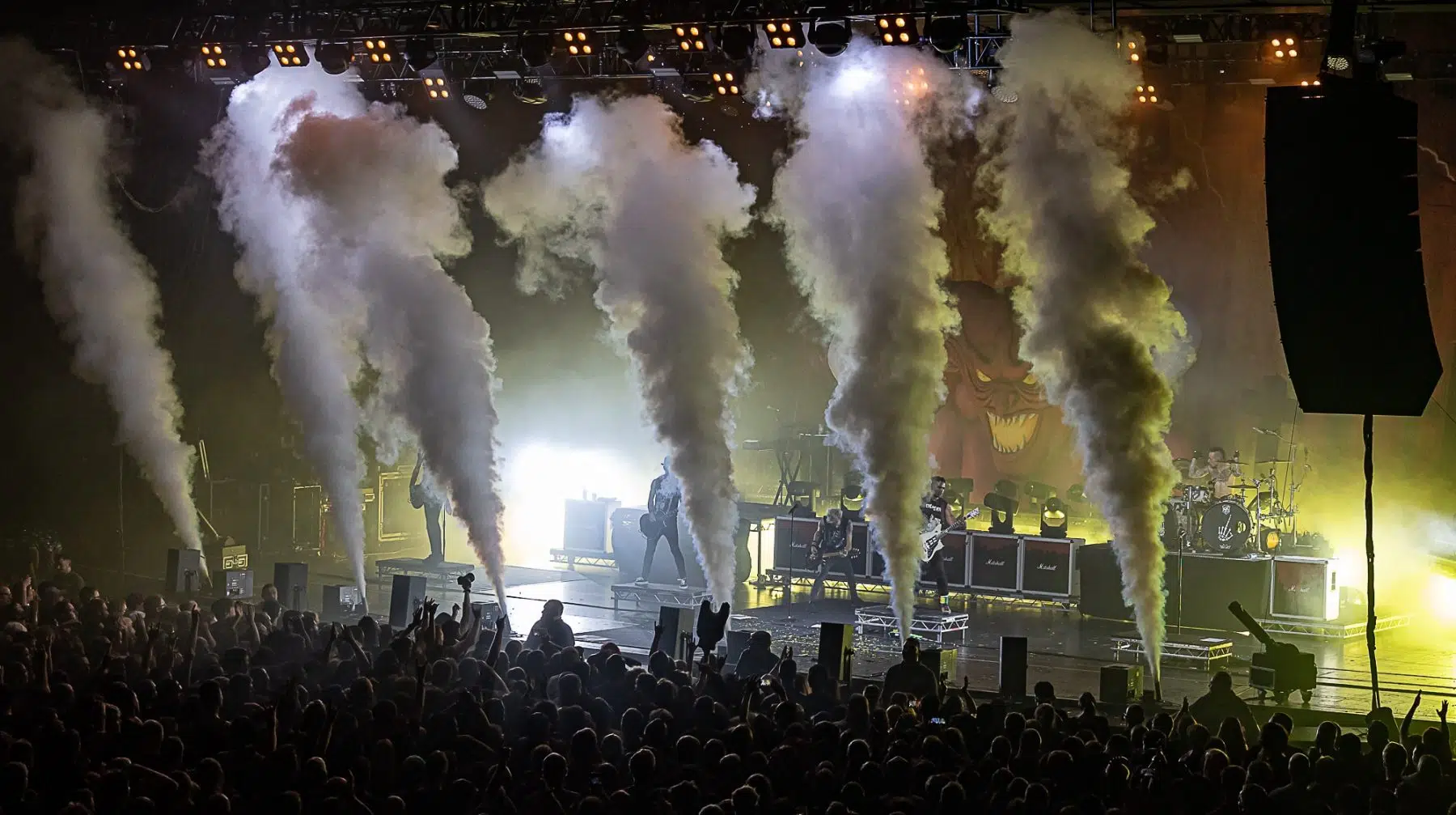 Am 21.09.2022 besuchten Sum 41 mit ihrem Special Guest Simple Plan die Jahrhunderthalle Frankfurt, eröffnet wurde der Abend von Cassyette. Wer in den frühen 2000er das Kinogeschehen verfolgt hatte kam an diesen beiden Bands nicht vorbei, die Komödie „American Pie“ und seine Nachfolger hatten so einige Titel der beiden Bands in ihrem Soundtrack verewigt. So wußte man schon lange im Voraus was einen an diesem Abend erwarten würde. Amerikanischer College Rock vom Feinsten. Man fühlte sich direkt wieder jung als die ersten Töne erklungen. Mit viel Spielfreude betraten Simple Plan die Bühne und legten direkt los, Vollgas war die Devise an diesem Abend. Simple Plan ließen nichts anbrennen und verwöhnten ihre Fans mit all den Songs die sie berühmt machten, „Welcome to my life“ dürfte natürlich nicht fehlen. Simple Plan hatten soviel Spass auf der Bühne dass sie direkt 20 Minuten länger wie geplant spielten. Nach einer verkürzten Umbaupause betraten schließlich Sum 41 die Bühne, nicht minder gut gelaunt wie ihr Special Guest. Drei Jahre ohne Auftritt machten alle Bands hungrig nach dem Band in der Menge, endlich wieder in die Gesichter der Fans blicken war deren Wunsch der sich heute endlich wieder erfüllen sollte. Gut gelaunt und motiviert boten Sum 41 eine emotionsgeladene Show begleitet von passender Pyrotechnik. Für ein paar Stunden kam der Sommer wieder zurück, Sum 41 und Simple Plan stehen für Party, Sommer und Sonne, und feiern bis in den Morgen. Trotzdem nahmen sie sich auch die Zeit um ein paar ernstere Töne anzuschlagen. Man merkte dass auch diese Bands nun erwachsener geworden sind, man wird nun mal nicht jünger und geht mit der Zeit. Ihre Musik haben sie allerdings nie geändert, man bekommt was man erwartet wenn man zu ihren Shows geht.
