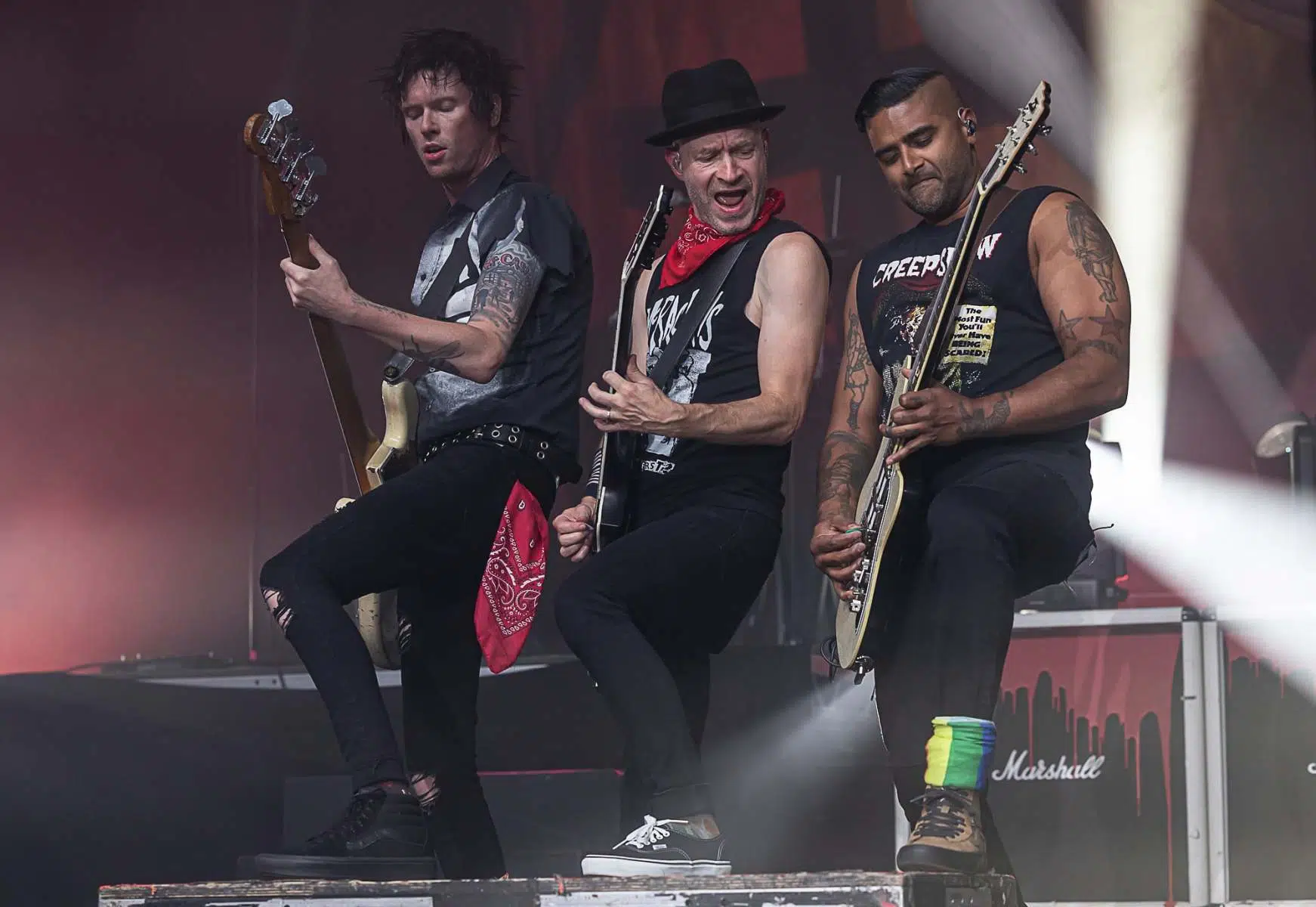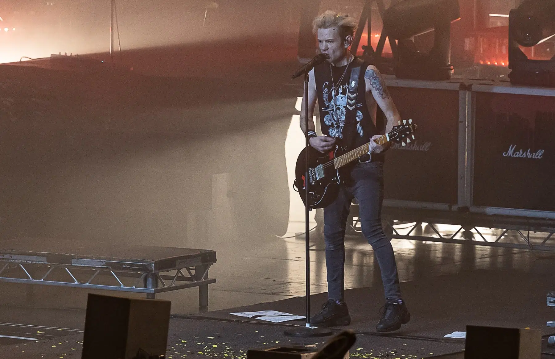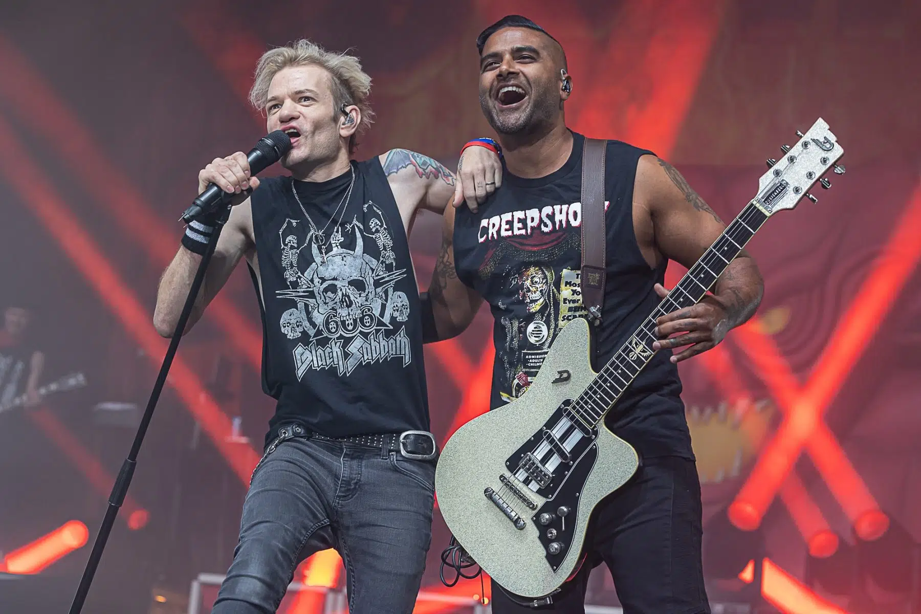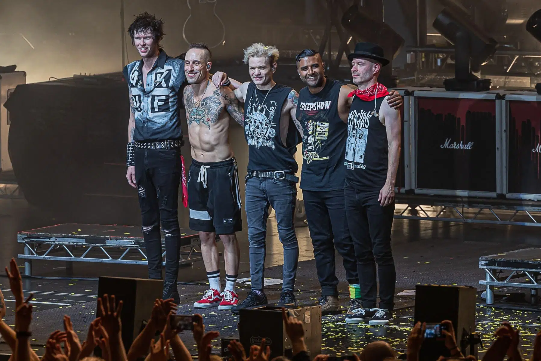 Am 21.09.2022 besuchten Sum 41 mit ihrem Special Guest Simple Plan die Jahrhunderthalle Frankfurt, eröffnet wurde der Abend von Cassyette. Wer in den frühen 2000er das Kinogeschehen verfolgt hatte kam an diesen beiden Bands nicht vorbei, die Komödie „American Pie“ und seine Nachfolger hatten so einige Titel der beiden Bands in ihrem Soundtrack verewigt. So wußte man schon lange im Voraus was einen an diesem Abend erwarten würde. Amerikanischer College Rock vom Feinsten. Man fühlte sich direkt wieder jung als die ersten Töne erklungen. Mit viel Spielfreude betraten Simple Plan die Bühne und legten direkt los, Vollgas war die Devise an diesem Abend. Simple Plan ließen nichts anbrennen und verwöhnten ihre Fans mit all den Songs die sie berühmt machten, „Welcome to my life“ dürfte natürlich nicht fehlen. Simple Plan hatten soviel Spass auf der Bühne dass sie direkt 20 Minuten länger wie geplant spielten. Nach einer verkürzten Umbaupause betraten schließlich Sum 41 die Bühne, nicht minder gut gelaunt wie ihr Special Guest. Drei Jahre ohne Auftritt machten alle Bands hungrig nach dem Band in der Menge, endlich wieder in die Gesichter der Fans blicken war deren Wunsch der sich heute endlich wieder erfüllen sollte. Gut gelaunt und motiviert boten Sum 41 eine emotionsgeladene Show begleitet von passender Pyrotechnik. Für ein paar Stunden kam der Sommer wieder zurück, Sum 41 und Simple Plan stehen für Party, Sommer und Sonne, und feiern bis in den Morgen. Trotzdem nahmen sie sich auch die Zeit um ein paar ernstere Töne anzuschlagen. Man merkte dass auch diese Bands nun erwachsener geworden sind, man wird nun mal nicht jünger und geht mit der Zeit. Ihre Musik haben sie allerdings nie geändert, man bekommt was man erwartet wenn man zu ihren Shows geht.