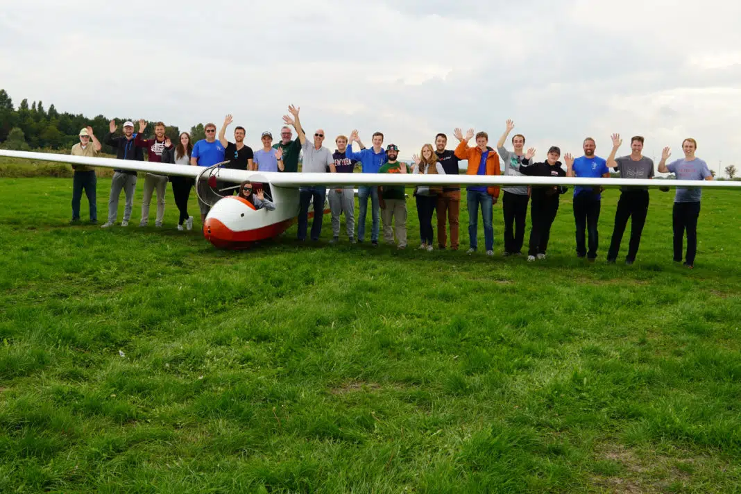 Cheffluglehrer und Geschäftsführer des Vereins, Herbert Wersching, landete mit 5,25 Metern auf Platz 1. Dichtgefolgt von Christoph Tecklenburg auf Platz 2, der nur 25 Zentimeter weiter rutschte. Und Julian Jung auf Rang 3.