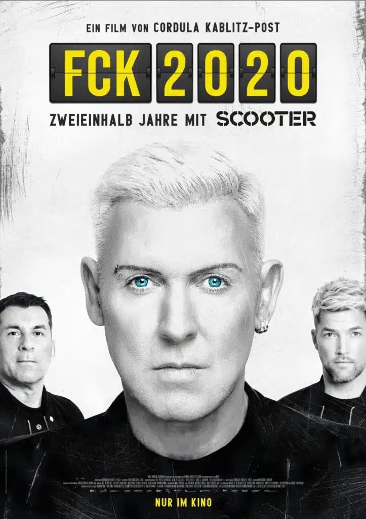 Der Musikdokumentarfilm FCK 2020 von Regisseurin Cordula Kablitz-Post begleitet Deutschlands unangefochtene Techno-Superstars SCOOTER über die letzten zweieinhalb Jahre quer durch Europa – privat, im Studio, auf Reisen, auf Konzerten. Der Titel ist programmatisch:
