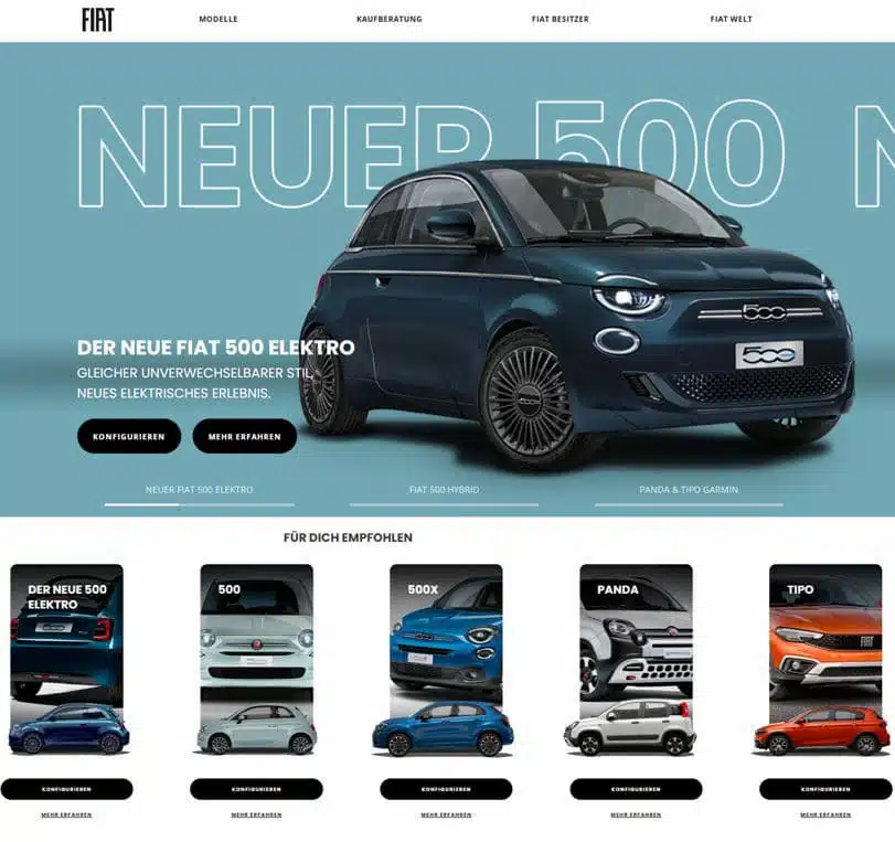 - Nur noch drei Auswahlschritte für jeden neuen FIAT: Modell, Farbe und Ausstattungspakete