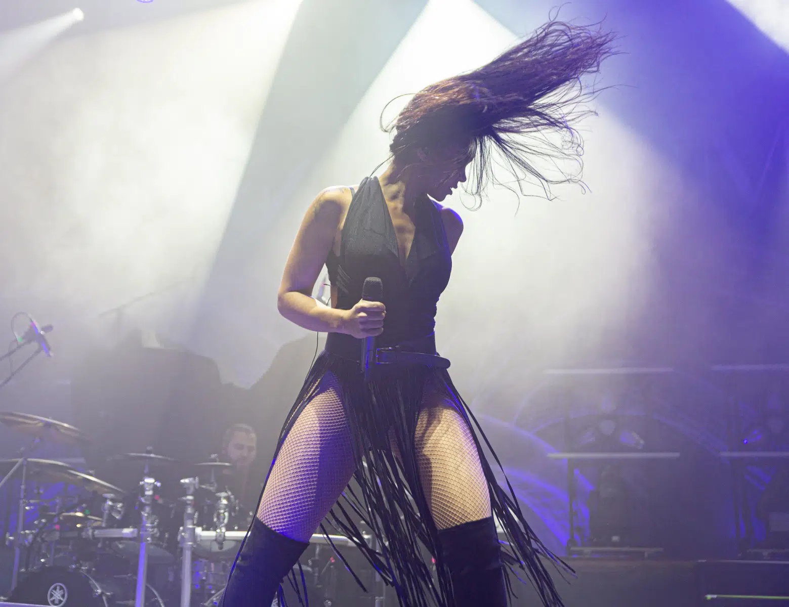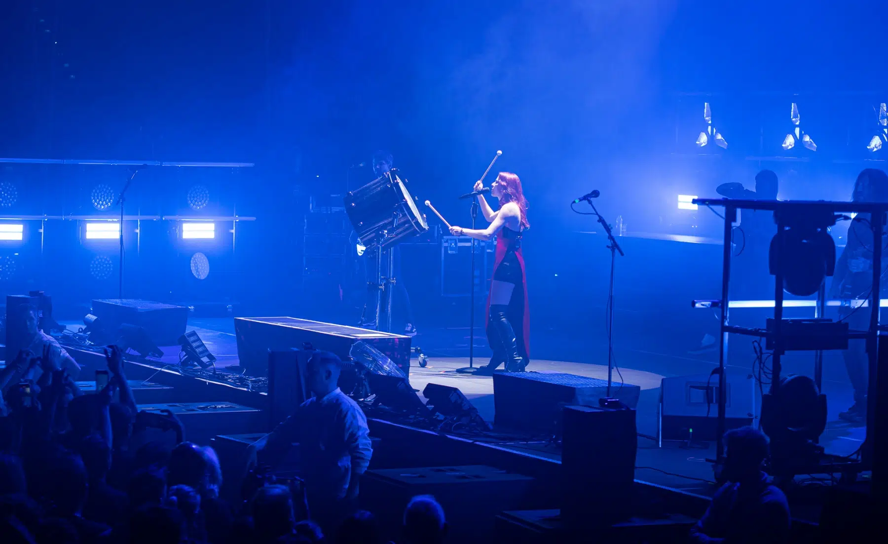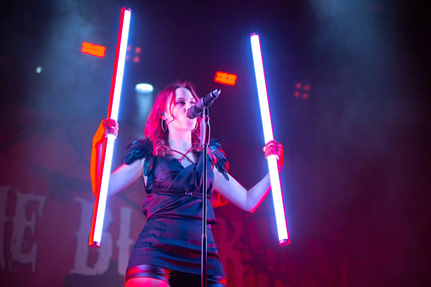 Nun war es soweit – 21:45 Uhr wurde es dunkel auf der Bühne und das Intro erklang. Im knallroten Scheinwerferlicht betrat die Band um Frontfrau Jennifer Haben die Stage und präsentierten den vor kurzem veröffentlichten Song “Is There Anybody Out There?”. Dieser wird auf dem am 13. Januar erscheinendem Self-Titles Album zu finden sein. Mit zwei Leuchtstäben untermalte die Sängerin zudem noch den Song. Als zweites Lied gab es “Lost In Forever”, gefolgt von einem ganz alten Song und Klassiker “Songs Of Love And Death”. Soundtechnisch passte die ganze Show über alles echt gut und die Lichtshow war wirklich klasse. Fotos davon findet ihr natürlich in der Galerie unten.