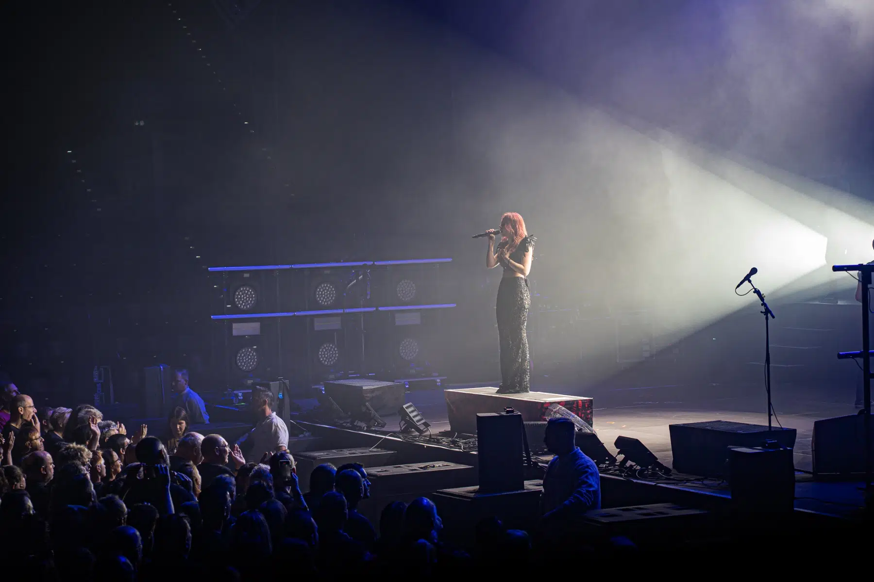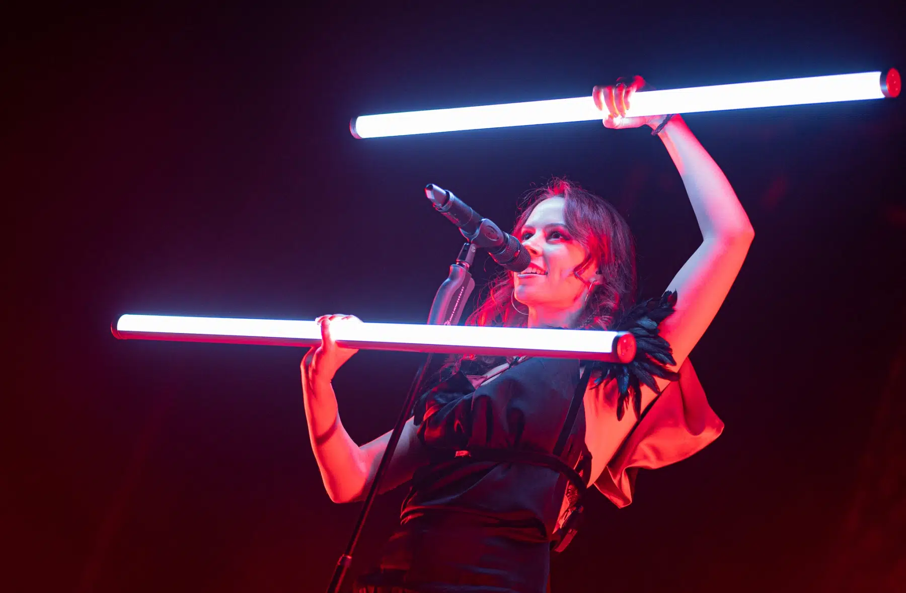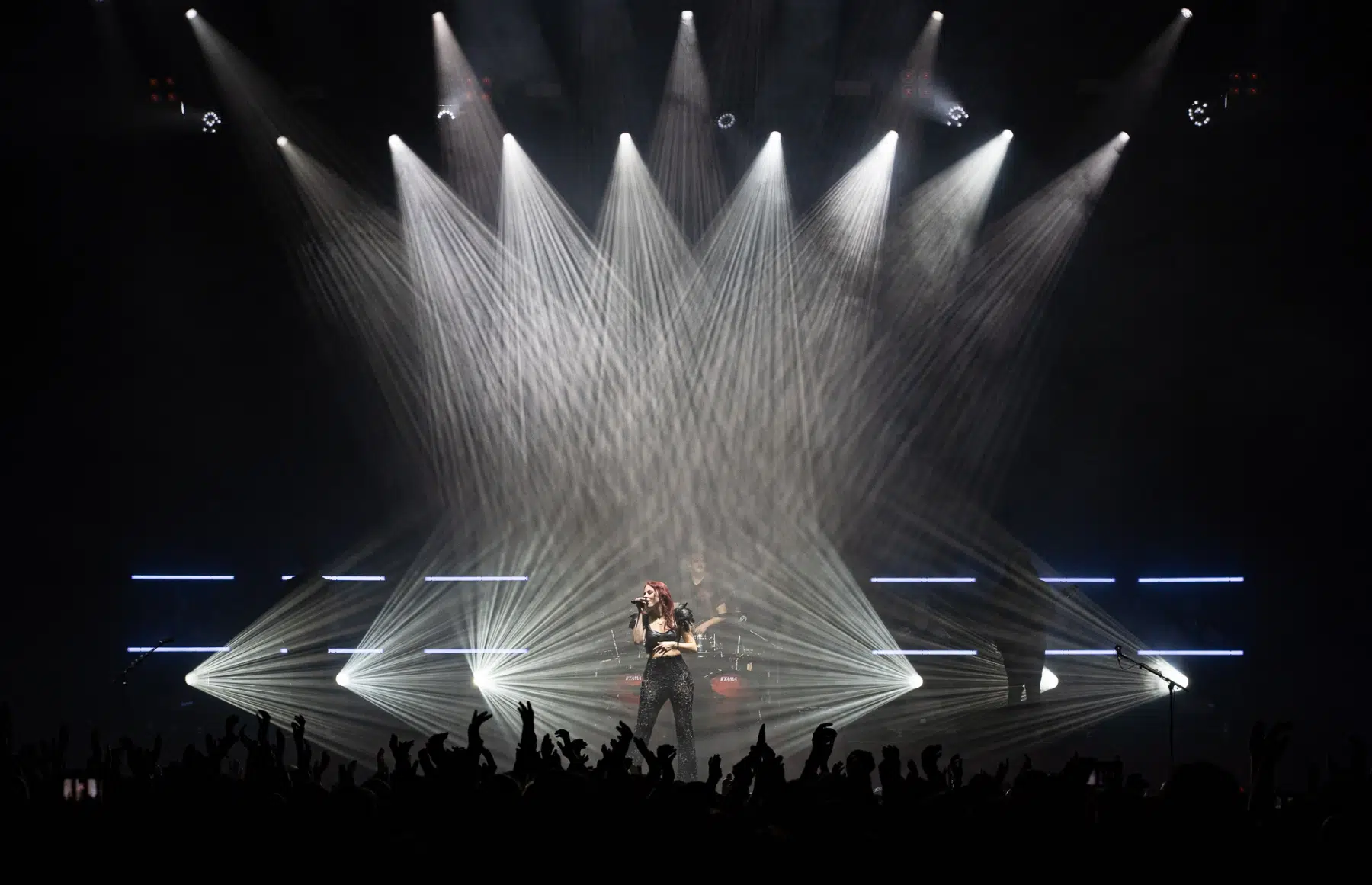 Nun war es soweit – 21:45 Uhr wurde es dunkel auf der Bühne und das Intro erklang. Im knallroten Scheinwerferlicht betrat die Band um Frontfrau Jennifer Haben die Stage und präsentierten den vor kurzem veröffentlichten Song “Is There Anybody Out There?”. Dieser wird auf dem am 13. Januar erscheinendem Self-Titles Album zu finden sein. Mit zwei Leuchtstäben untermalte die Sängerin zudem noch den Song. Als zweites Lied gab es “Lost In Forever”, gefolgt von einem ganz alten Song und Klassiker “Songs Of Love And Death”. Soundtechnisch passte die ganze Show über alles echt gut und die Lichtshow war wirklich klasse. Fotos davon findet ihr natürlich in der Galerie unten.