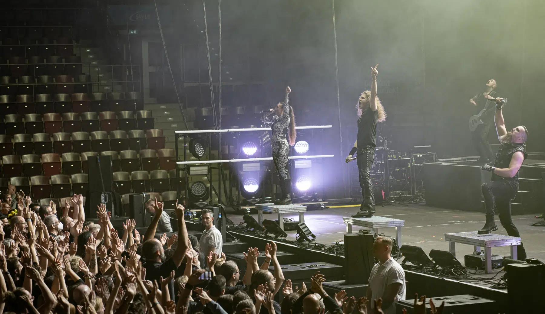 Die ca. 3000 Besucher konnten aber bei der nächsten Band noch mehr feiern, denn Amaranthe setzen auf Melodic Death Metal mit poppigen Elementen, die dafür perfekt geeignet sind.