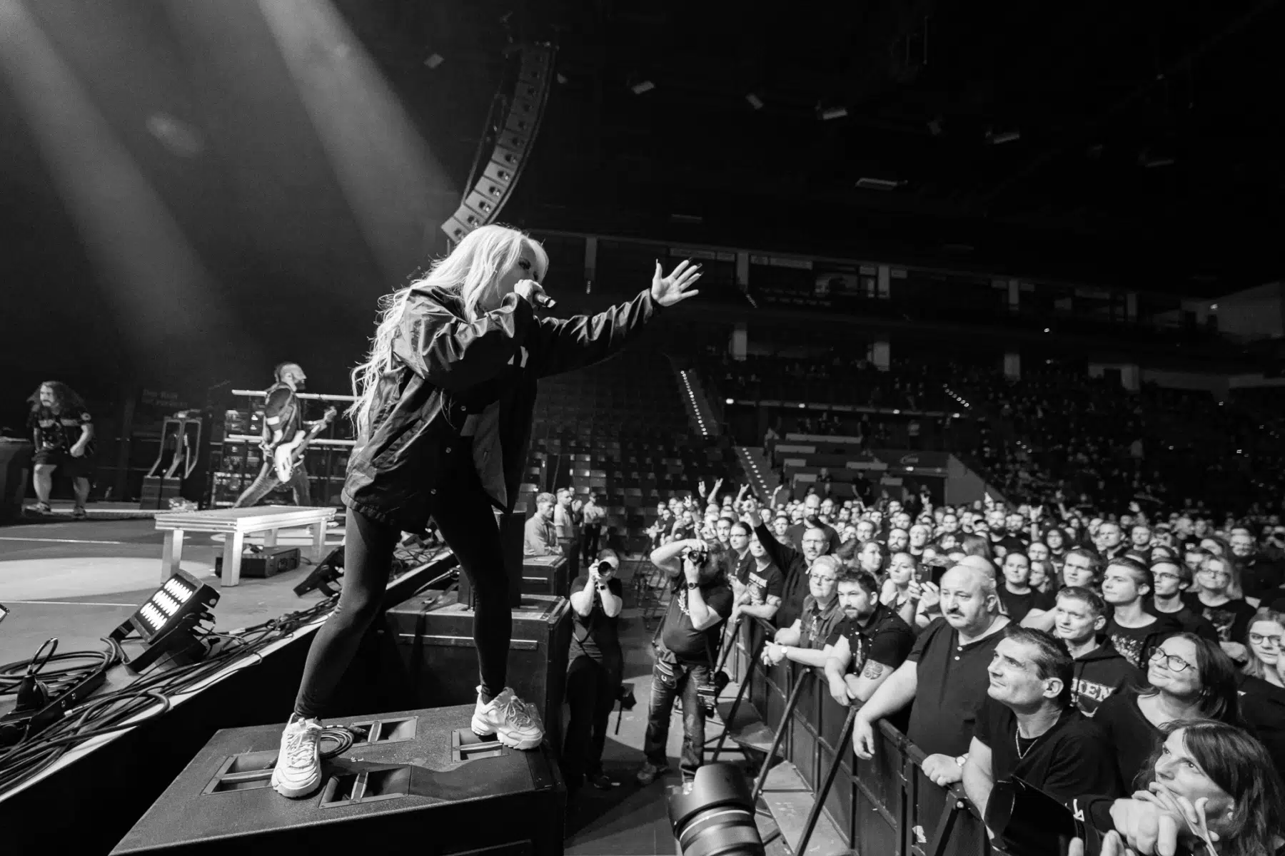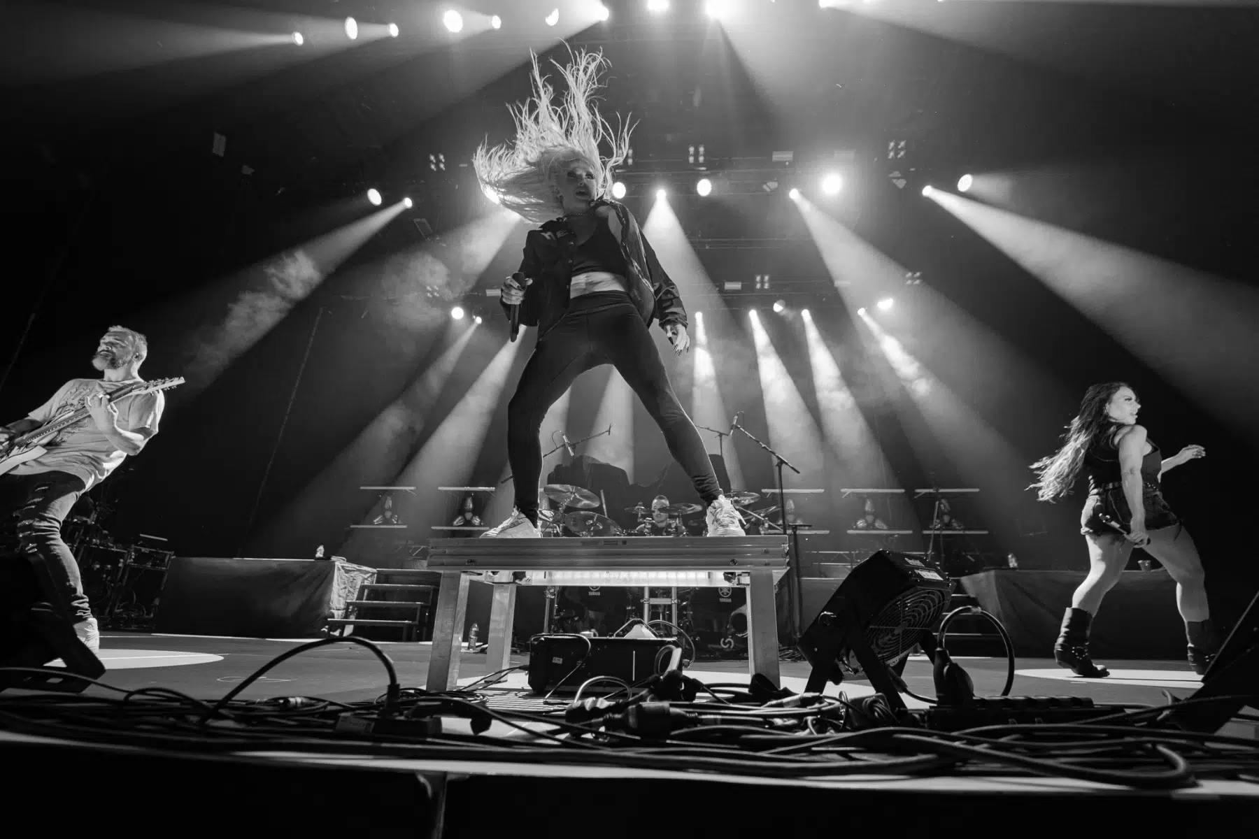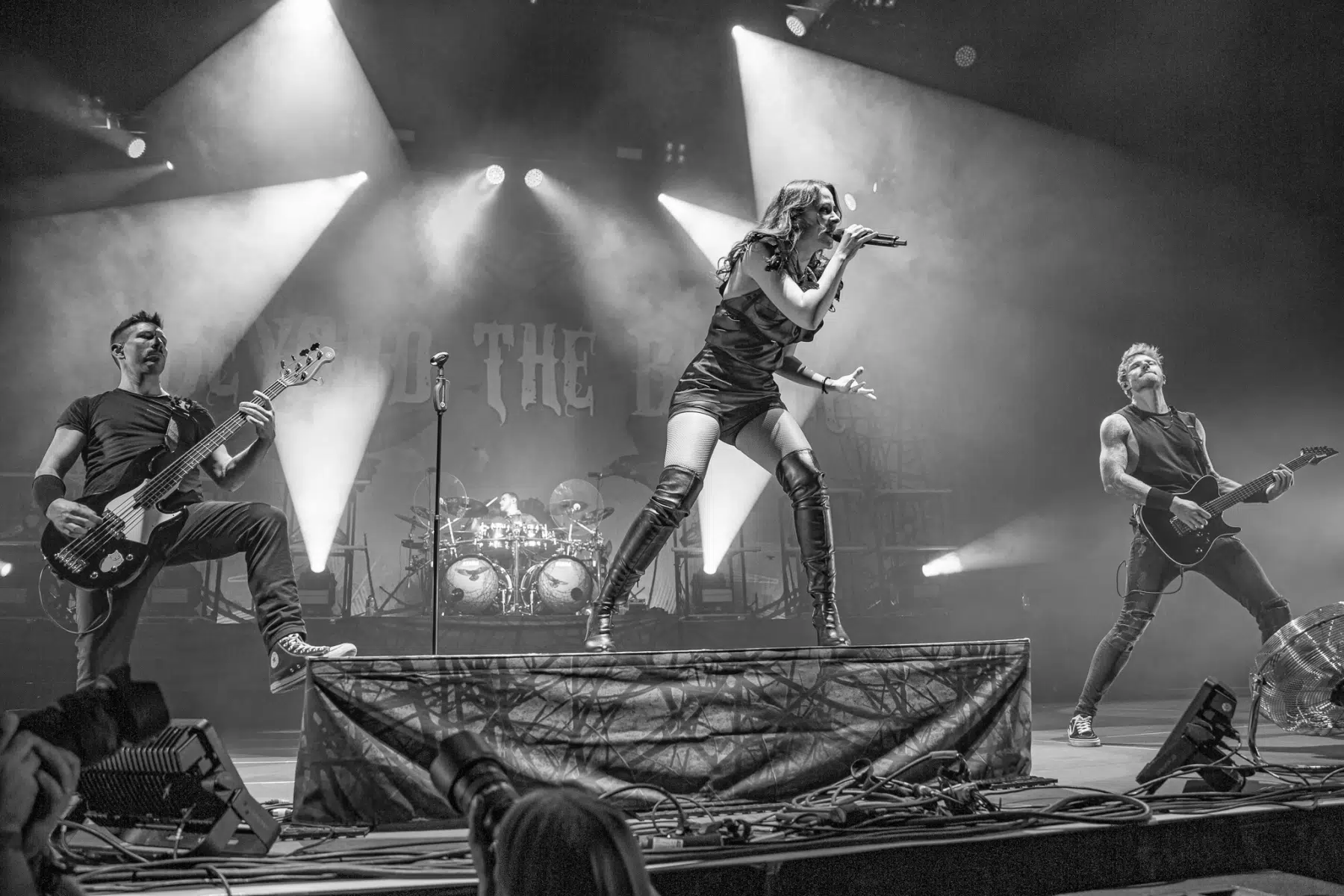 Pünktlich um 18 Uhr betraten die Jungs und Frontfrau Melissa Bonny die Bühne und präsentierten ihren ersten Song “Unstoppabe”. Dieser, sowie auch der nächste Song “Into the Night” befinden sich auf dem aktuellen Album “Chapter II – Legacy“. Da 30 Minuten Spielzeit nicht allzu lange sind, wurden auch u.a. einer der bekanntesten Songs “I Am The Storm” gespielt. Von Anfang an war in der gut gefüllten MHP-Arena Ludwigsburg ordentlich Stimmung.