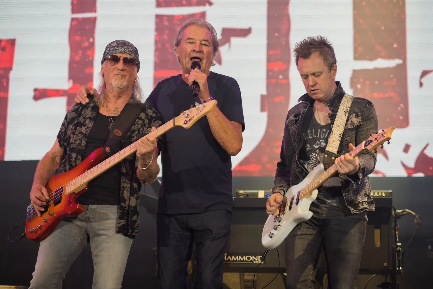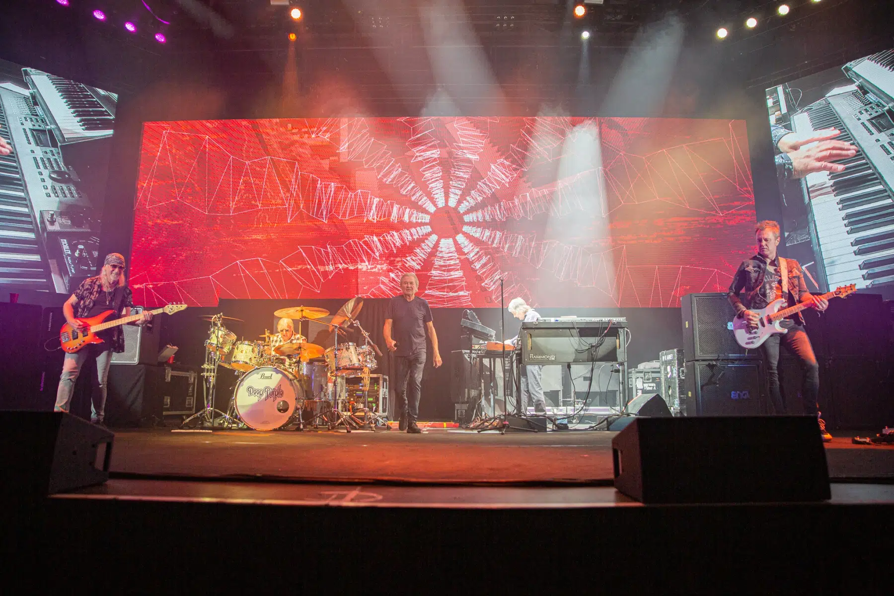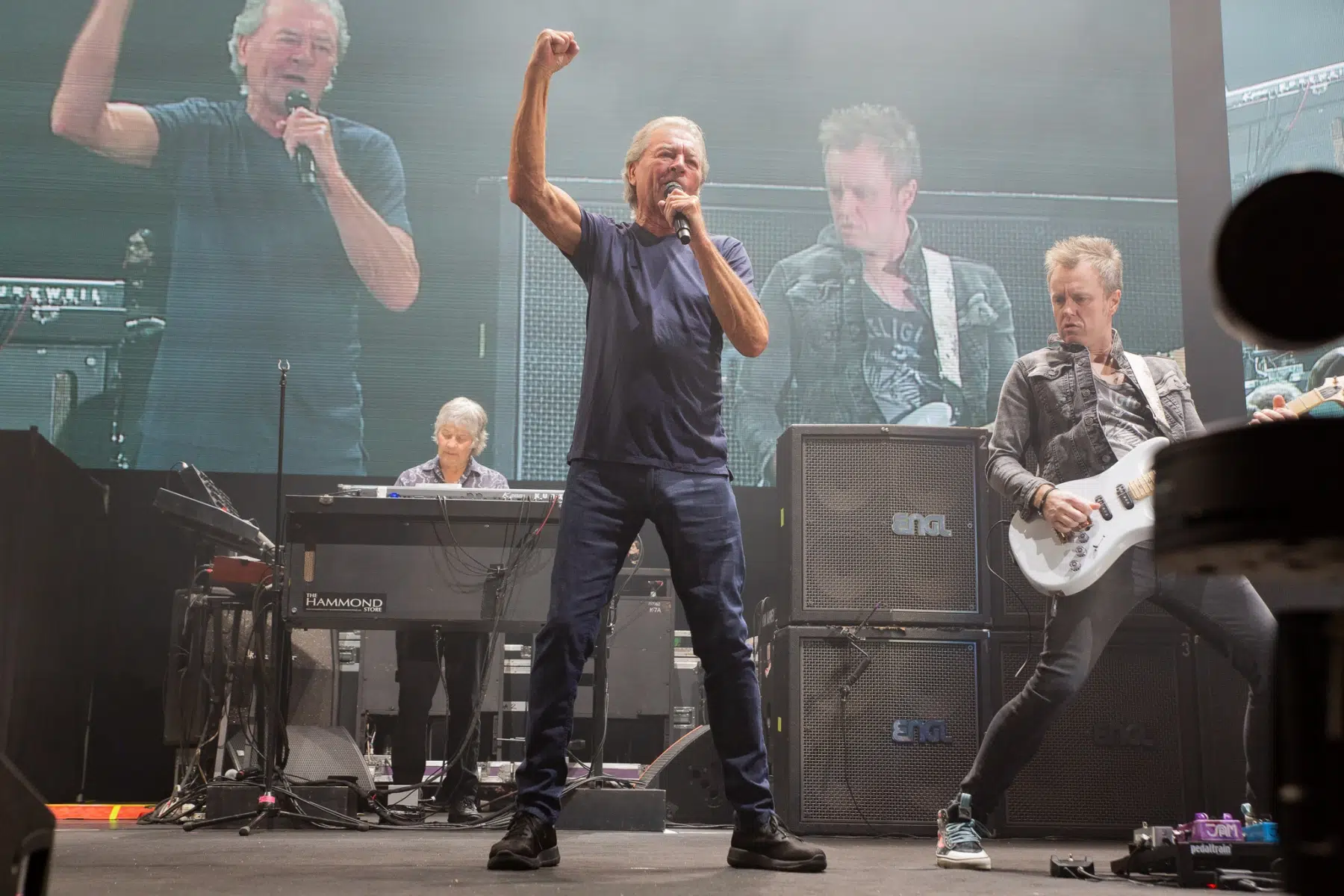 Ein episches Intro ertönte und kurz darauf erschienen Deep Purple auf der Bühne und präsentierten ihren ersten Song “Highway Star”. Mit coolen Animationseffekten auf der großen Leinwand hinter der Bühne; im Wechsel mit den Live Bildern der Kameras wurden die Fans beglückt. Wie auch schon die Vorband, waren die Musiker rund um Sänger Ian Gillan total happy und hatten voll Bock live zu spielen. So gab es Klassiker, wie “Lazy”, “When a blind man cries” und auch “Anya” zu hören.