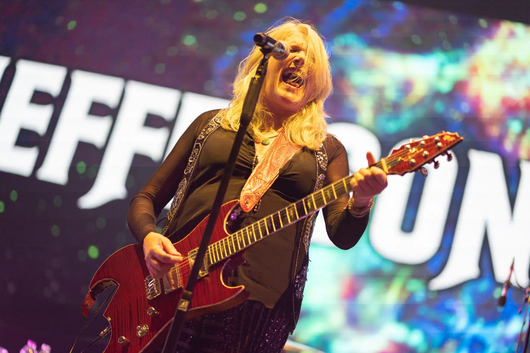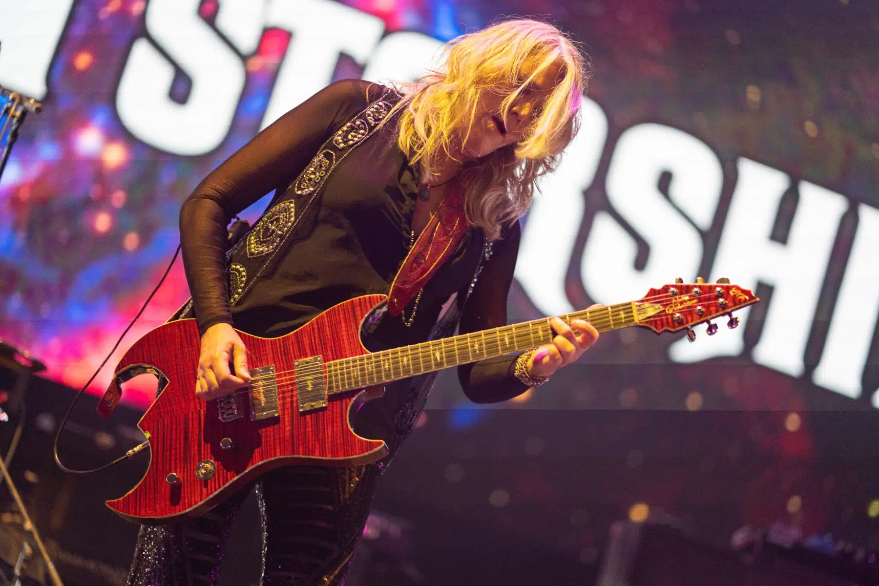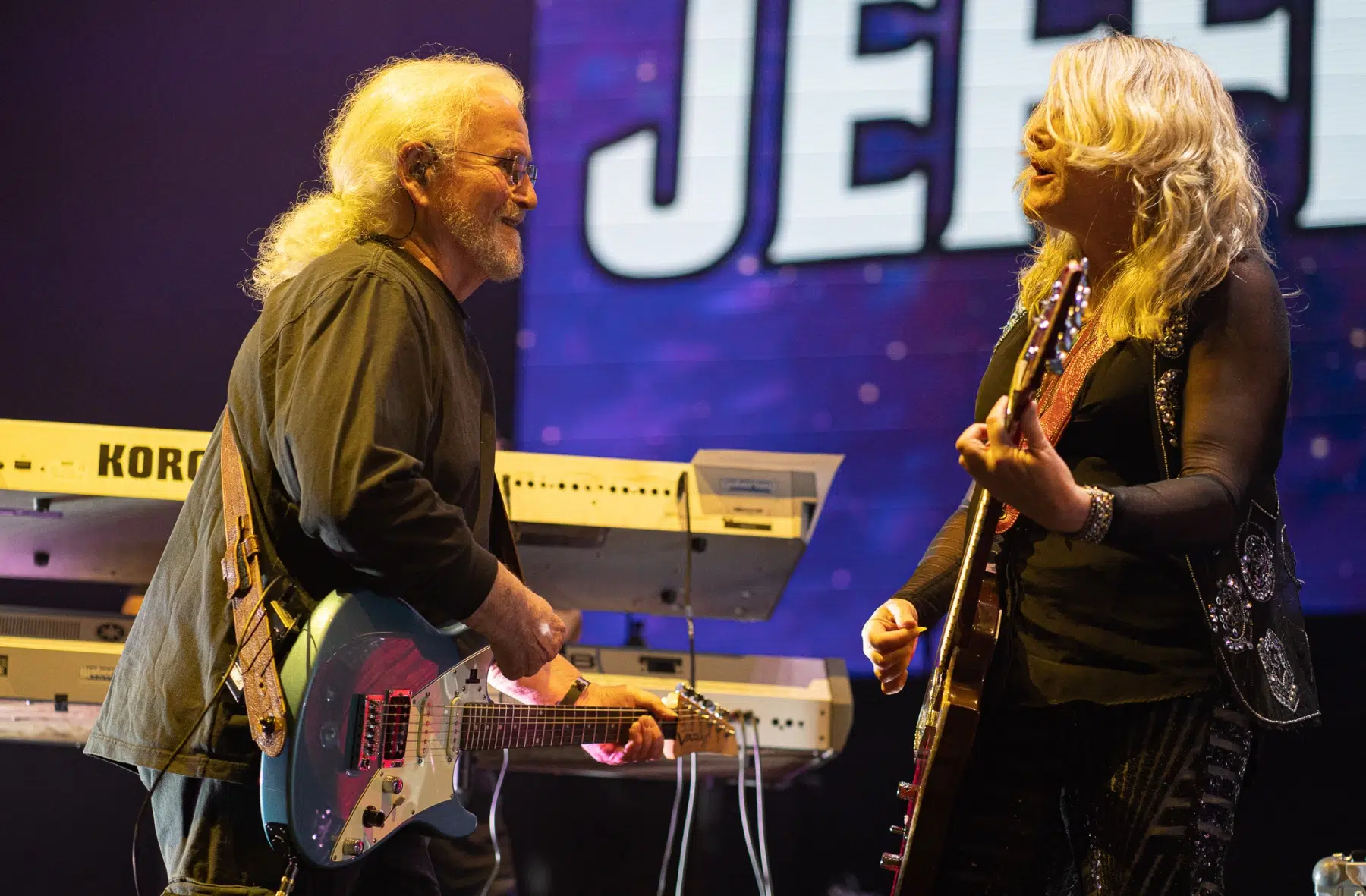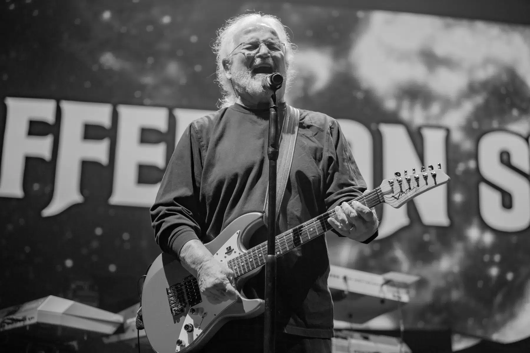 Am 14.10.2022 gaben sich Deep Purple die Ehre und besuchten die Stuttgarter Schleyerhalle. Tausende Fans hatten sich auf den Weg gemacht, um die 1968 gegründete Rock Band zu sehen. Dementsprechend voll war es schon zum Beginn der Support Gruppe Jefferson Starship. Die Band, früher auch bekannt als Starship, haben in ihrer Karriere doch so einige Hits produziert. Sänger und Gitarrist David Freiberg stand mit immerhin 84 Jahren noch freudestrahlend auf der Bühne und überließ am Anfang des Sets Sängerin und Gitarristin Cathy Richardson das Ruder. Alle Musiker waren von Anfang an super gut gelaunt und hielten auch für alle Fotografen ein Lächeln oder eine Grimasse parat. Allerdings dauerte es ein wenig, bis der Funke auf die Besucher übersprang – aber den Welthit “Built This City” kannte und konnte wirklich jeder mitsingen. Nach weiteren Klassikern verließ die Band die Bühne und machten Platz für den Headliner des Abends.