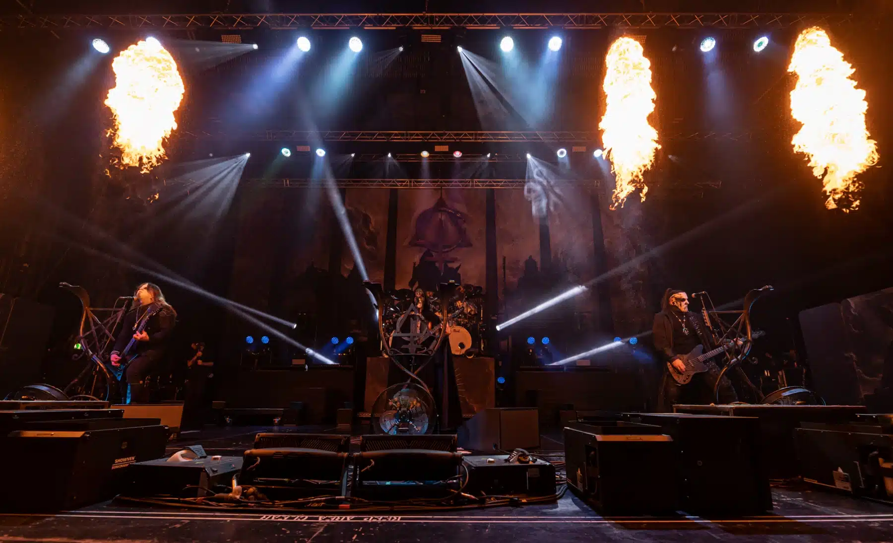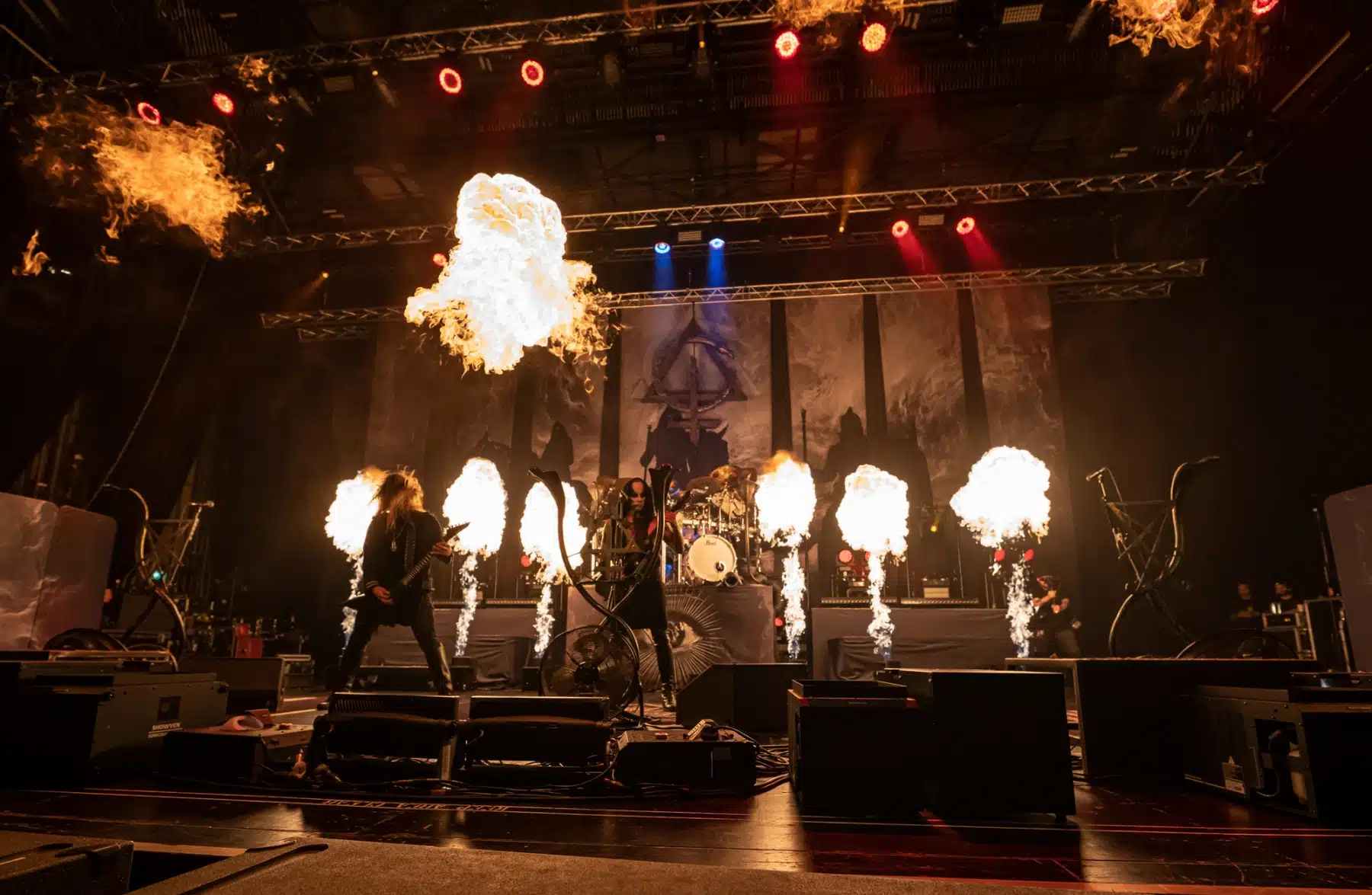 Eine der großen Touren diesen Herbst war die Coheadliner Tour von Behemoth und Arch Enemy. Düster und hart sollte es zugehen, beide Bands waren sehr glücklich endlich ihre schon mehrmals verschobene Tour endlich stattfinden zu lassen. Mit dabei waren Unto Others die den Part des Openers übernahmen und die Death Metal Urgesteine Carcass. Die Voraussetzungen für einen gelungenen Abend waren also gegeben. Etwas langsam begann dann die Show, Unto Others boten jedoch einen guten Einstieg in den Abend. Carcass gaben direkt 100 % , das Gaspedal wurde direkt durchgetreten. Klassischer Death Metal der alten Schule schallte aus den Boxen, ab jetzt gab es nur noch eine Richtung – Immer geradeaus nach Vorne. Nach einer kurzen Umbaupause betraten Behemoth die Bühne. Erst hinter einem Vorhang versteckt auf welchem ein Intro per Video gezeigt wurde legten sie direkt los als der Vorhang endlich fiel. Untermalt durch zahlreiche Pyroeffekte wurde es eine düstere und atmosphärische Show, Feuer war ein prägendes Element während ihres Auftrittes. Öfters wechselte Sänger Nergal das Bühnenoutfit um immer passend zur Stimmung des Songs gekleidet zu sein. Als nach einer letzten Umbaupause schließlich Arch Enemy die Bühne betraten und Sängerin Alizza das Publikum fragte ob es bereit für sie war ging die Party los, bekannte Hymnen schallten aus den Boxen. Arch Enemy sind immer ein Garant für guten melodischen Death Metal. Es ist doch immer wieder faszinierend welche Töne aus dieser Frontfrau kommen. Man fragt sich doch immer wieder woher sie dieses Volumen nimmt. Spätestens beim zweiten Song „War Eternal“ gab die Band alles, die Bühne stand förmlich in Flammen. Und sie konnten tatsächlich durchgehend dieses hohe Niveau halten.