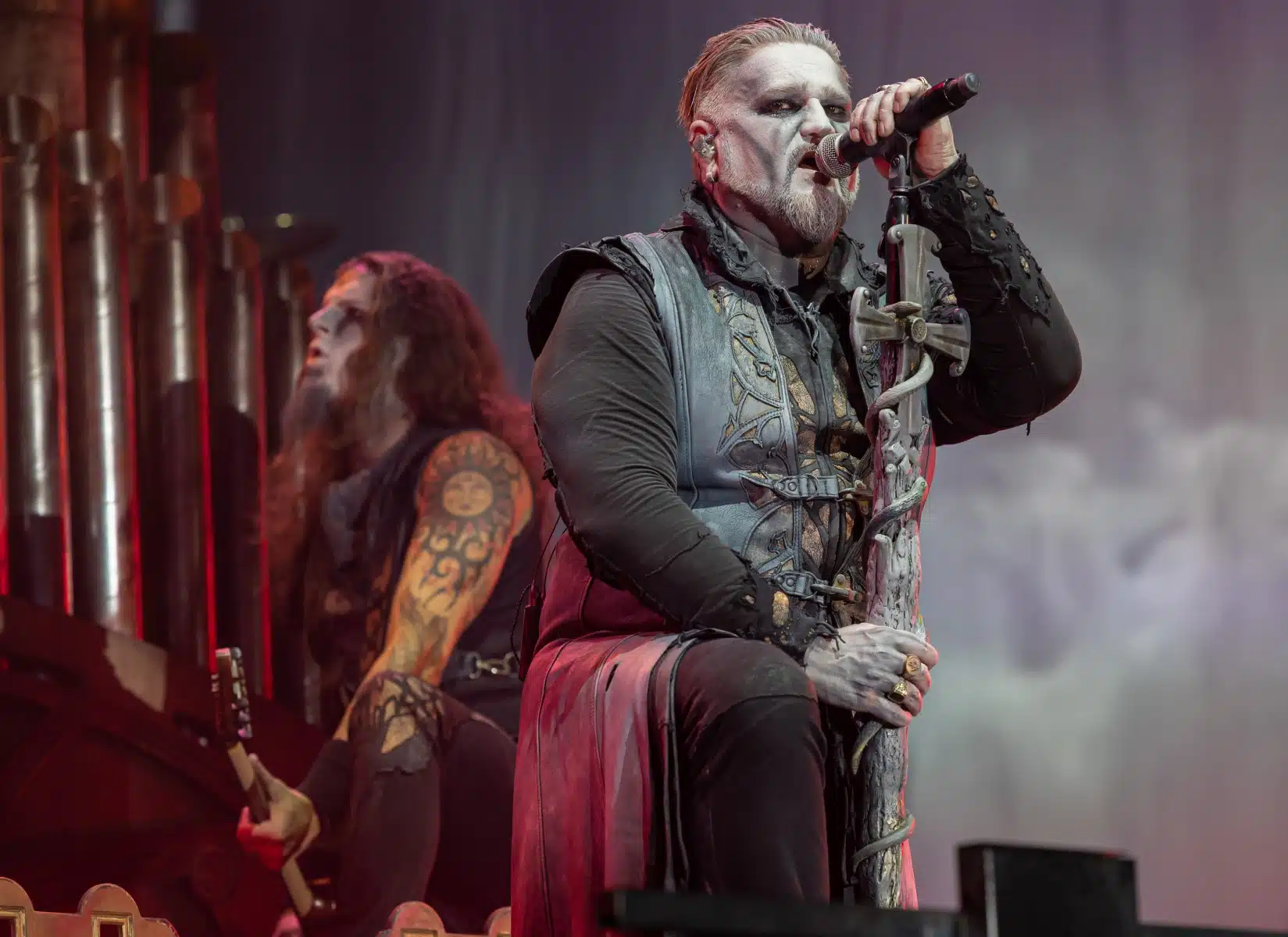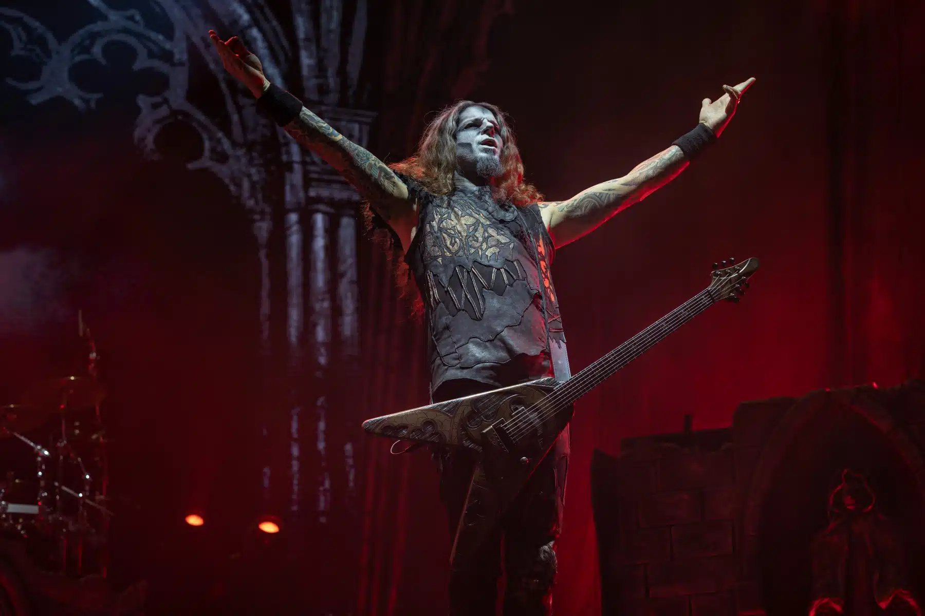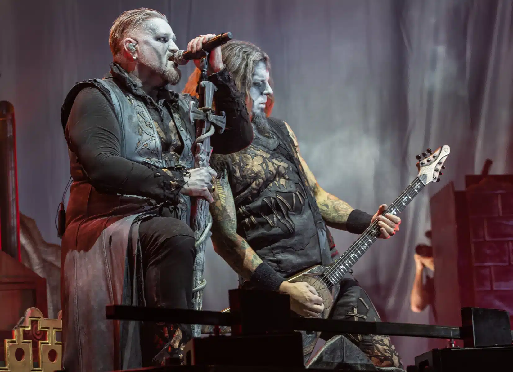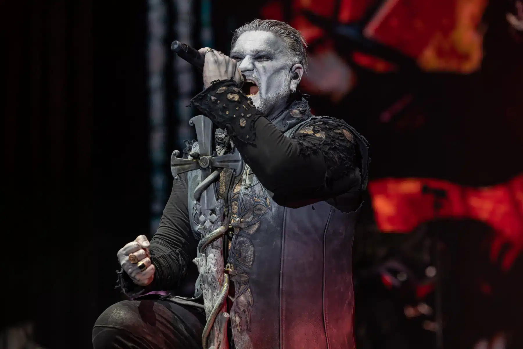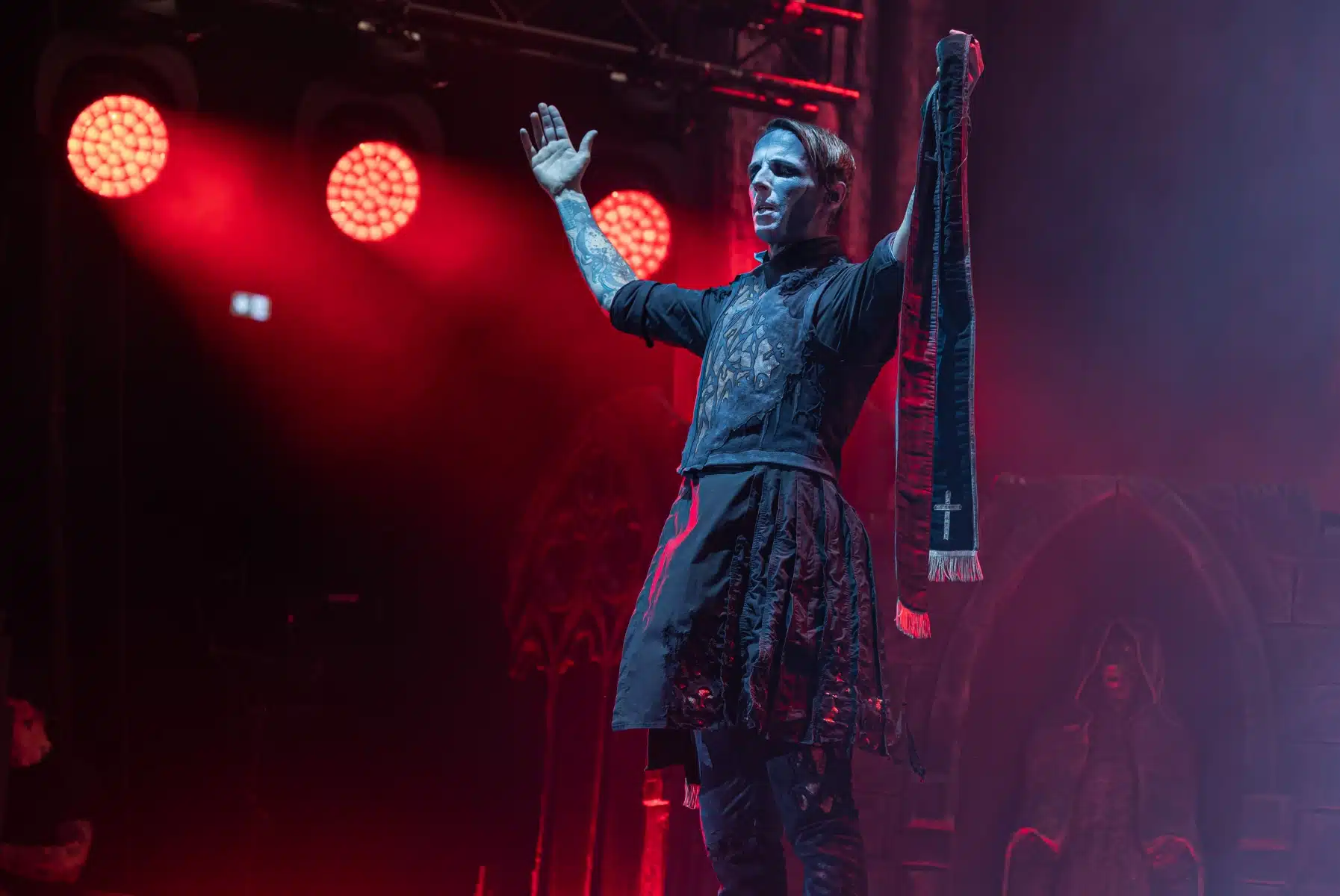 Nach einer letzten Umbaupause war es dann soweit, die Heilige Metal Messe, so bezeichnen Powerwolf ihre Konzerte, wurde gebührend eröffnet. Bereits beim ersten Song ging es heiß her, „Faster than a flame“ war hier kein einfach hin gesungener Text ohne Bedeutung. Feuer ist ein wichtiger Bestandteil der Show, man kann sich kaum noch vorstellen ein Konzert der Band ohne Pyrotechnik erleben zu können. Ihre Setlist beinhaltete Titel aus allen Epochen der Bandkarriere, Frontmann Attila Dorn erzählte immer wieder Geschichten zu den Songs, passend im transsylvanischen Dialekt.