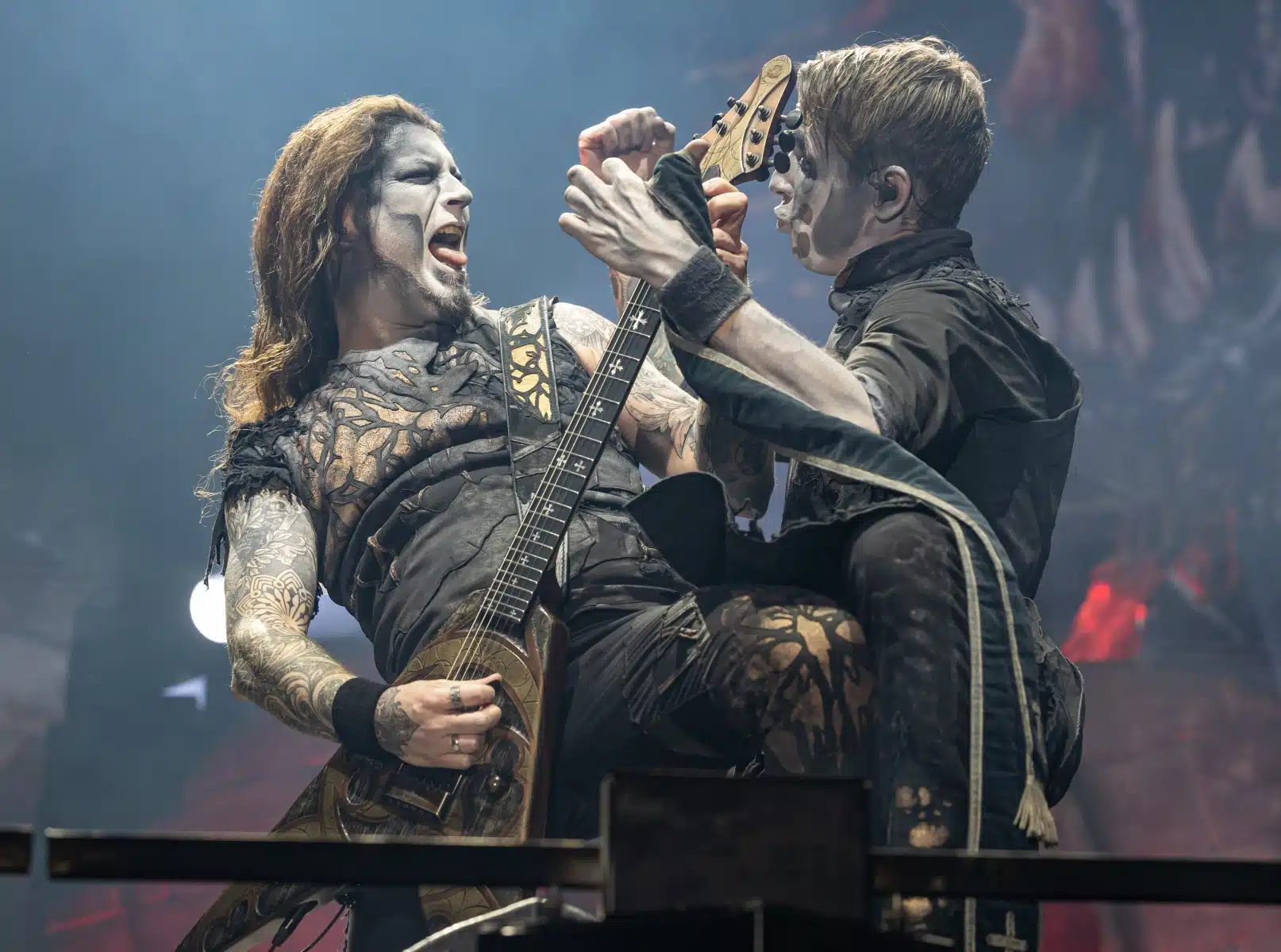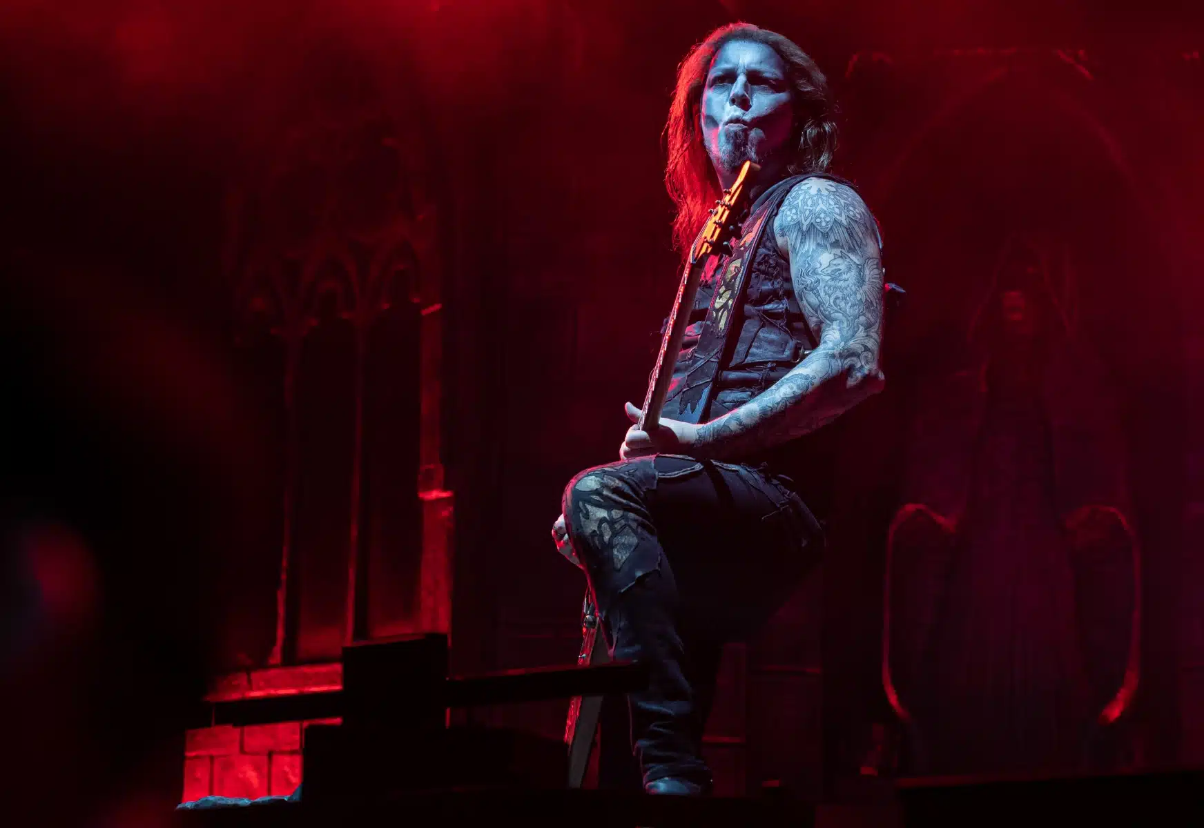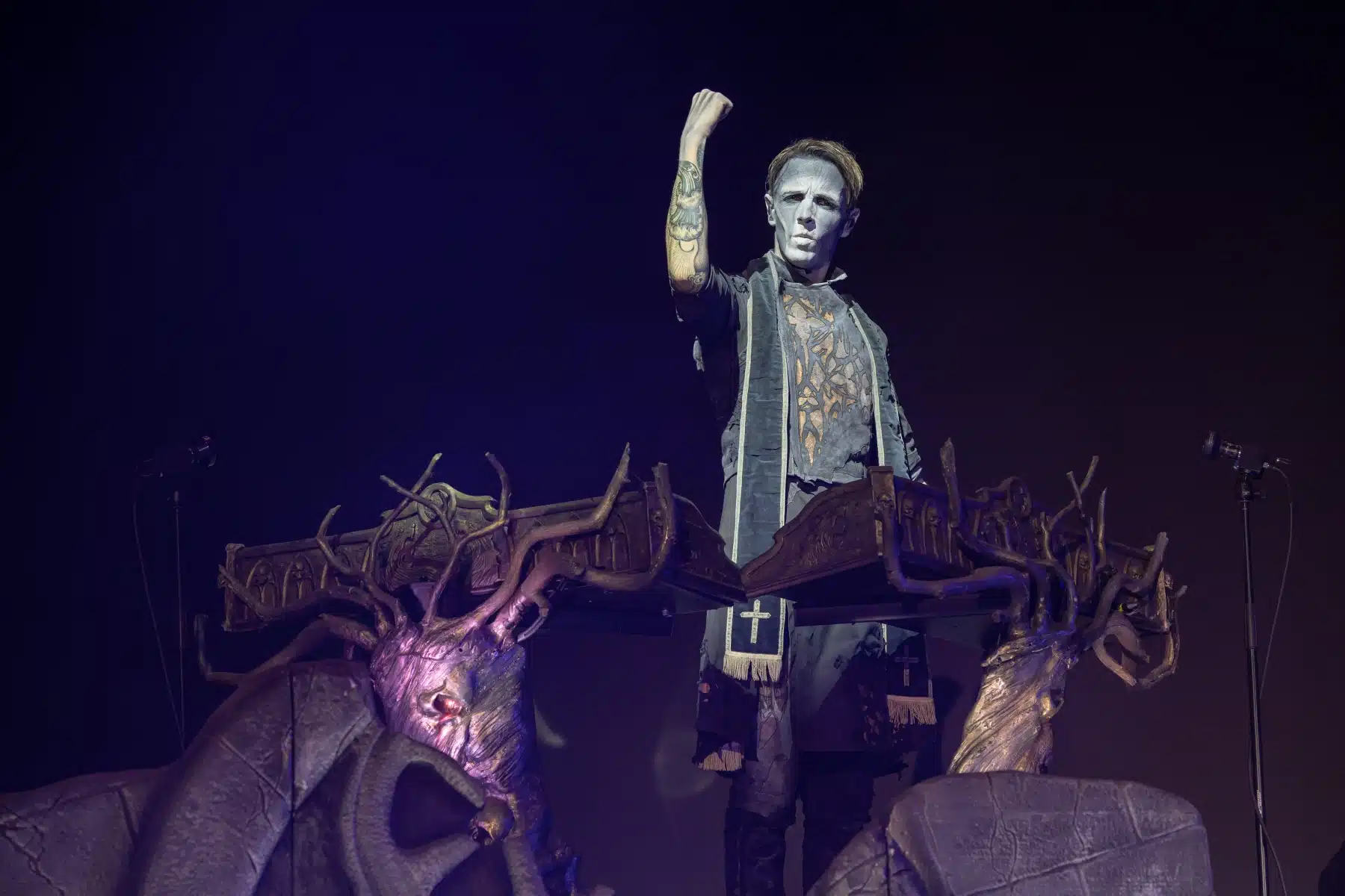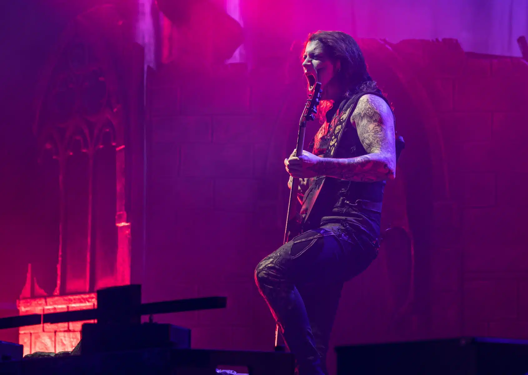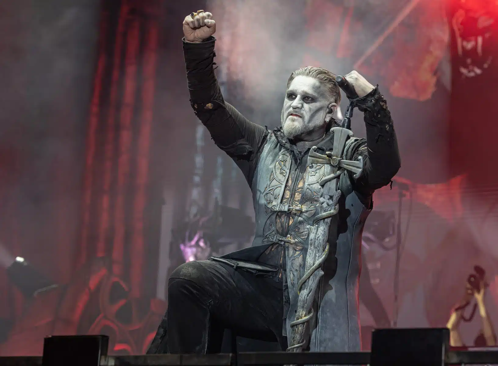 Nach einer letzten Umbaupause war es dann soweit, die Heilige Metal Messe, so bezeichnen Powerwolf ihre Konzerte, wurde gebührend eröffnet. Bereits beim ersten Song ging es heiß her, „Faster than a flame“ war hier kein einfach hin gesungener Text ohne Bedeutung. Feuer ist ein wichtiger Bestandteil der Show, man kann sich kaum noch vorstellen ein Konzert der Band ohne Pyrotechnik erleben zu können. Ihre Setlist beinhaltete Titel aus allen Epochen der Bandkarriere, Frontmann Attila Dorn erzählte immer wieder Geschichten zu den Songs, passend im transsylvanischen Dialekt.