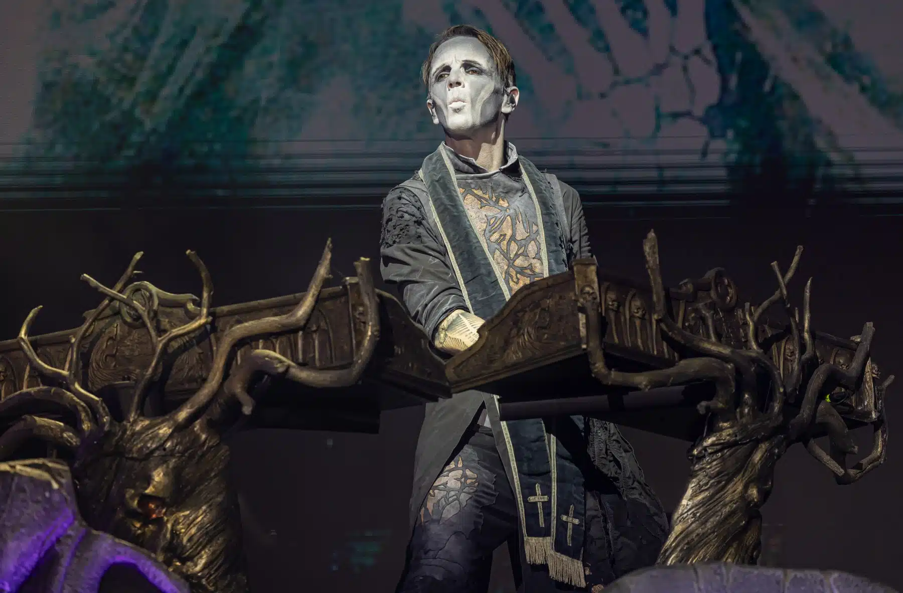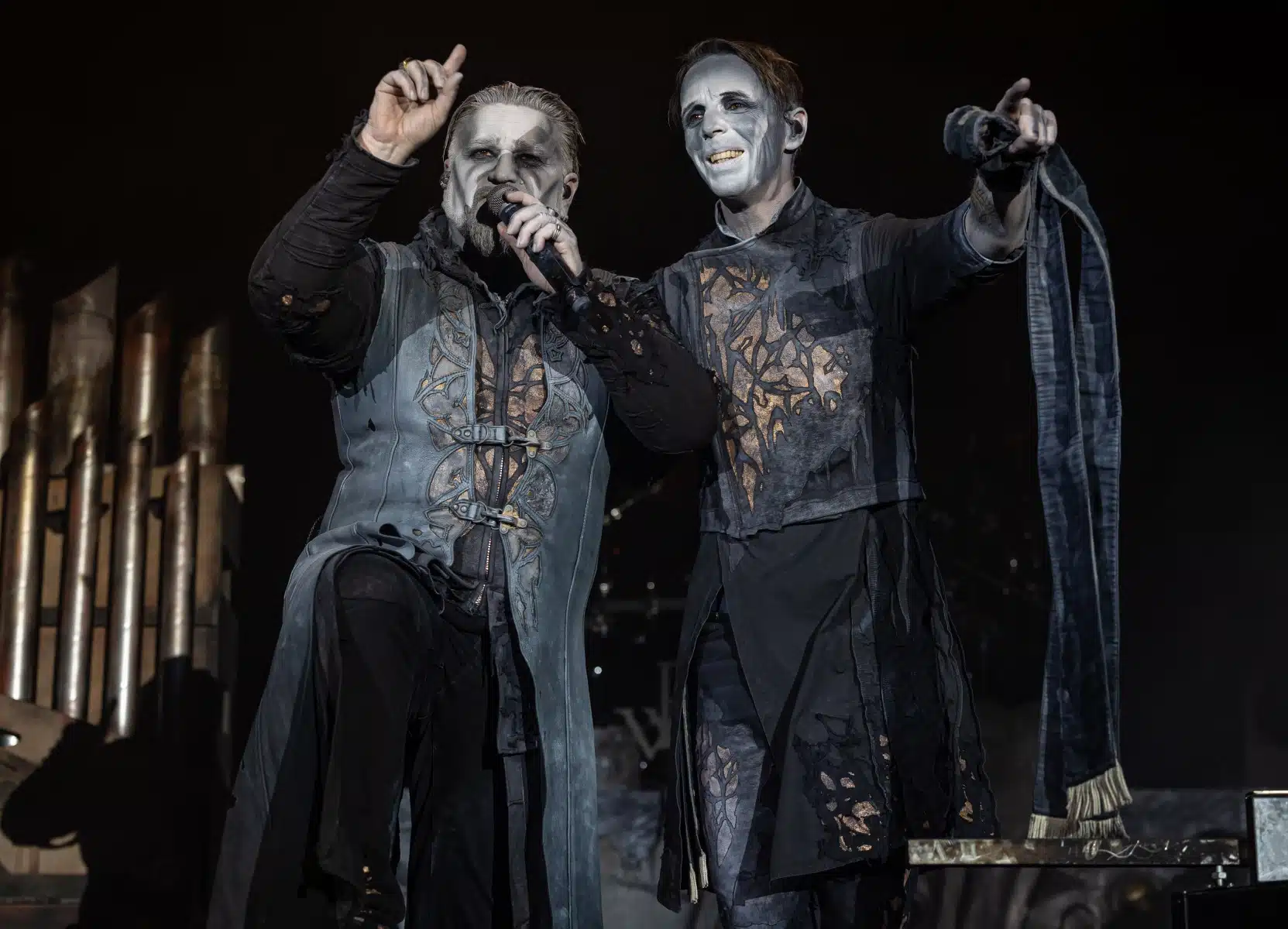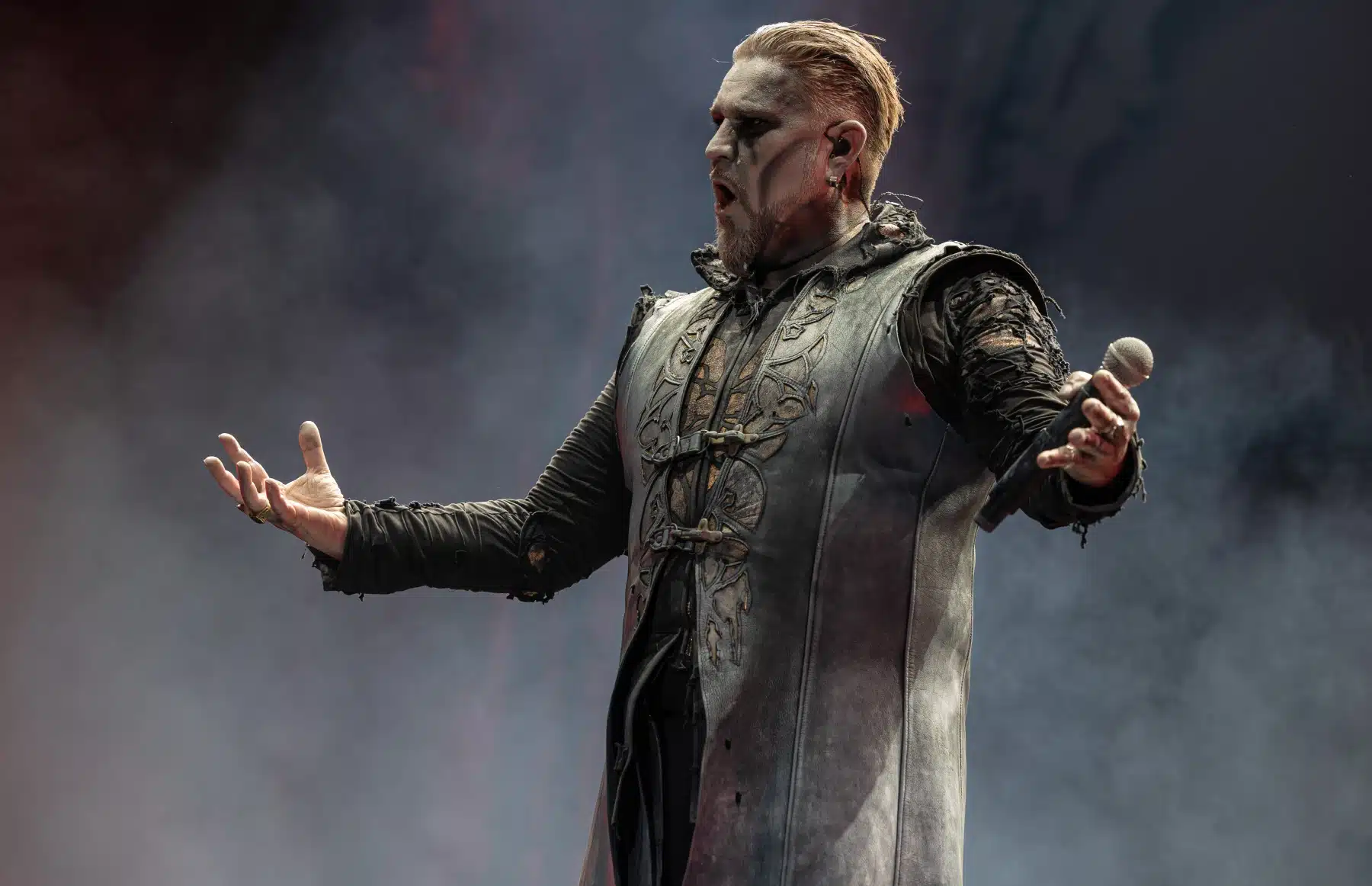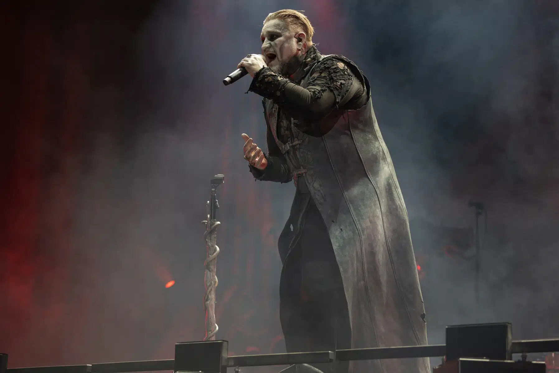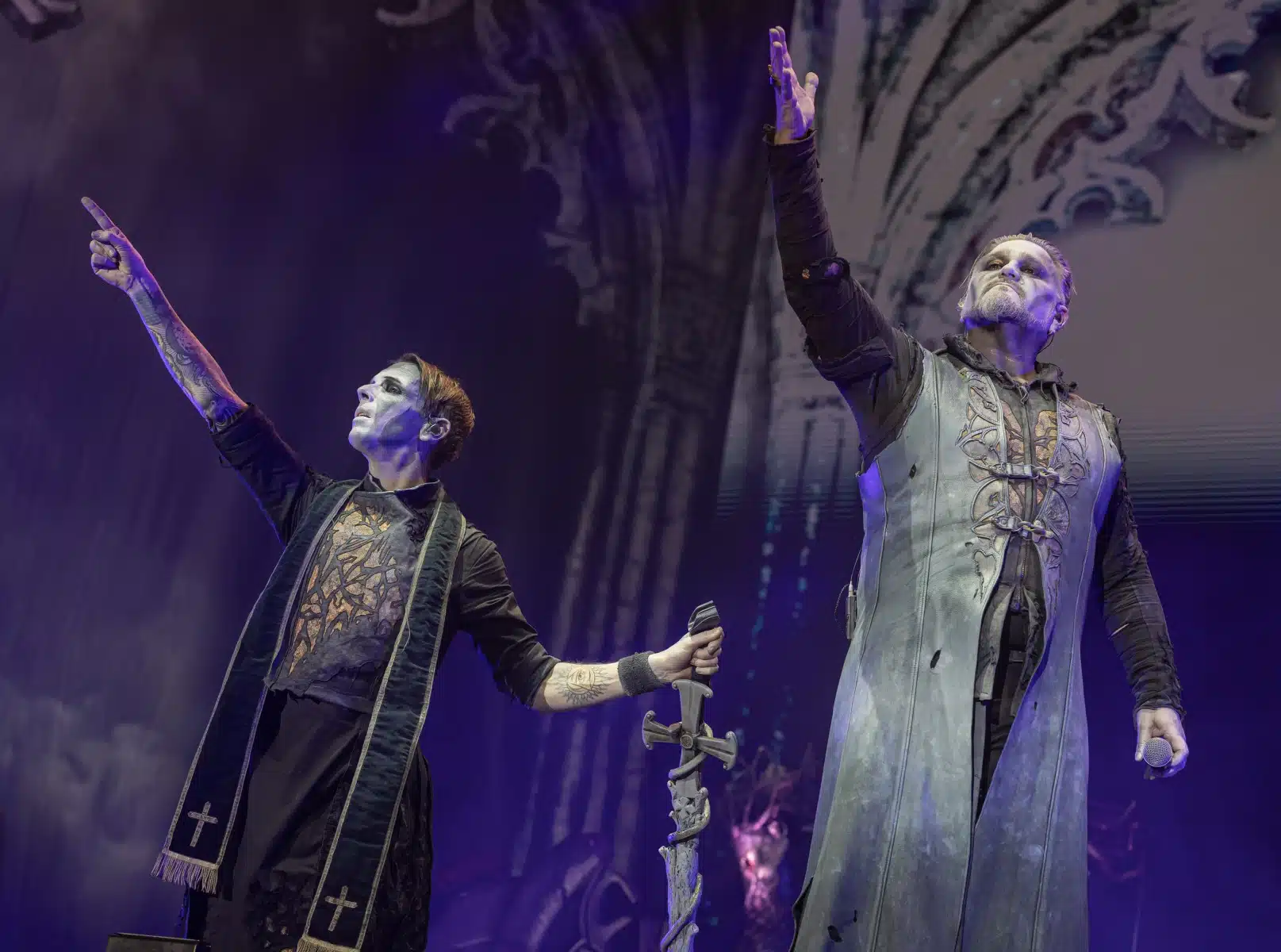 Nach einer letzten Umbaupause war es dann soweit, die Heilige Metal Messe, so bezeichnen Powerwolf ihre Konzerte, wurde gebührend eröffnet. Bereits beim ersten Song ging es heiß her, „Faster than a flame“ war hier kein einfach hin gesungener Text ohne Bedeutung. Feuer ist ein wichtiger Bestandteil der Show, man kann sich kaum noch vorstellen ein Konzert der Band ohne Pyrotechnik erleben zu können. Ihre Setlist beinhaltete Titel aus allen Epochen der Bandkarriere, Frontmann Attila Dorn erzählte immer wieder Geschichten zu den Songs, passend im transsylvanischen Dialekt.