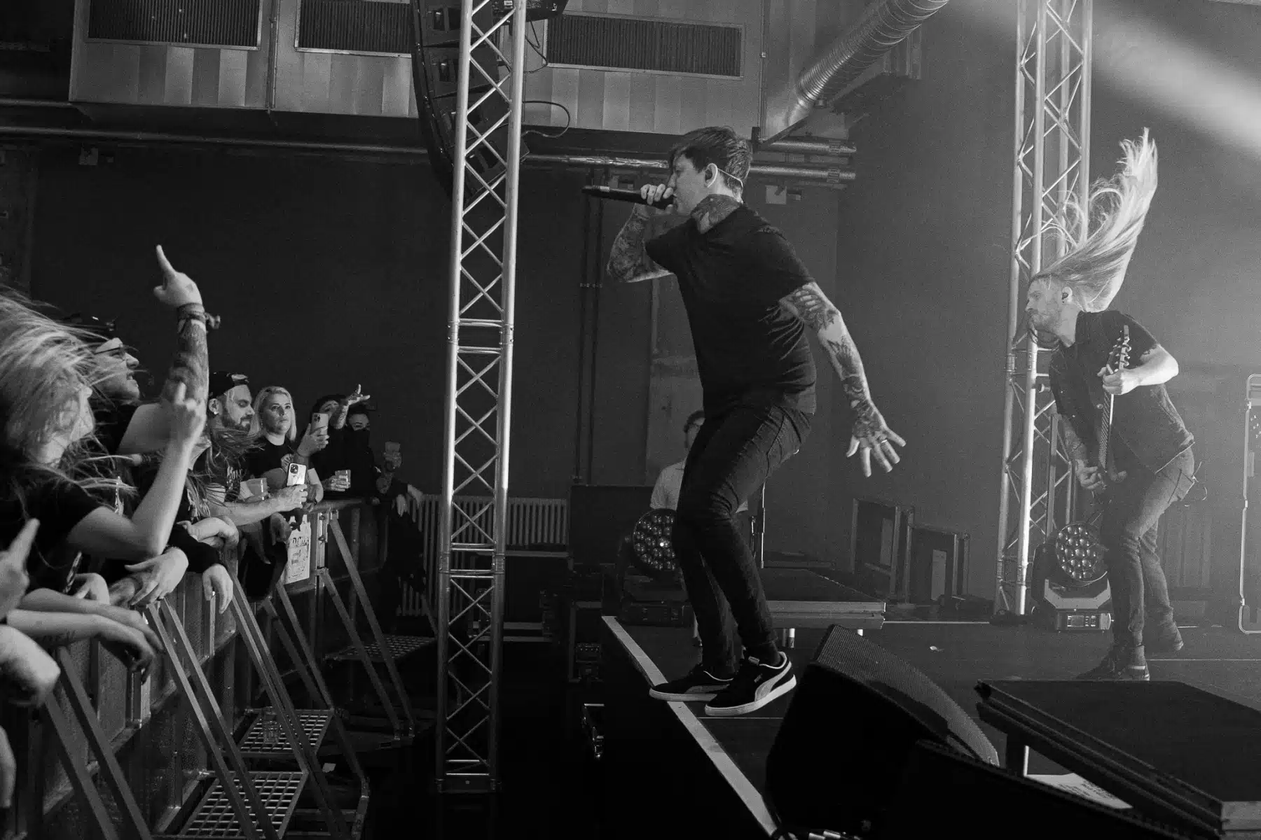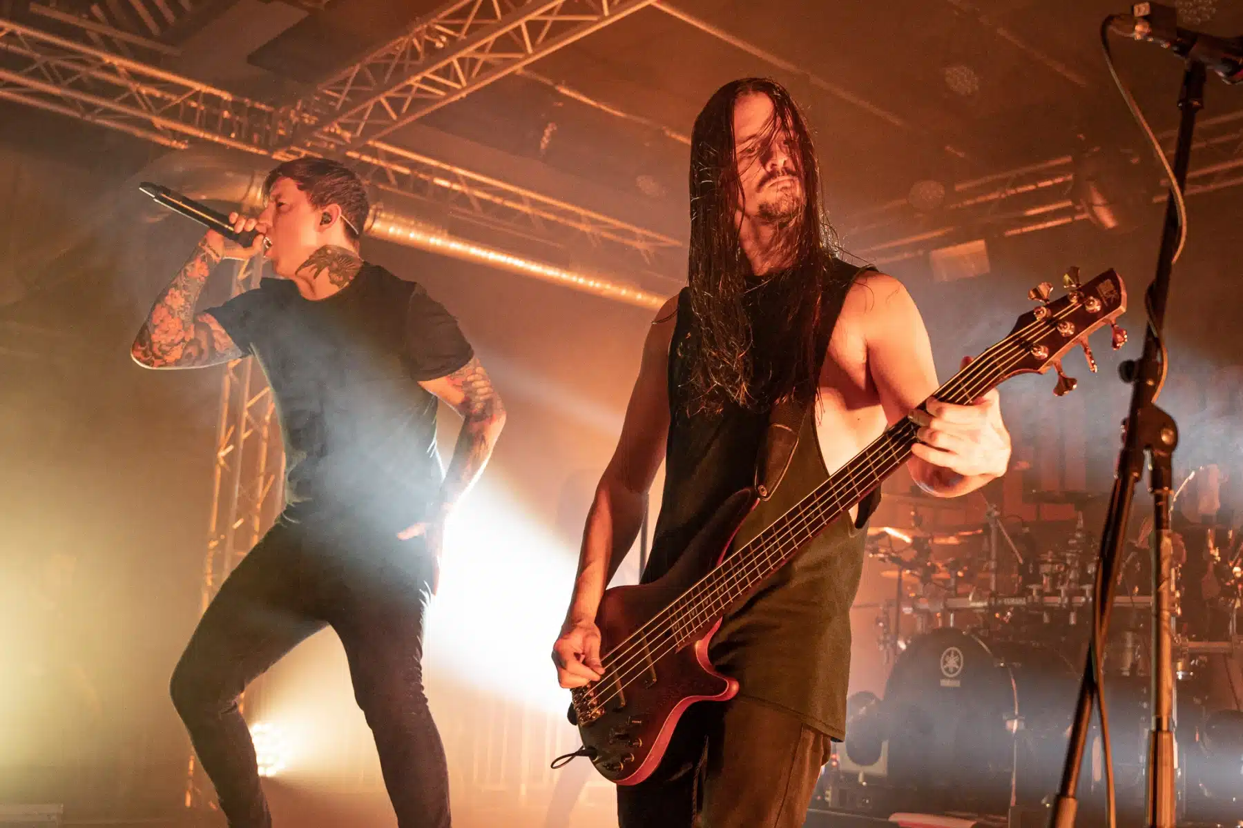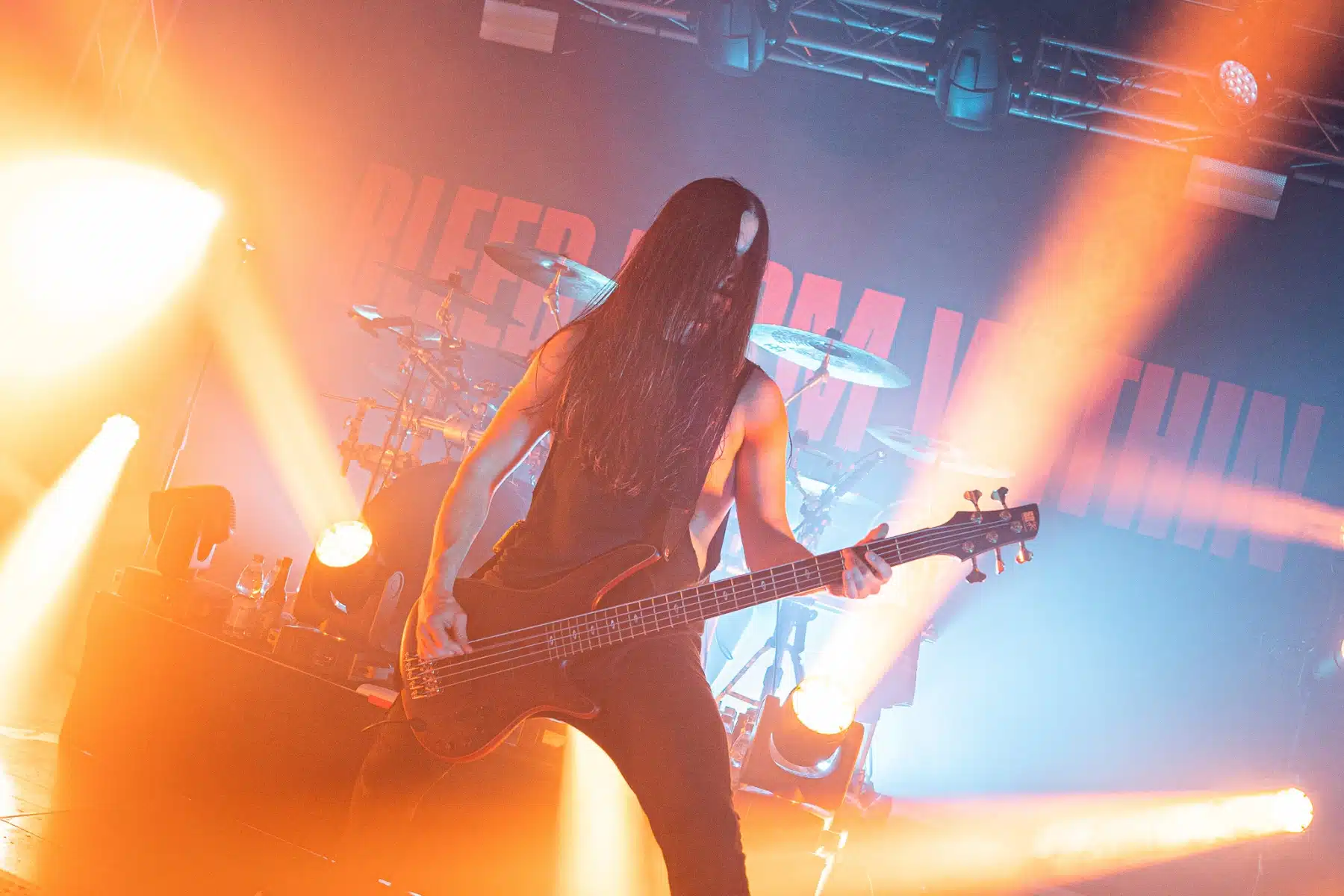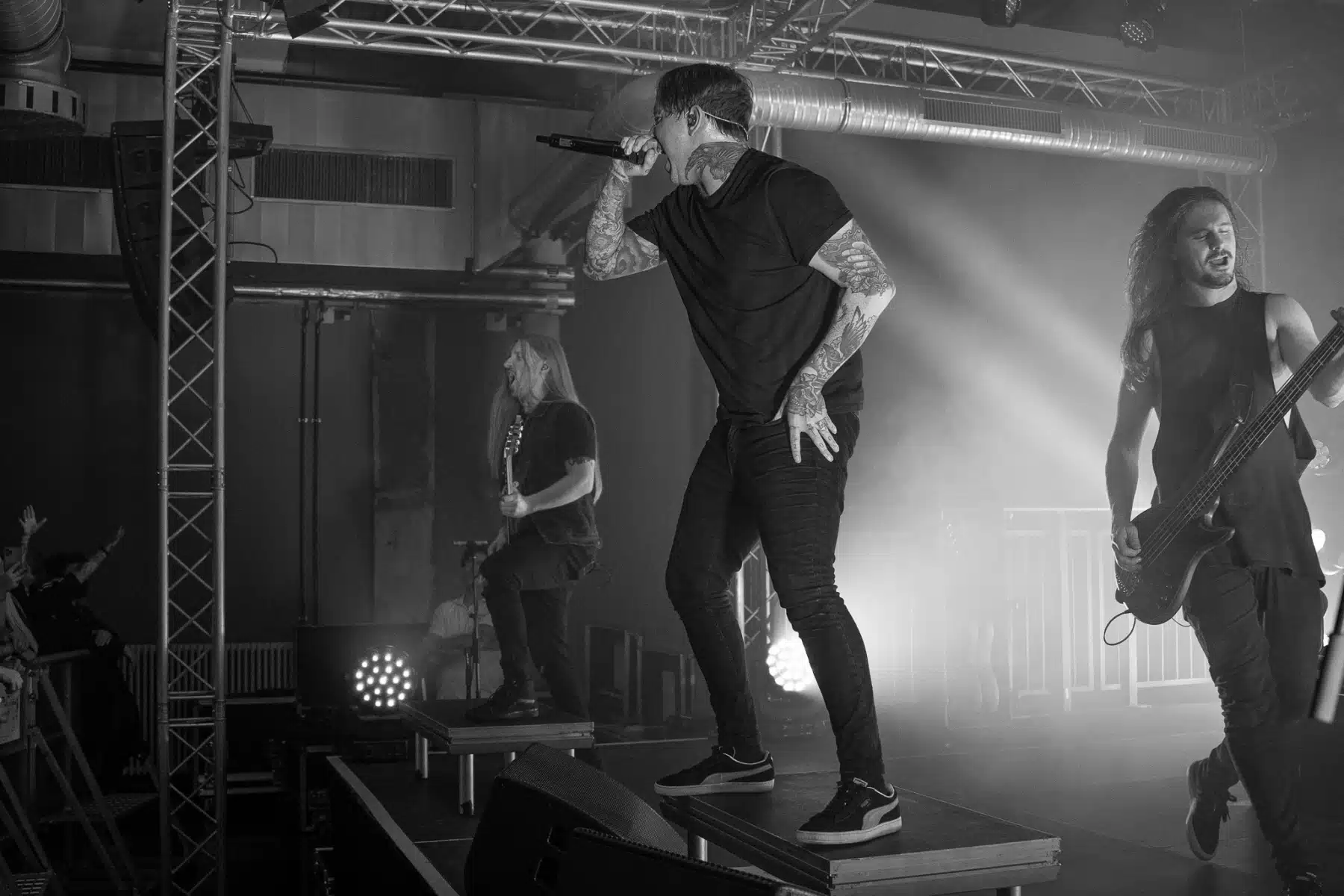 Natürlich für keine anderen als die Jungs aus Glasgow – Bleed From Within. Die Band durfte dieses Jahr auf vielen großen Festivals spielen, u.a. auch auf dem Knotfest in Oberhausen. Gerade mit dem neusten Album Shrine hat die Band einen Meilenstein erreicht und viel Aufmerksamkeit bekommen. Pünktlich um 21:30 Uhr hauten die Briten den Fans ihren Opener „I Am Damnation“ um die Ohren und sofort war ordentlich Stimmung im Wizemann Club. Sänger Scott Kennedy mit etwas angeschlagener Stimme heizte die Fans direkt an mitzusingen. Dies klappte auch direkt und beim zweiten Song „Sovereign“ bildete sich der erste Moshpit. Das war der Band aber nicht genug – sie forderte auch noch eine Wall Of Death, Circle Pits und Pogos. Im Grunde genommen stand das ganze Konzert über keiner der Besucher still. Die Tour stand ganz im Zeichen der neusten Platte, also gab es auch viele Songs davon zu hören, u.a. „Flesh and Stone“ und „Paradise“. Mit „Afterlife“ gab es einen etwas älteren Song zu hören, allerdings gab es kein Material von den ersten Alben. Die Chemie zwischen Band und Fans passte an dem Abend einfach wunderbar; es war sozusagen ein gegenseitiges „Geschenke geben“. Leider hat auch so ein schöner Abend einmal ein Ende, also gab es zum Schluss den Song „The End Of All We Know“ und da wurden nochmal die letzten Kraftreserven der Fans gefordert, um lauthals mitzusingen.