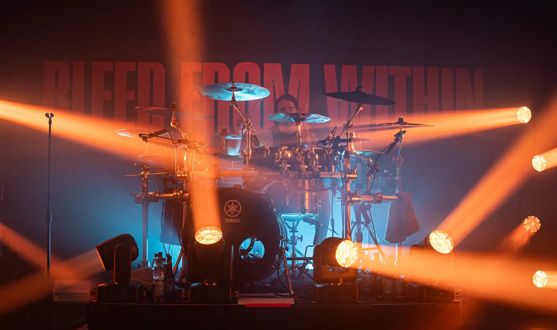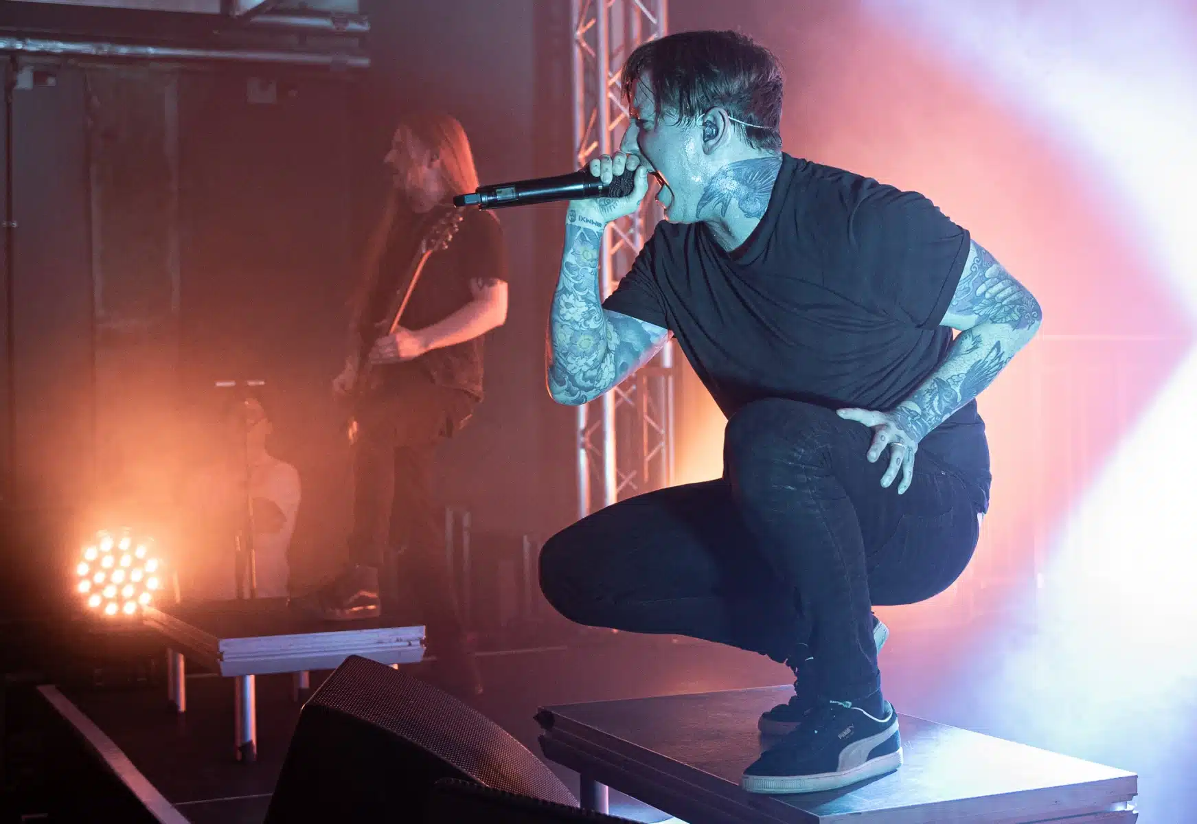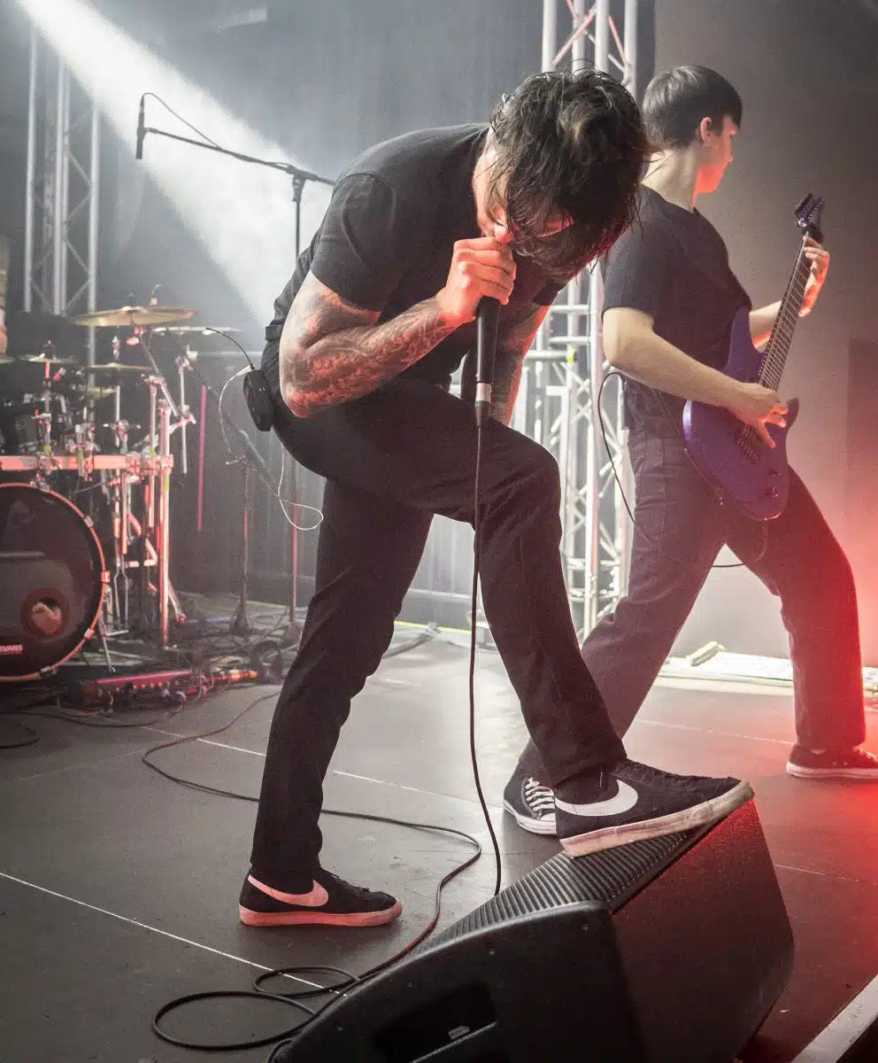 Natürlich für keine anderen als die Jungs aus Glasgow – Bleed From Within. Die Band durfte dieses Jahr auf vielen großen Festivals spielen, u.a. auch auf dem Knotfest in Oberhausen. Gerade mit dem neusten Album Shrine hat die Band einen Meilenstein erreicht und viel Aufmerksamkeit bekommen. Pünktlich um 21:30 Uhr hauten die Briten den Fans ihren Opener „I Am Damnation“ um die Ohren und sofort war ordentlich Stimmung im Wizemann Club. Sänger Scott Kennedy mit etwas angeschlagener Stimme heizte die Fans direkt an mitzusingen. Dies klappte auch direkt und beim zweiten Song „Sovereign“ bildete sich der erste Moshpit. Das war der Band aber nicht genug – sie forderte auch noch eine Wall Of Death, Circle Pits und Pogos. Im Grunde genommen stand das ganze Konzert über keiner der Besucher still. Die Tour stand ganz im Zeichen der neusten Platte, also gab es auch viele Songs davon zu hören, u.a. „Flesh and Stone“ und „Paradise“. Mit „Afterlife“ gab es einen etwas älteren Song zu hören, allerdings gab es kein Material von den ersten Alben. Die Chemie zwischen Band und Fans passte an dem Abend einfach wunderbar; es war sozusagen ein gegenseitiges „Geschenke geben“. Leider hat auch so ein schöner Abend einmal ein Ende, also gab es zum Schluss den Song „The End Of All We Know“ und da wurden nochmal die letzten Kraftreserven der Fans gefordert, um lauthals mitzusingen.