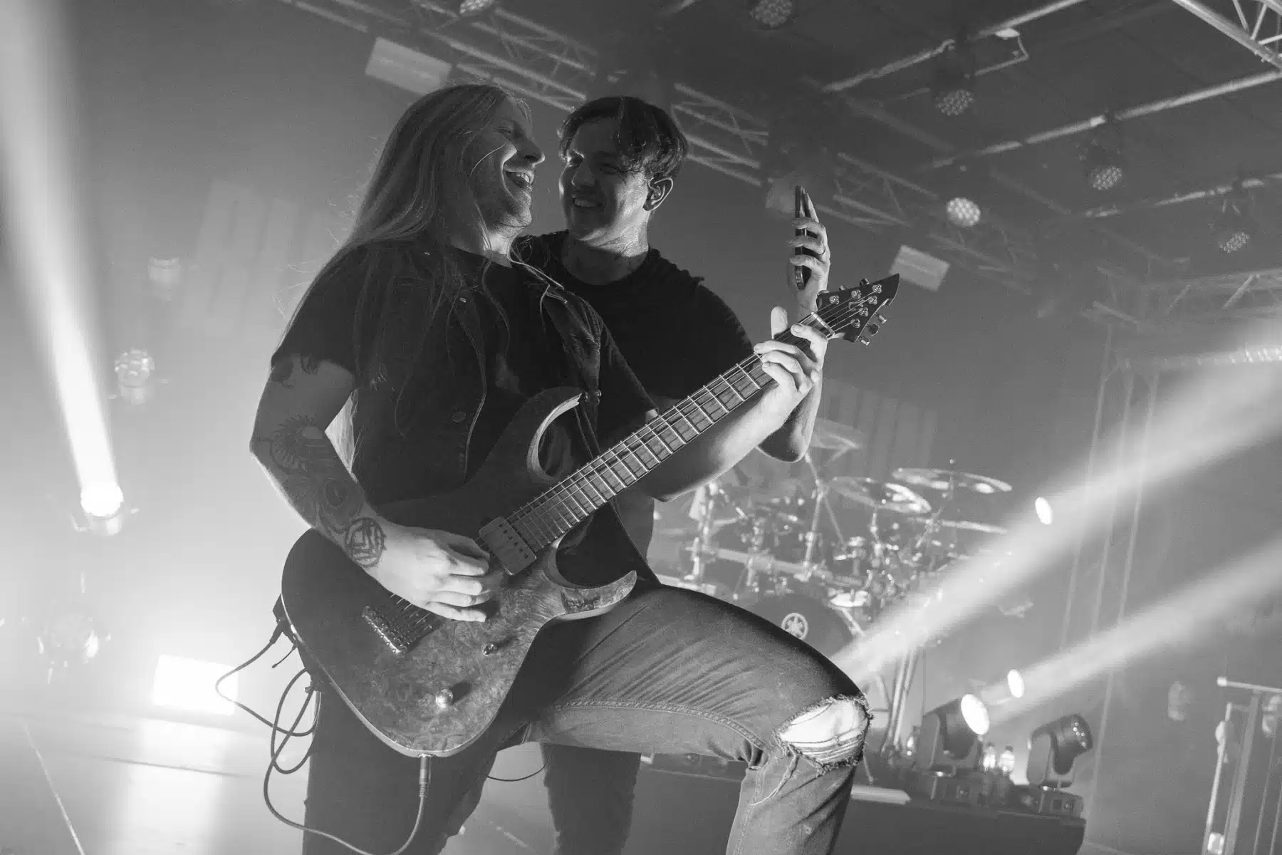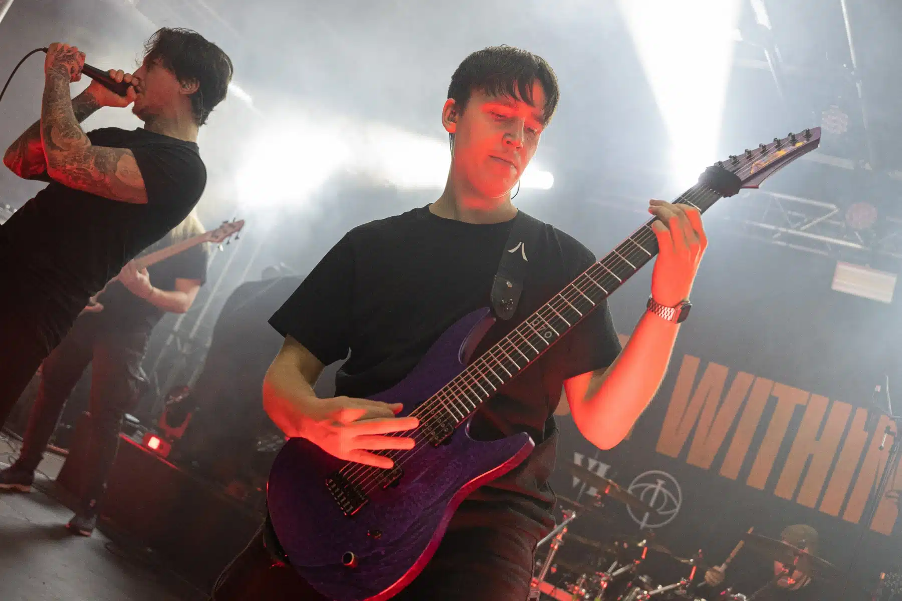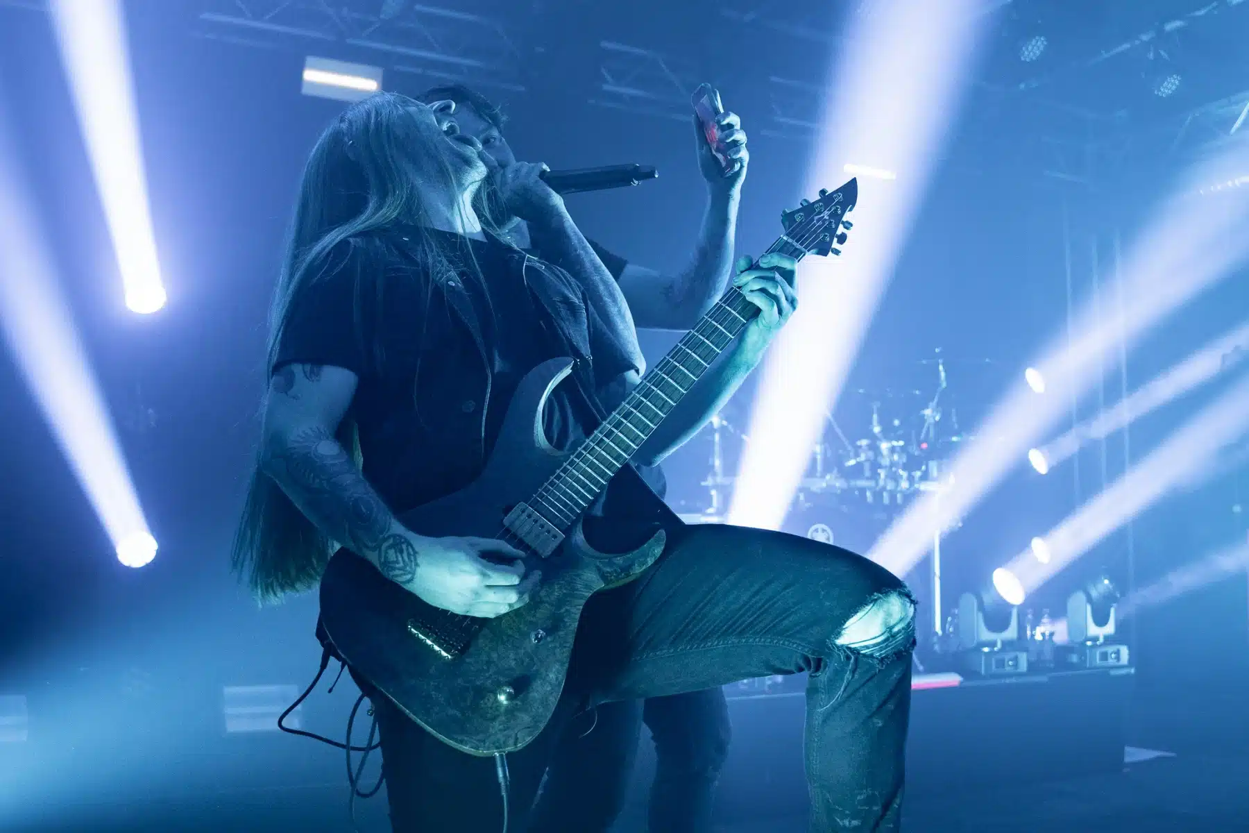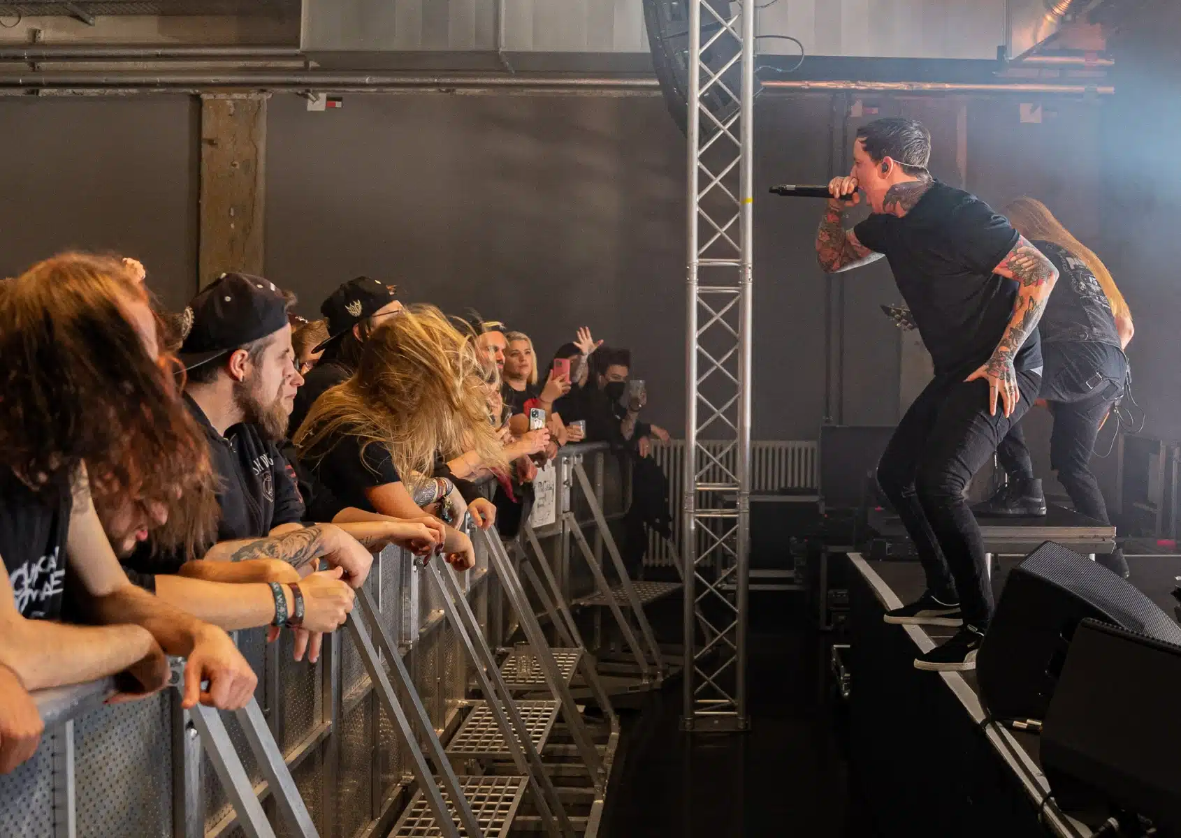Natürlich für keine anderen als die Jungs aus Glasgow – Bleed From Within. Die Band durfte dieses Jahr auf vielen großen Festivals spielen, u.a. auch auf dem Knotfest in Oberhausen. Gerade mit dem neusten Album Shrine hat die Band einen Meilenstein erreicht und viel Aufmerksamkeit bekommen. Pünktlich um 21:30 Uhr hauten die Briten den Fans ihren Opener „I Am Damnation“ um die Ohren und sofort war ordentlich Stimmung im Wizemann Club. Sänger Scott Kennedy mit etwas angeschlagener Stimme heizte die Fans direkt an mitzusingen. Dies klappte auch direkt und beim zweiten Song „Sovereign“ bildete sich der erste Moshpit. Das war der Band aber nicht genug – sie forderte auch noch eine Wall Of Death, Circle Pits und Pogos. Im Grunde genommen stand das ganze Konzert über keiner der Besucher still. Die Tour stand ganz im Zeichen der neusten Platte, also gab es auch viele Songs davon zu hören, u.a. „Flesh and Stone“ und „Paradise“. Mit „Afterlife“ gab es einen etwas älteren Song zu hören, allerdings gab es kein Material von den ersten Alben. Die Chemie zwischen Band und Fans passte an dem Abend einfach wunderbar; es war sozusagen ein gegenseitiges „Geschenke geben“. Leider hat auch so ein schöner Abend einmal ein Ende, also gab es zum Schluss den Song „The End Of All We Know“ und da wurden nochmal die letzten Kraftreserven der Fans gefordert, um lauthals mitzusingen.