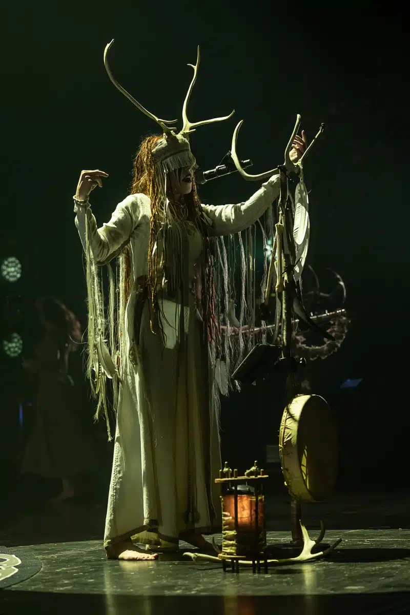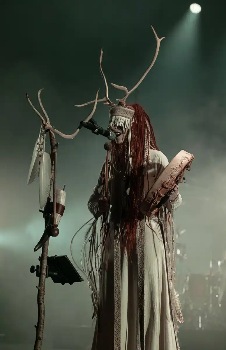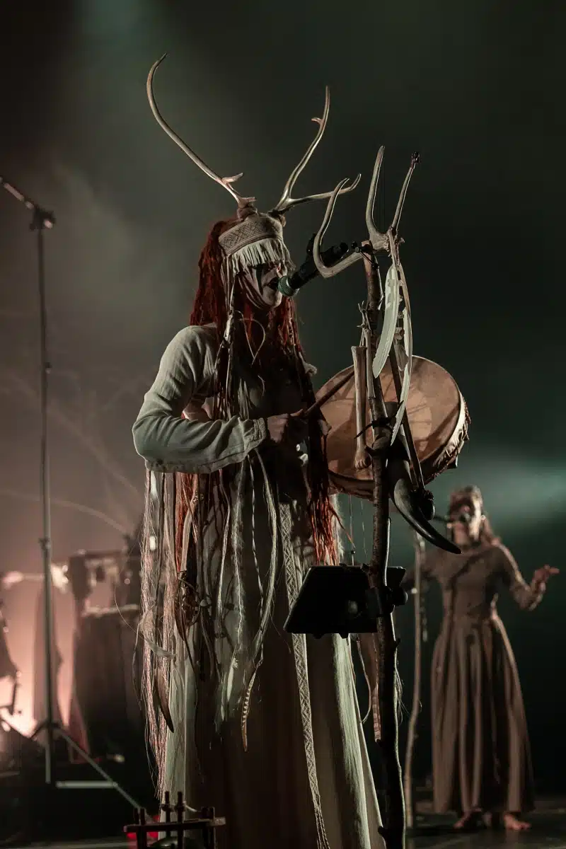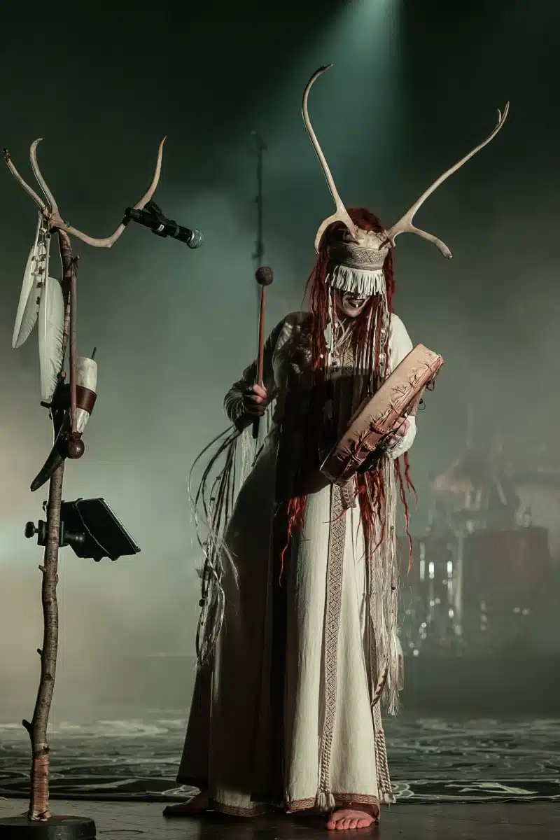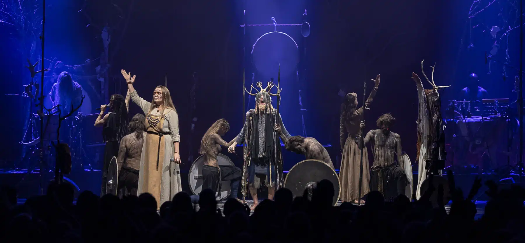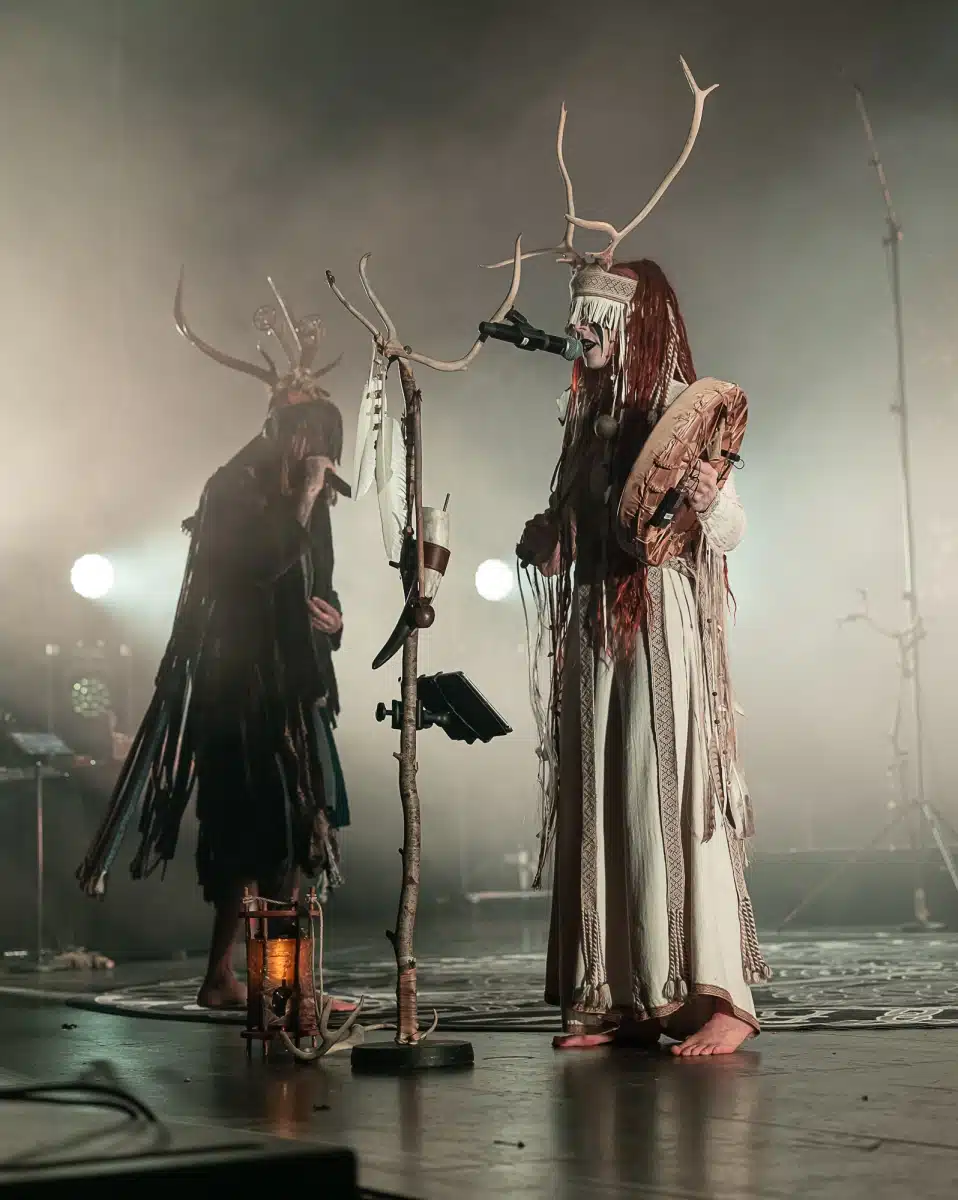 Als weiteres Stilmittel werden von den Bandmitgliedern auf der Bühne aufwendig gestaltete Trachten getragen. Sie sind teilweise angelehnt an die „spirituellen Traditionen der eurasischen Zirkumpolarvölker“ oder geben historisch korrekte Abbildungen wikingerzeitlicher Kleidung wieder.