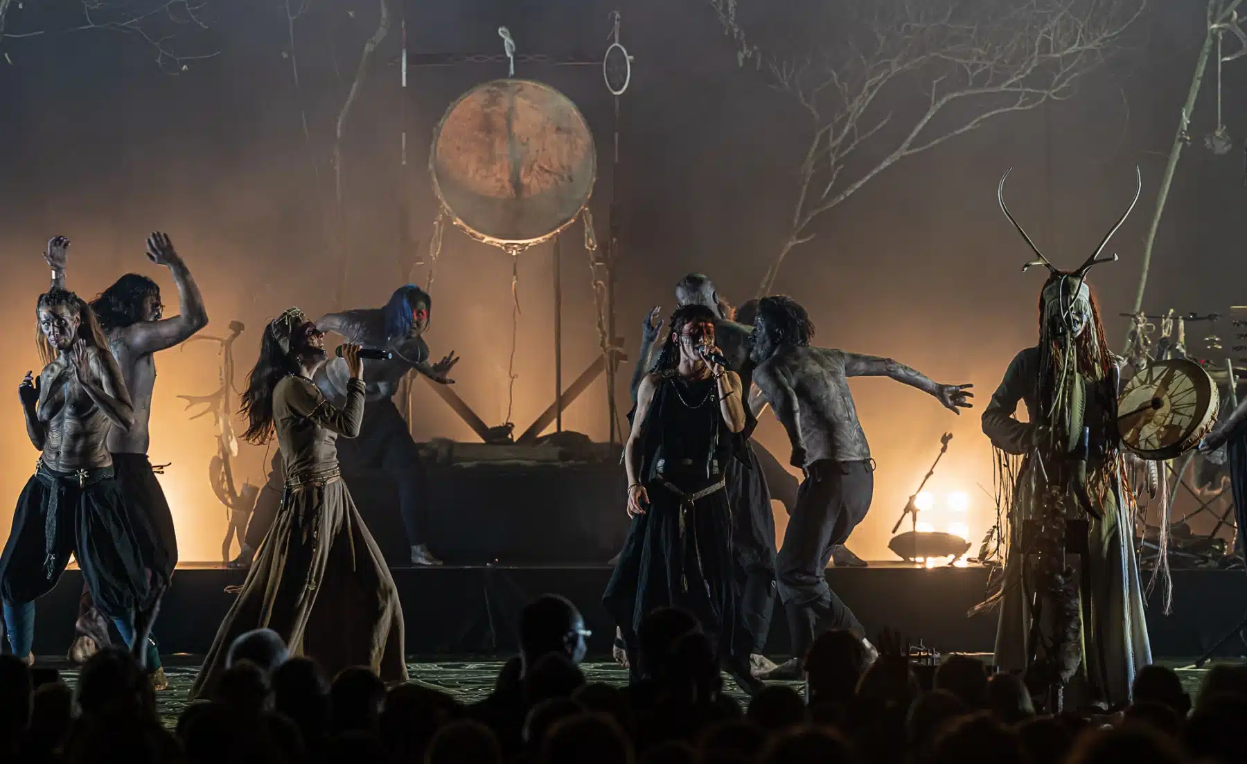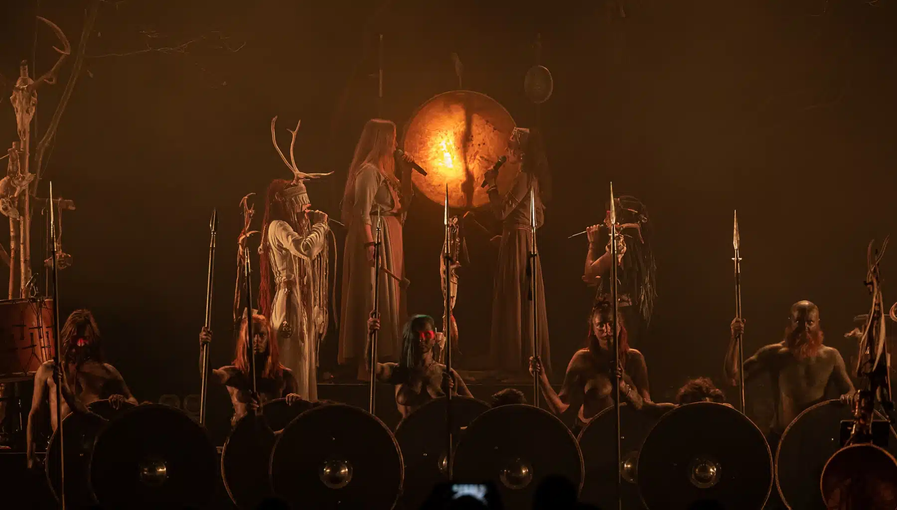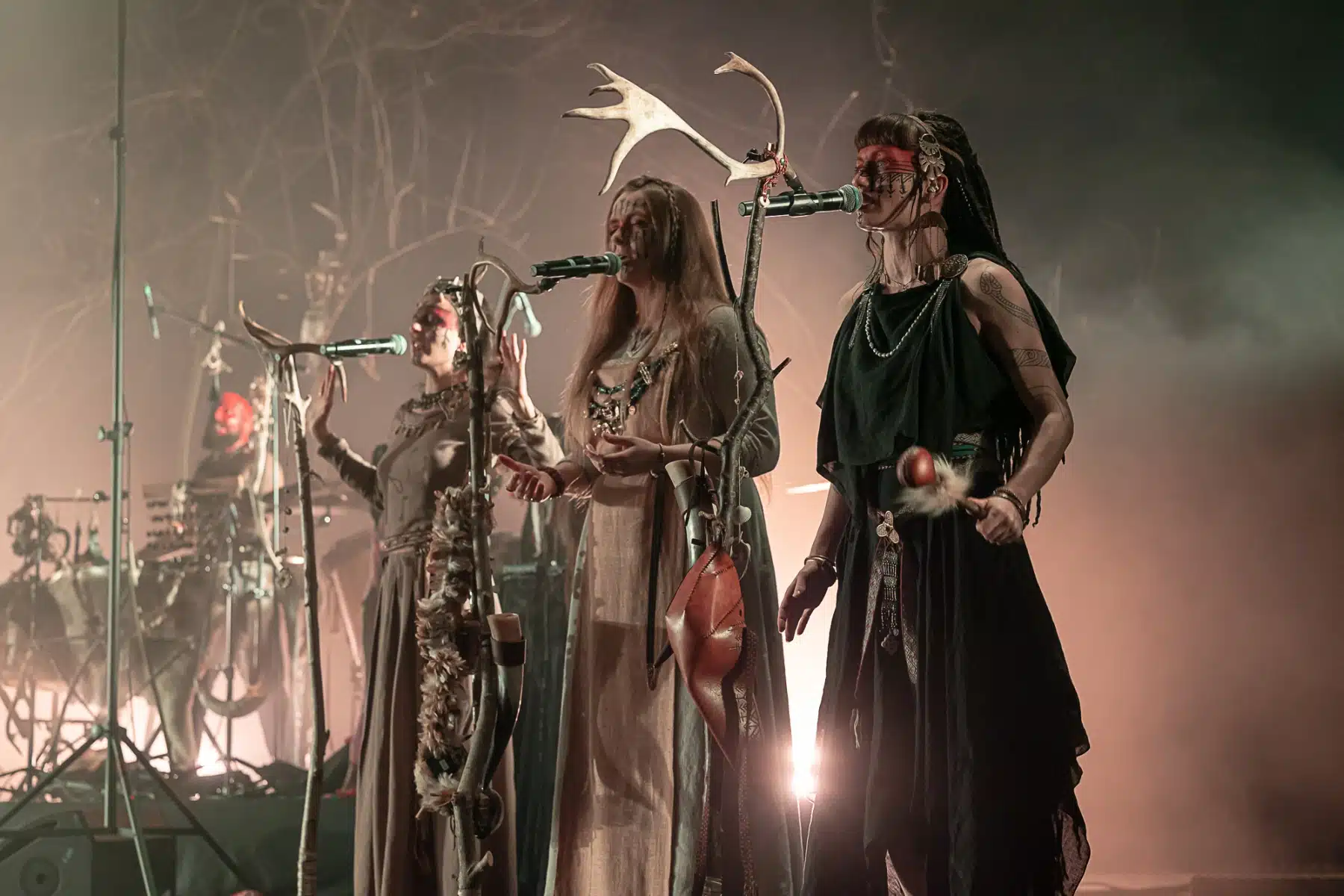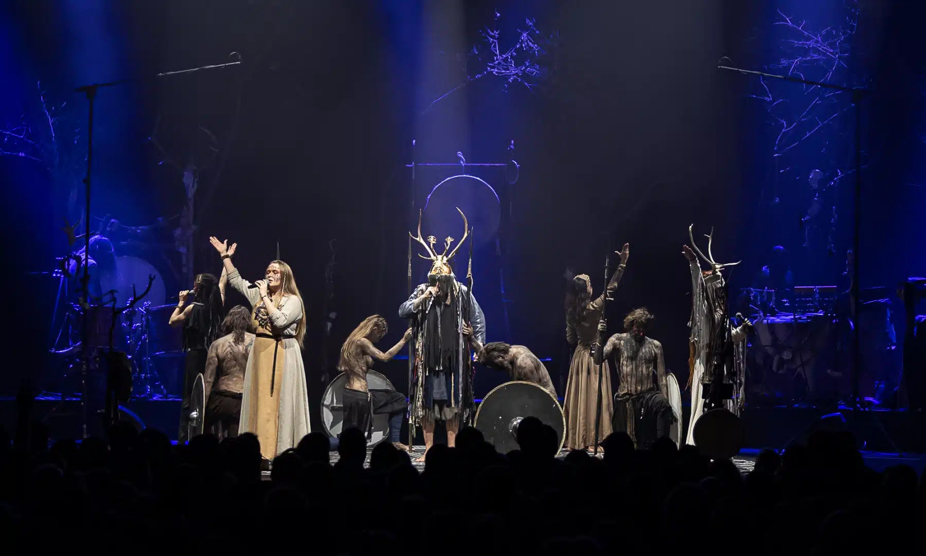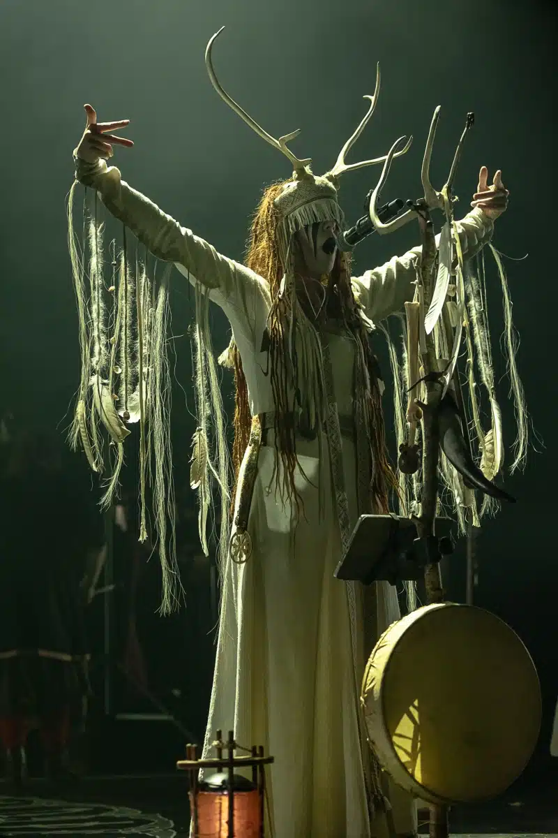 Als weiteres Stilmittel werden von den Bandmitgliedern auf der Bühne aufwendig gestaltete Trachten getragen. Sie sind teilweise angelehnt an die „spirituellen Traditionen der eurasischen Zirkumpolarvölker“ oder geben historisch korrekte Abbildungen wikingerzeitlicher Kleidung wieder.