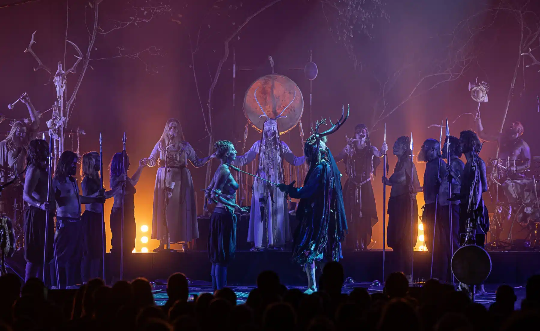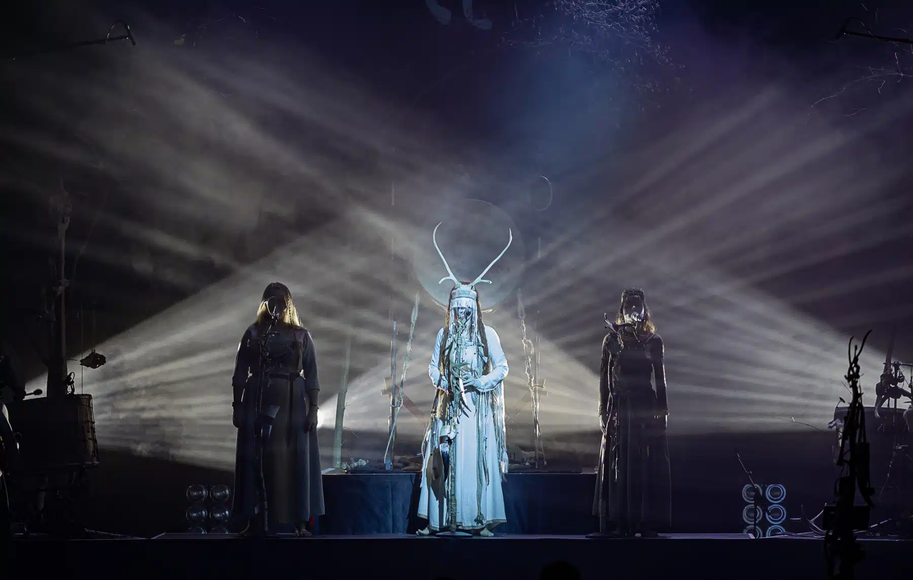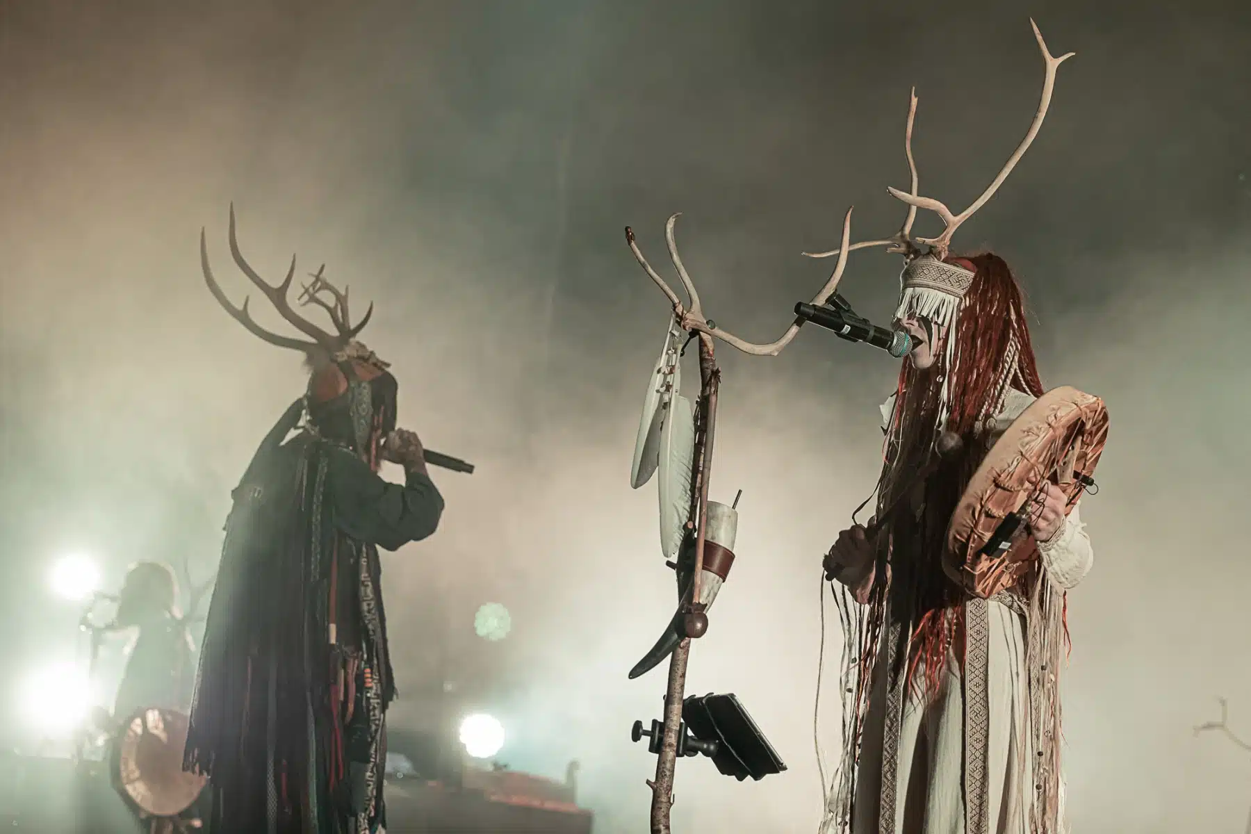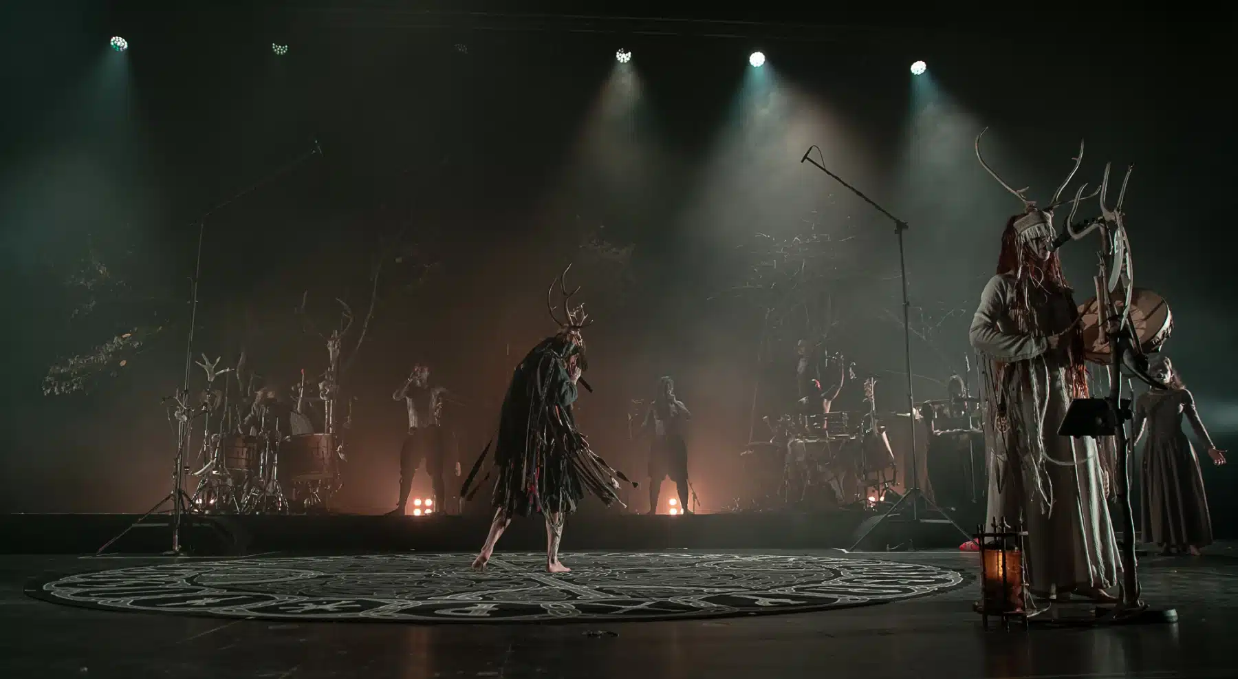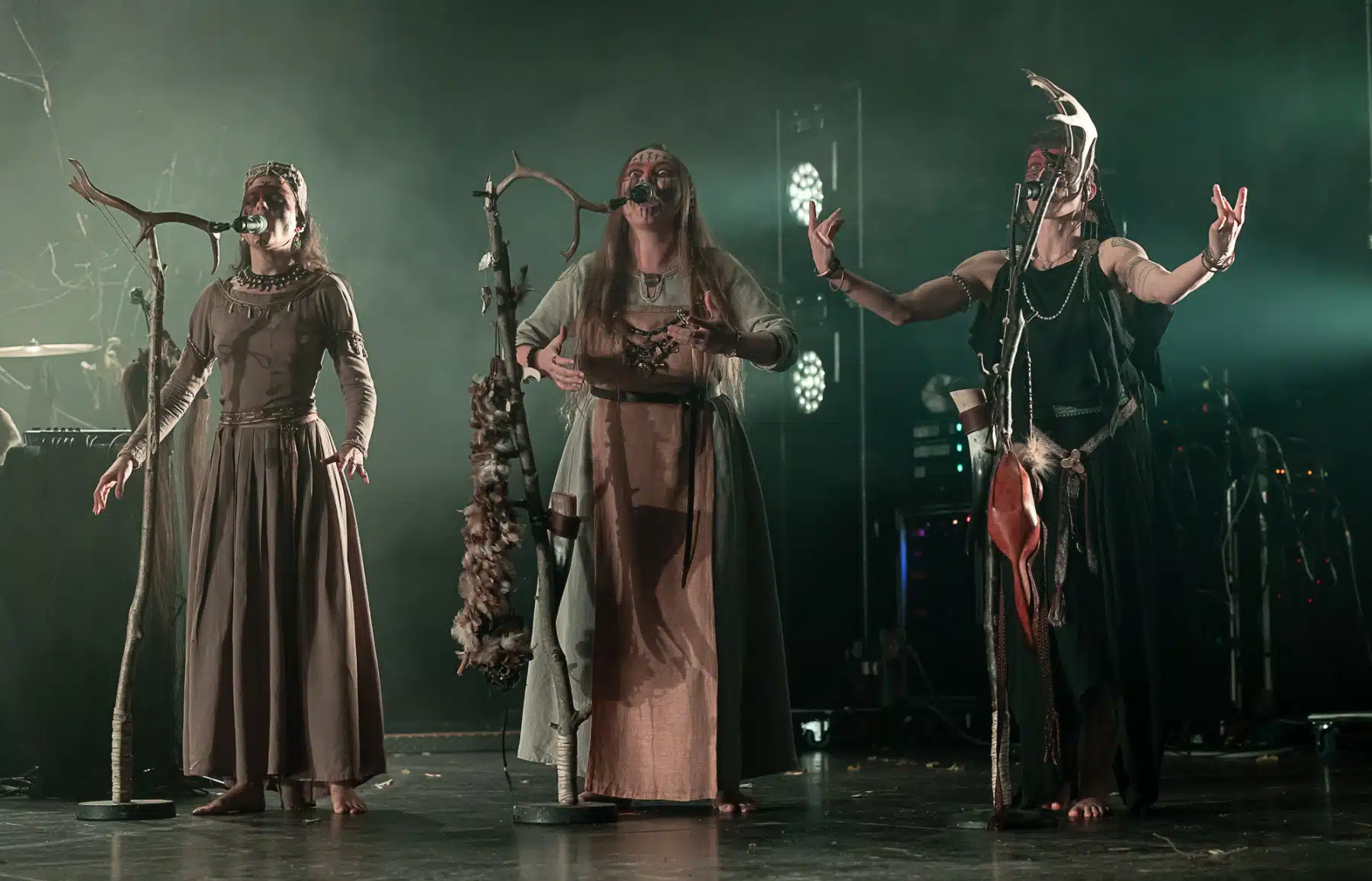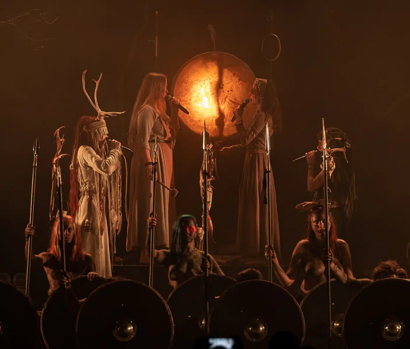 Als weiteres Stilmittel werden von den Bandmitgliedern auf der Bühne aufwendig gestaltete Trachten getragen. Sie sind teilweise angelehnt an die „spirituellen Traditionen der eurasischen Zirkumpolarvölker“ oder geben historisch korrekte Abbildungen wikingerzeitlicher Kleidung wieder.