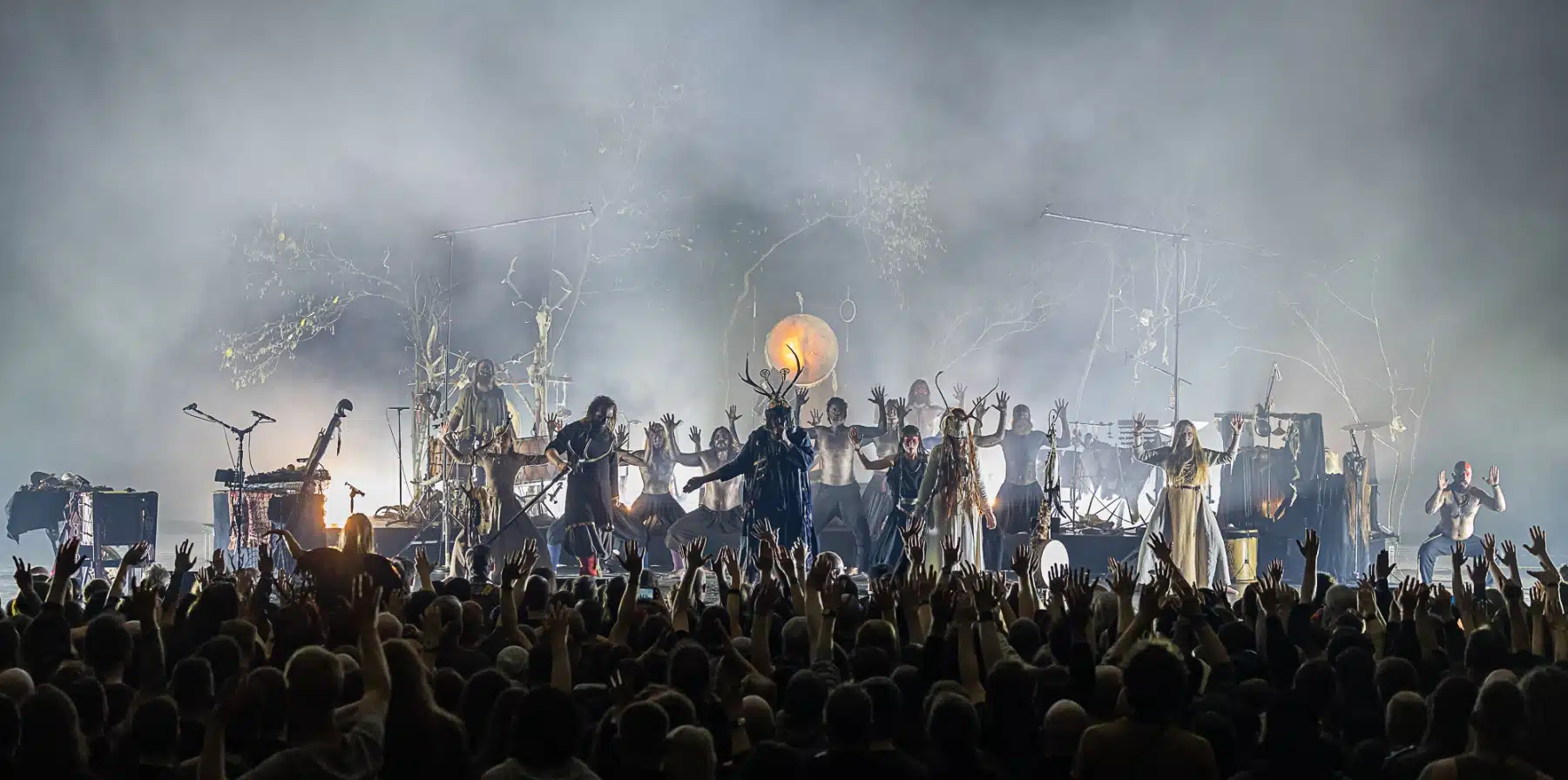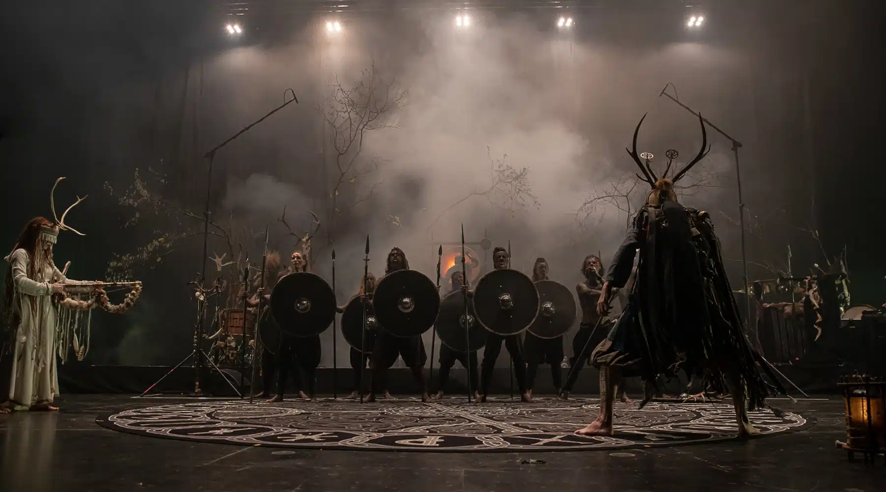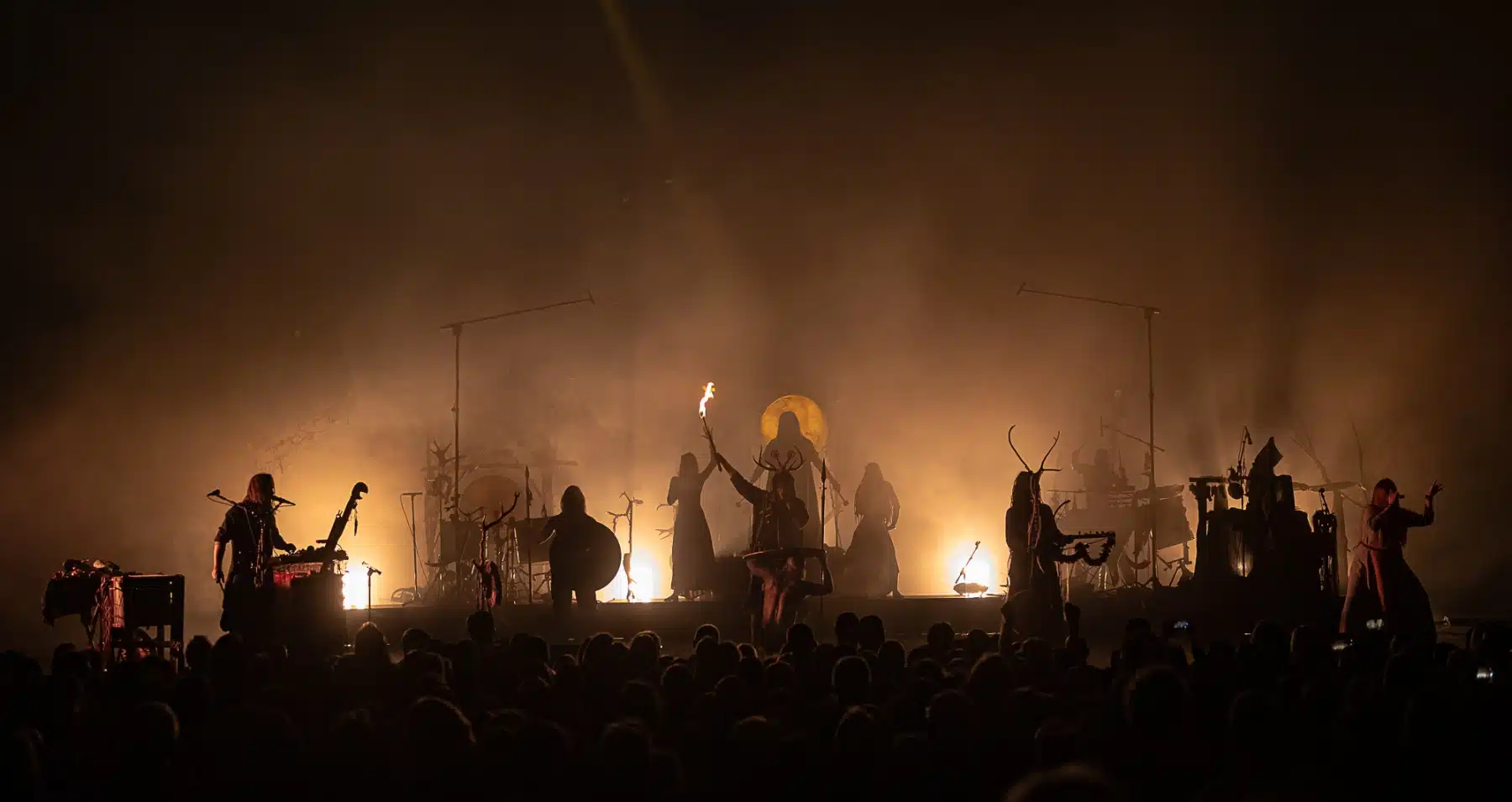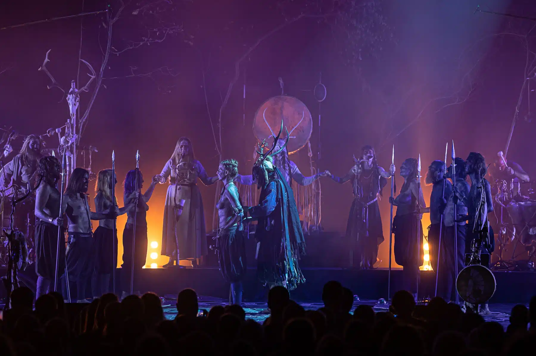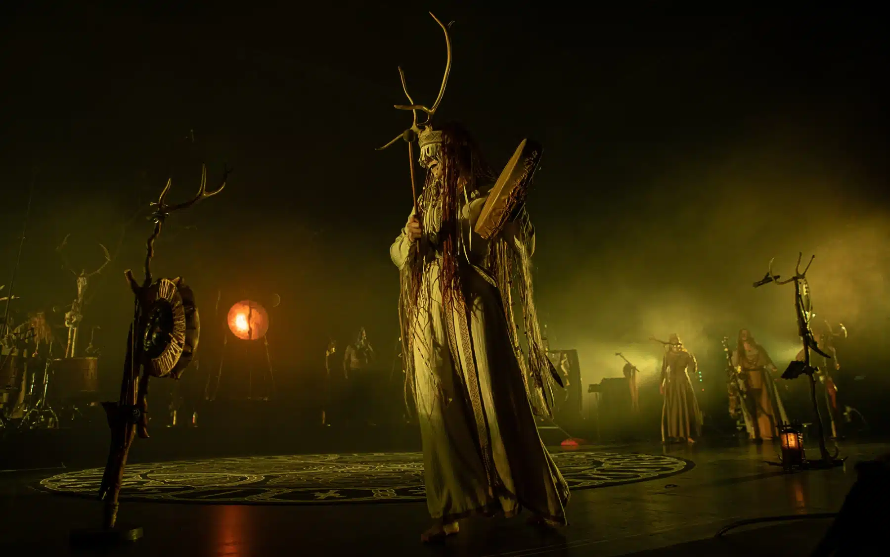 Als weiteres Stilmittel werden von den Bandmitgliedern auf der Bühne aufwendig gestaltete Trachten getragen. Sie sind teilweise angelehnt an die „spirituellen Traditionen der eurasischen Zirkumpolarvölker“ oder geben historisch korrekte Abbildungen wikingerzeitlicher Kleidung wieder.