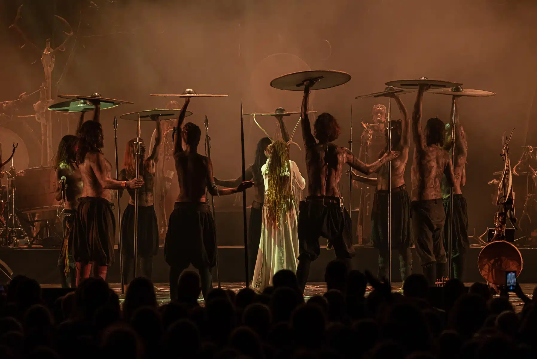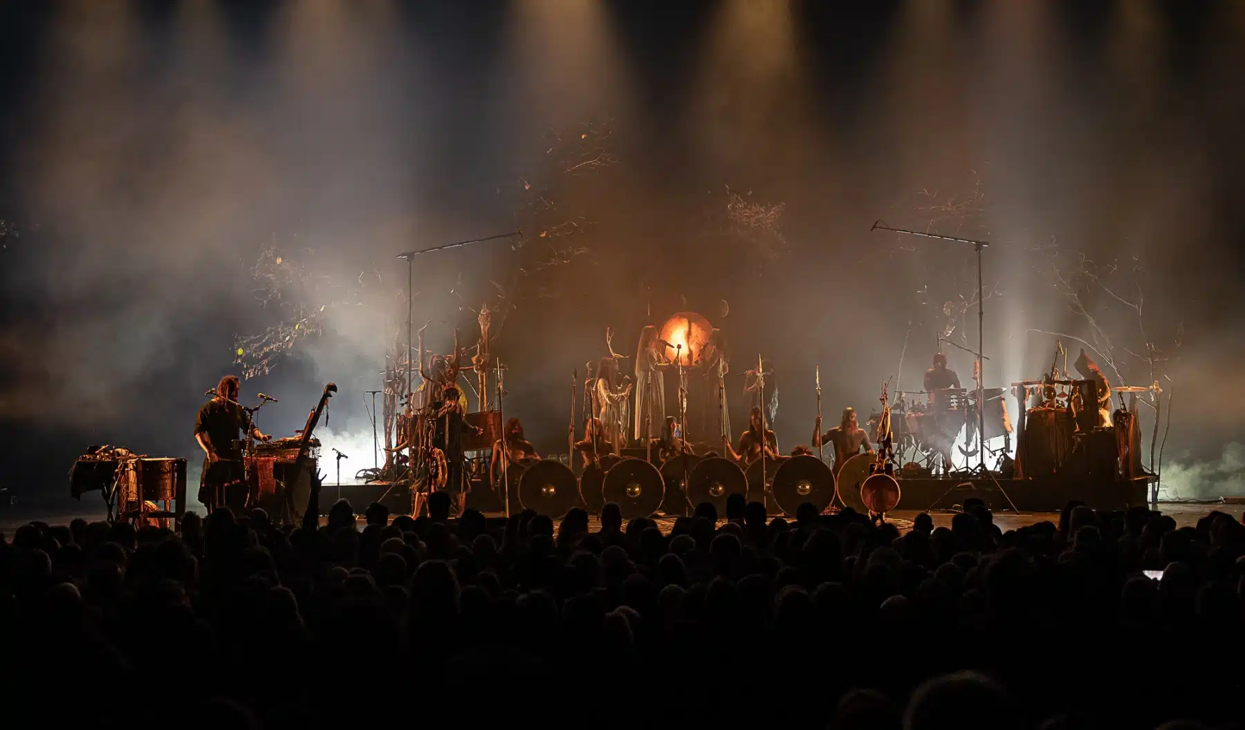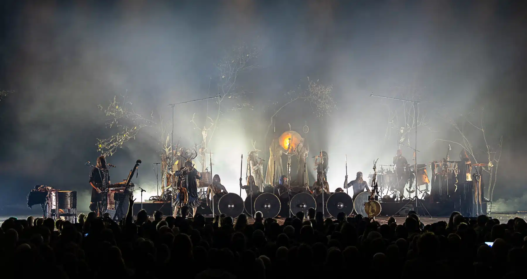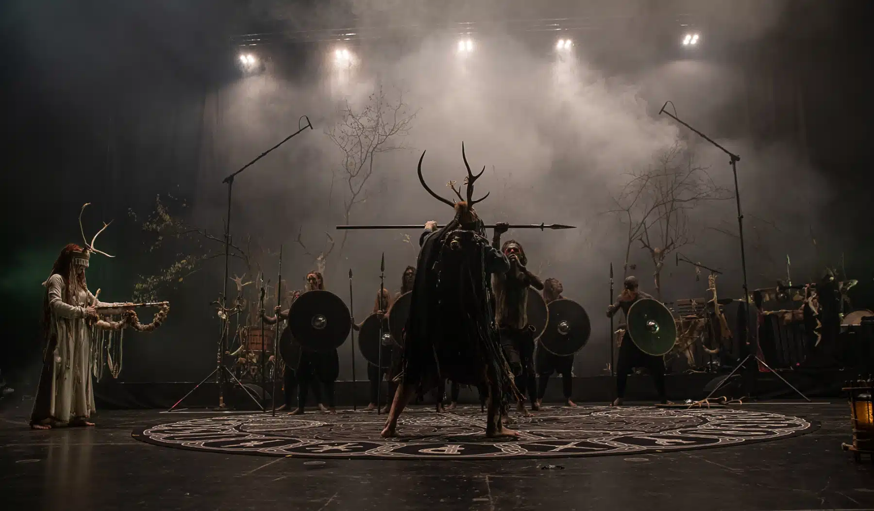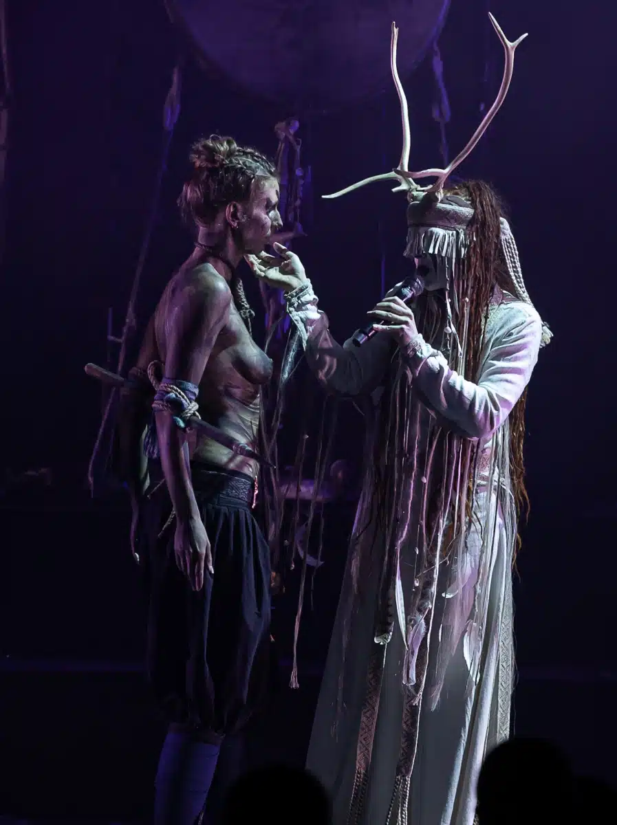 Als weiteres Stilmittel werden von den Bandmitgliedern auf der Bühne aufwendig gestaltete Trachten getragen. Sie sind teilweise angelehnt an die „spirituellen Traditionen der eurasischen Zirkumpolarvölker“ oder geben historisch korrekte Abbildungen wikingerzeitlicher Kleidung wieder.