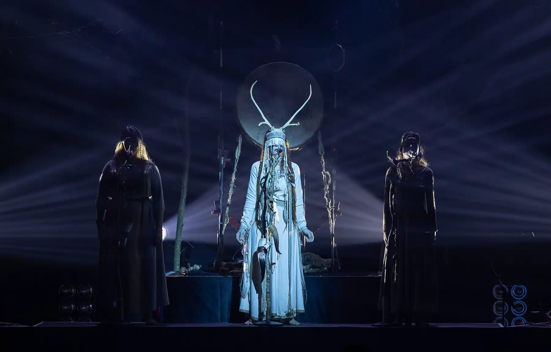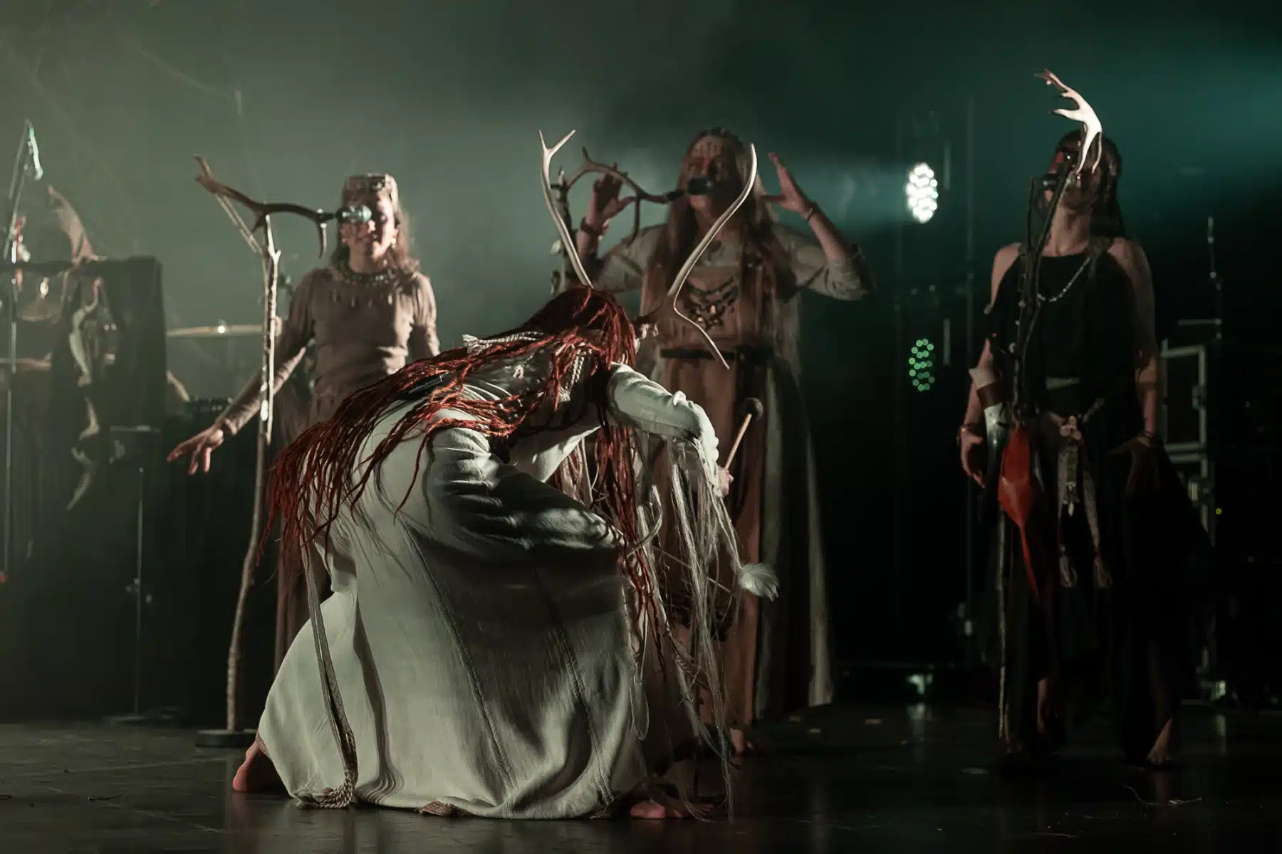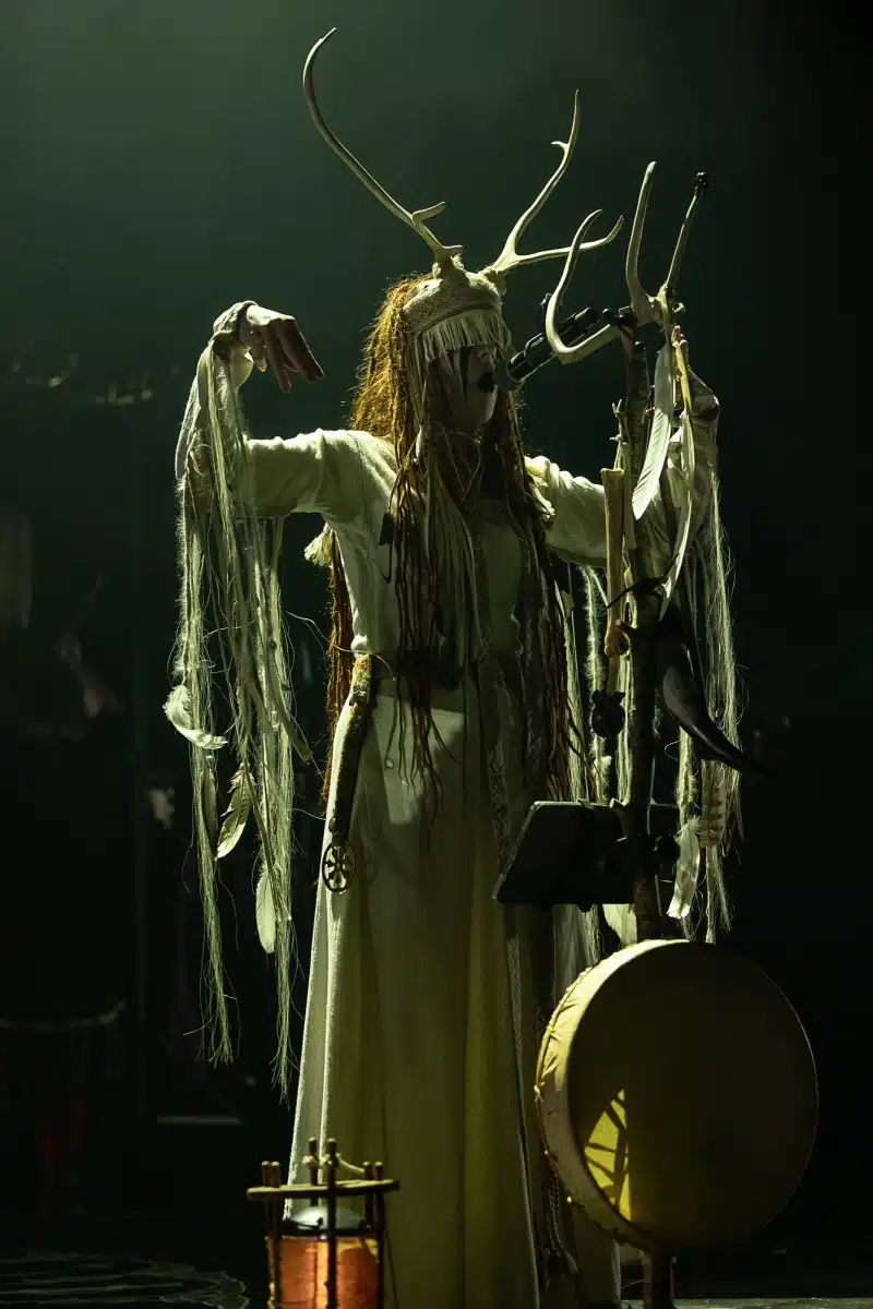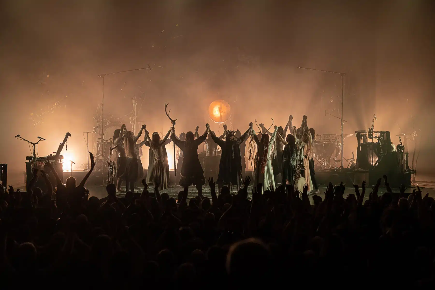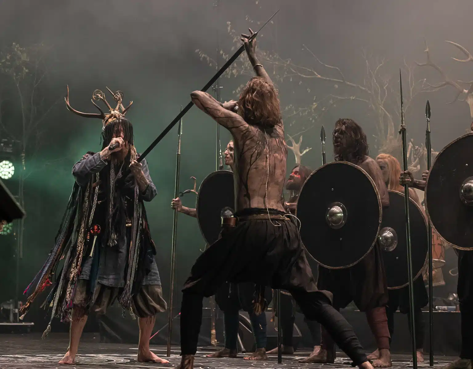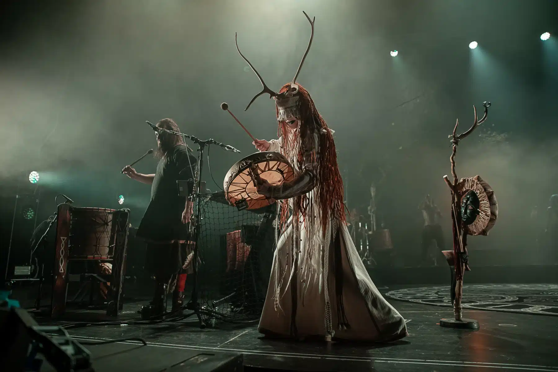 Als weiteres Stilmittel werden von den Bandmitgliedern auf der Bühne aufwendig gestaltete Trachten getragen. Sie sind teilweise angelehnt an die „spirituellen Traditionen der eurasischen Zirkumpolarvölker“ oder geben historisch korrekte Abbildungen wikingerzeitlicher Kleidung wieder.