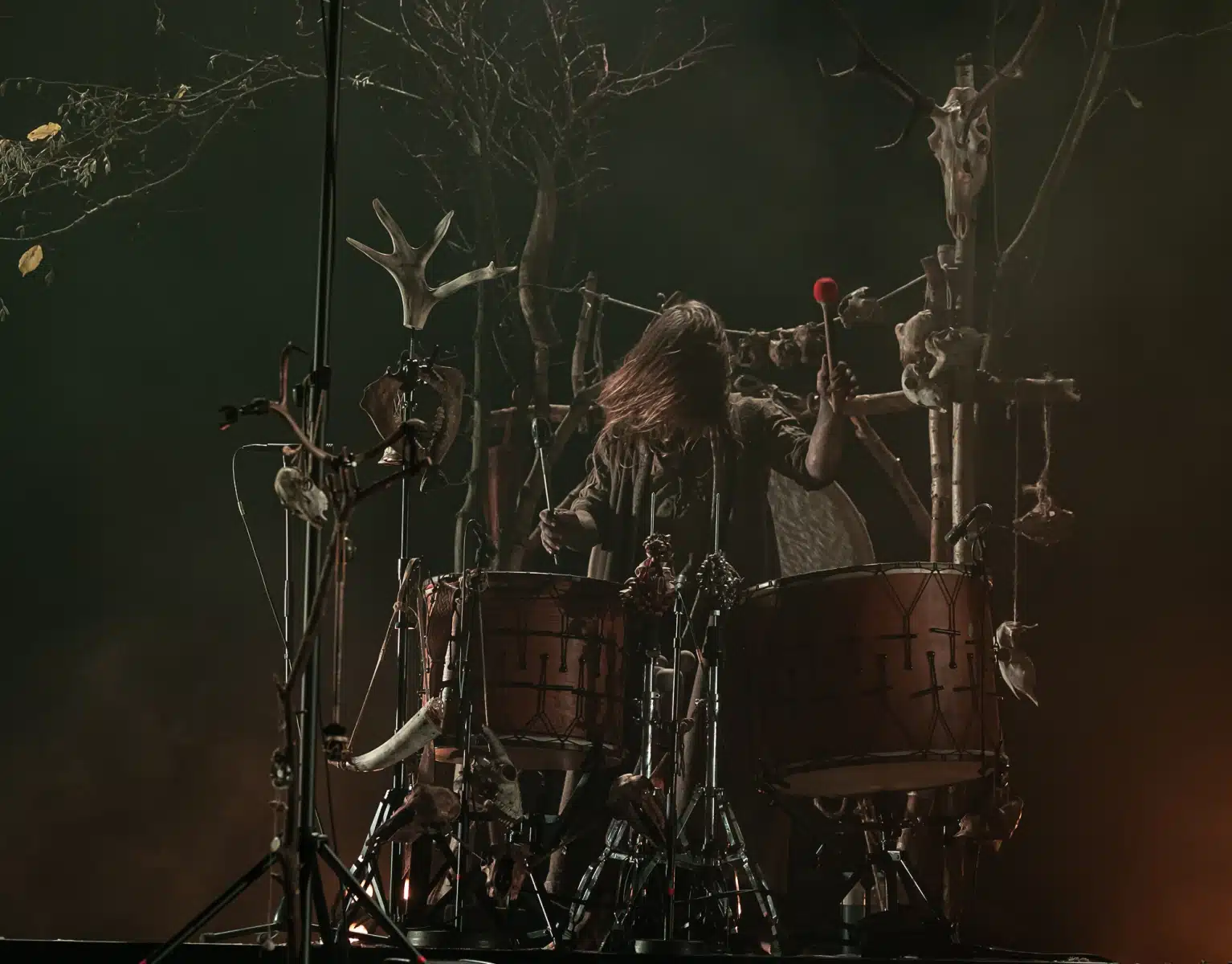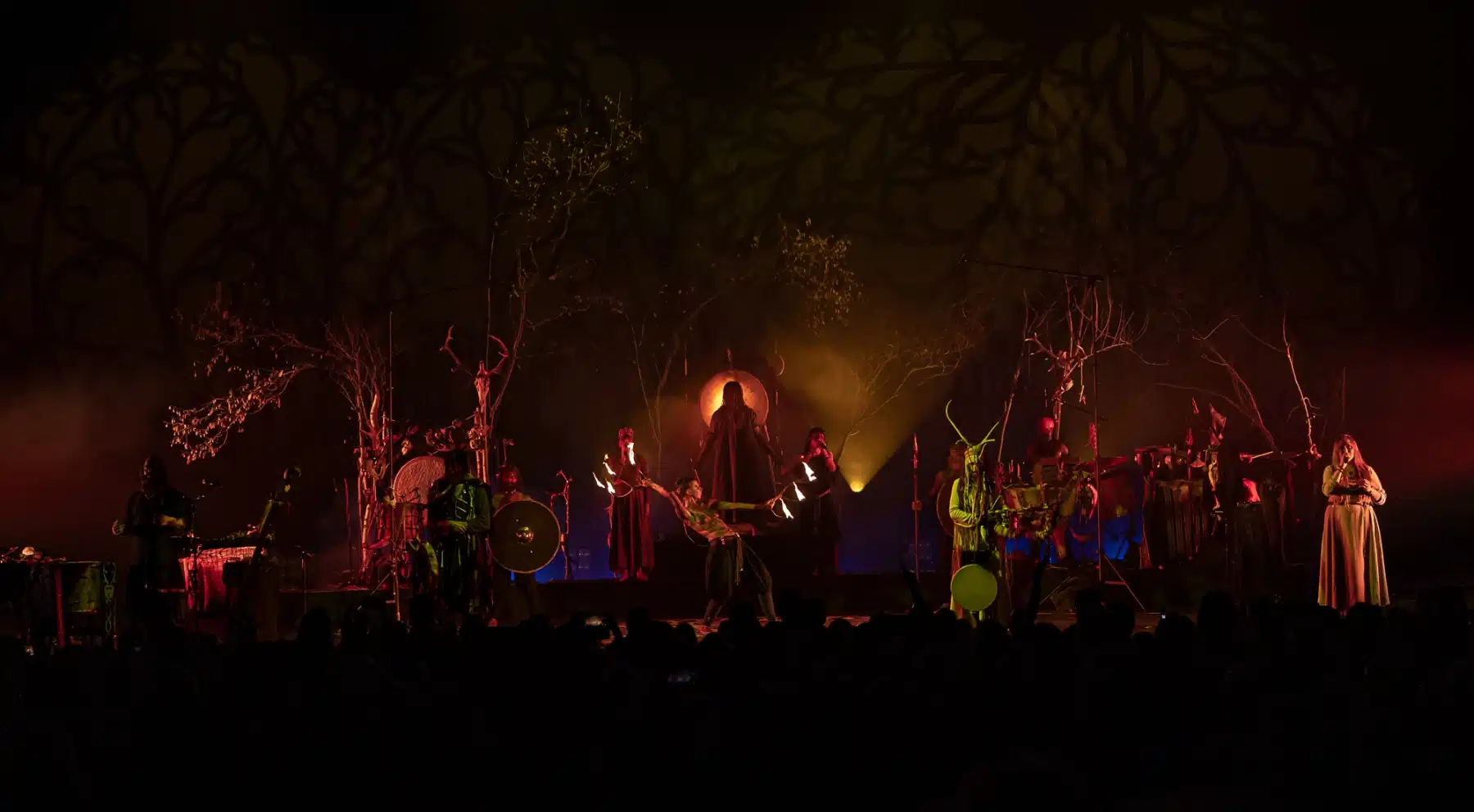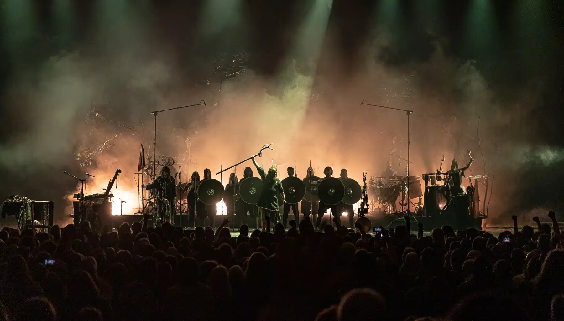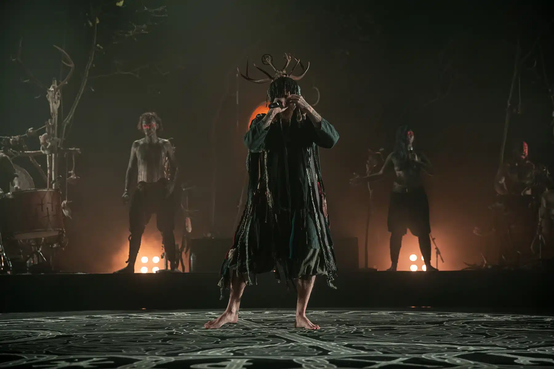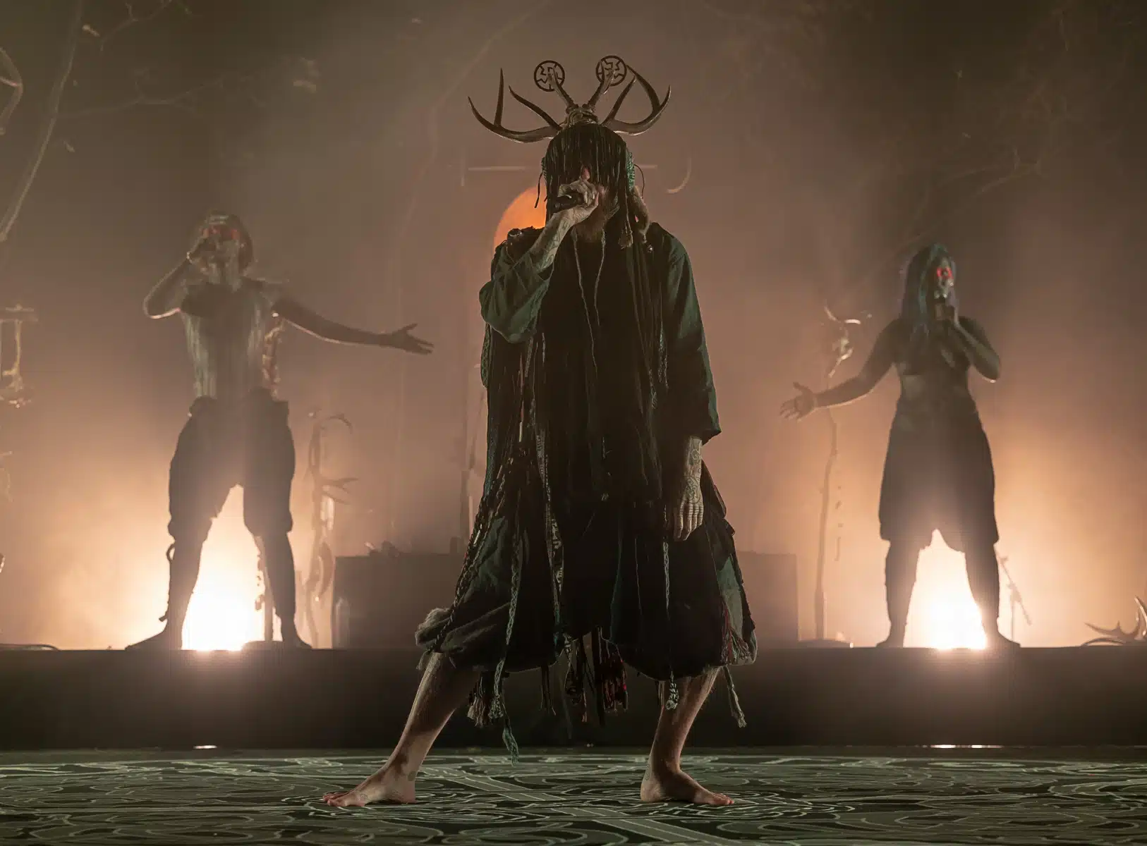 Als weiteres Stilmittel werden von den Bandmitgliedern auf der Bühne aufwendig gestaltete Trachten getragen. Sie sind teilweise angelehnt an die „spirituellen Traditionen der eurasischen Zirkumpolarvölker“ oder geben historisch korrekte Abbildungen wikingerzeitlicher Kleidung wieder.