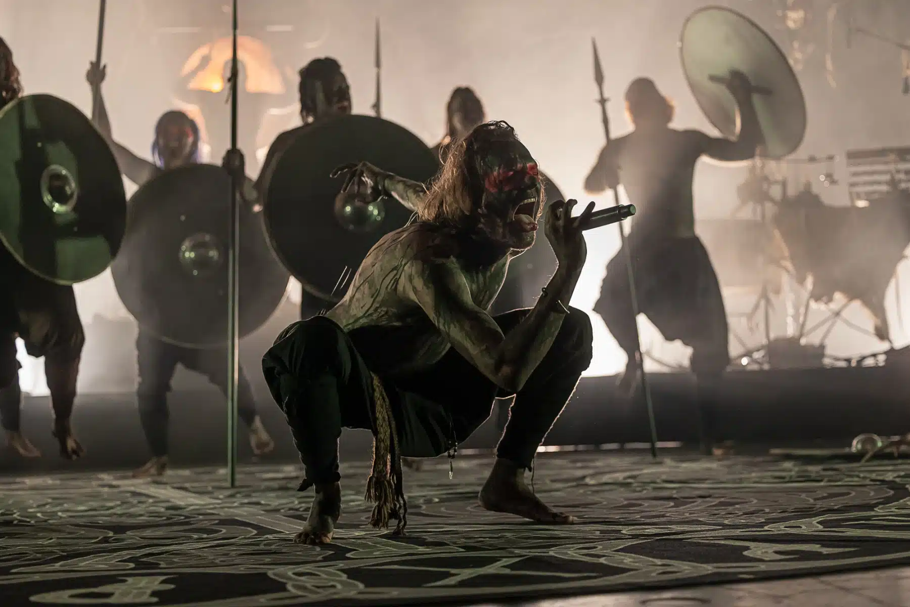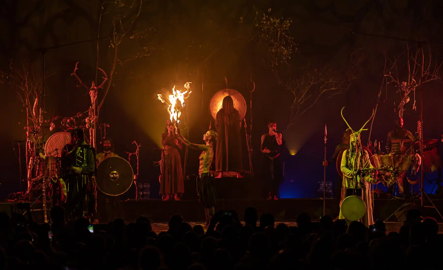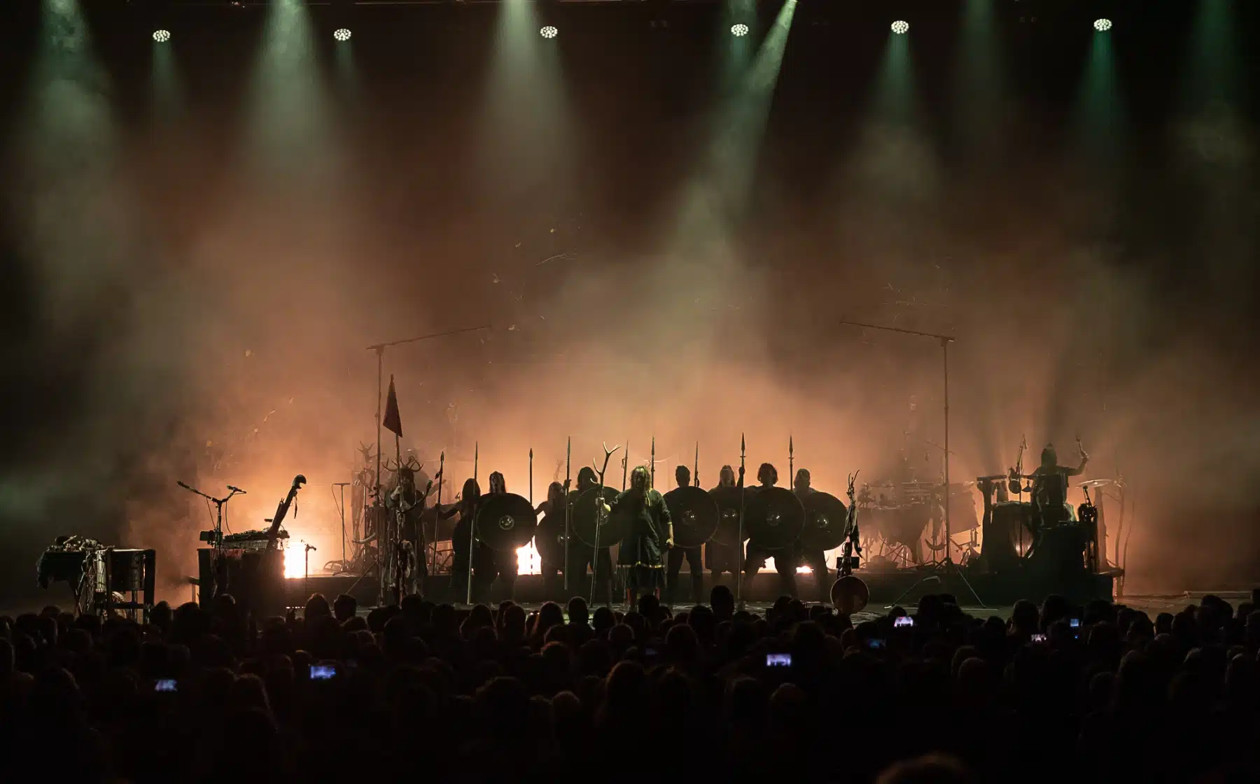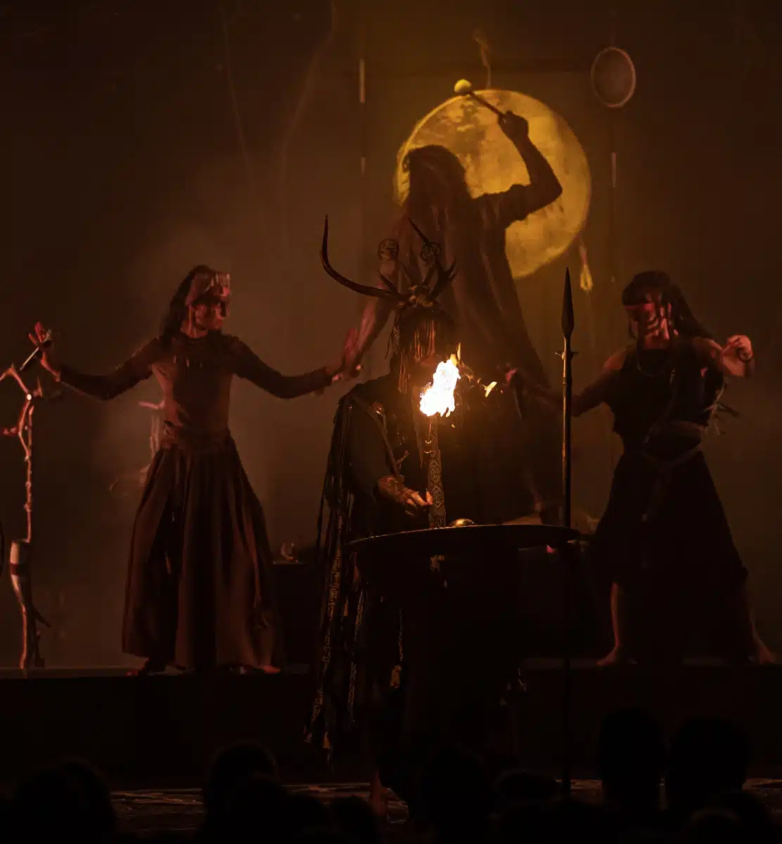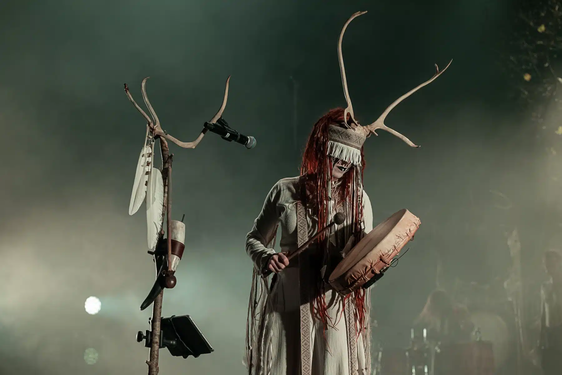 Als weiteres Stilmittel werden von den Bandmitgliedern auf der Bühne aufwendig gestaltete Trachten getragen. Sie sind teilweise angelehnt an die „spirituellen Traditionen der eurasischen Zirkumpolarvölker“ oder geben historisch korrekte Abbildungen wikingerzeitlicher Kleidung wieder.