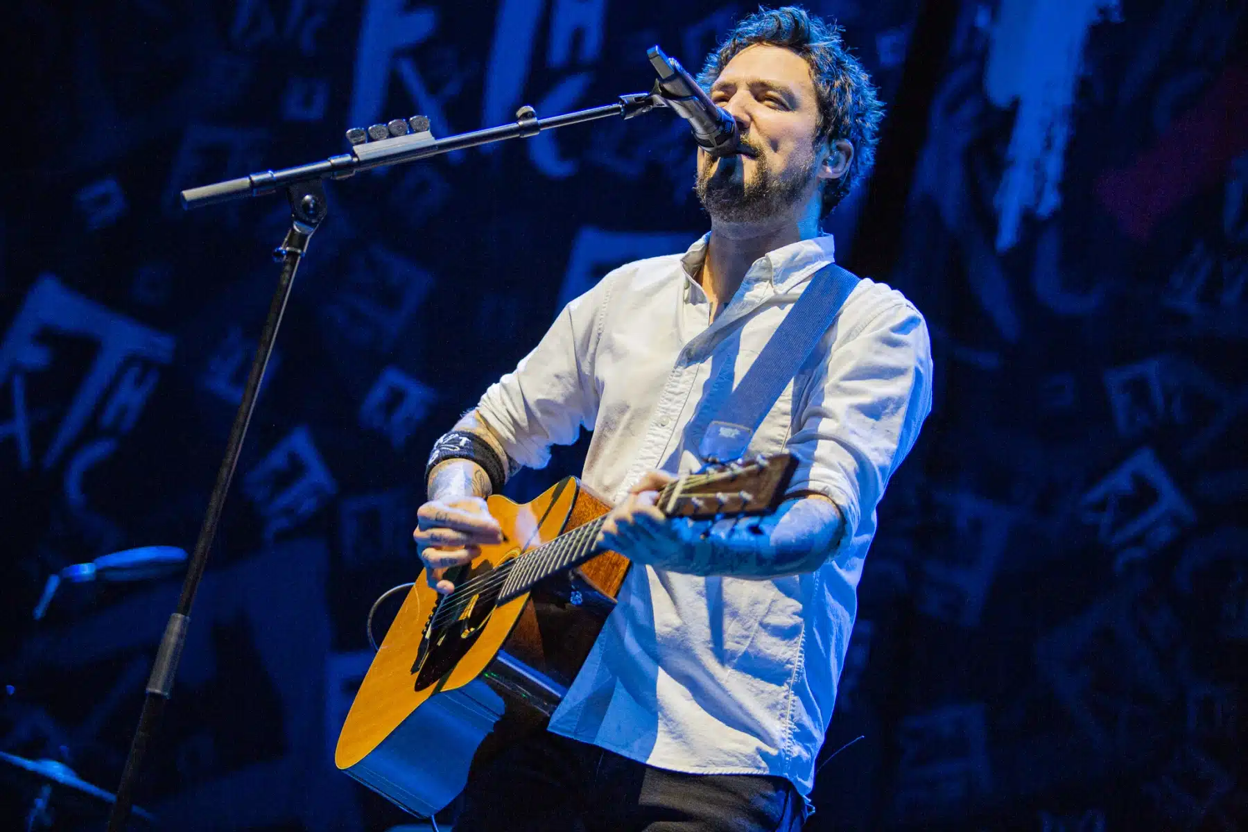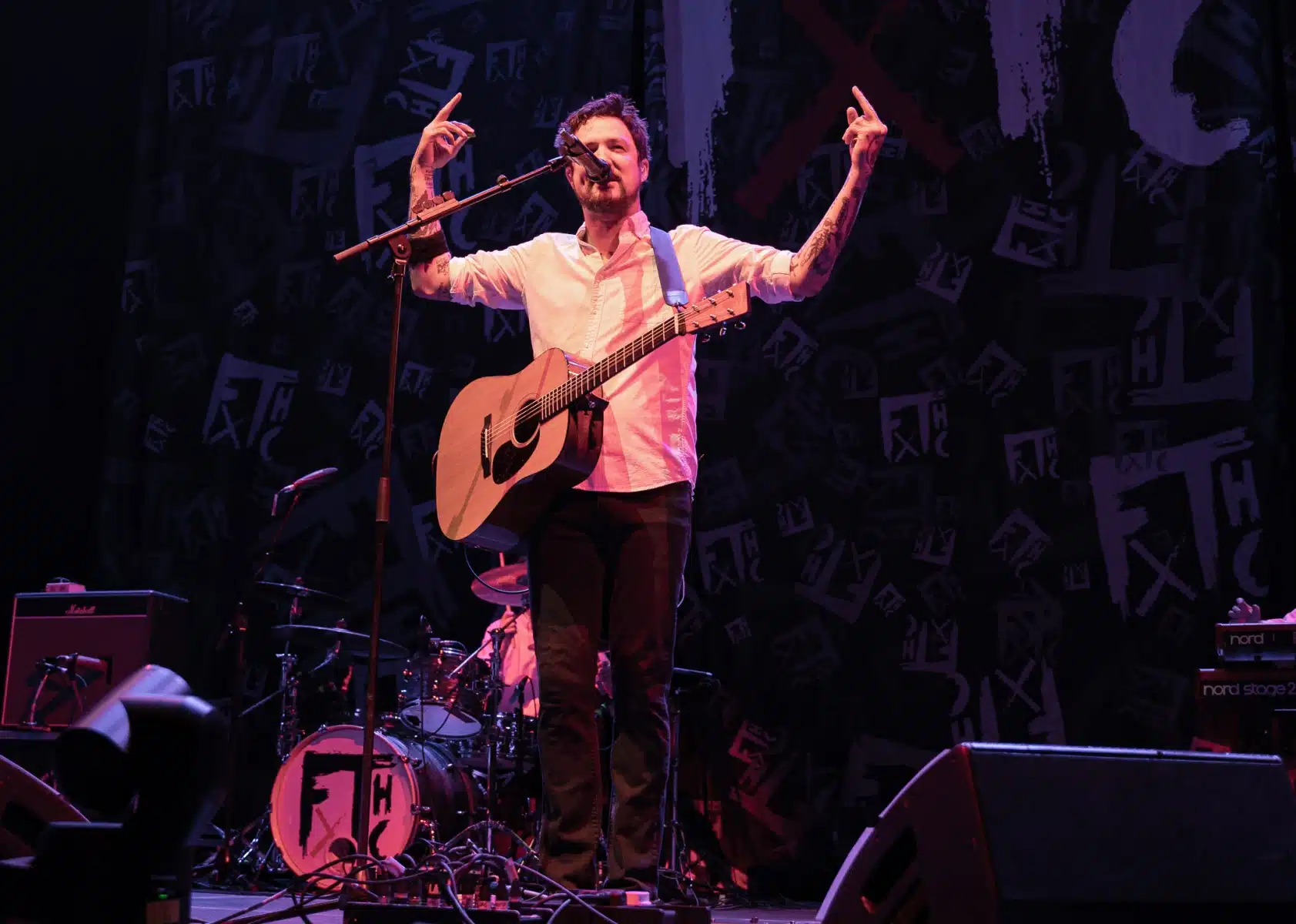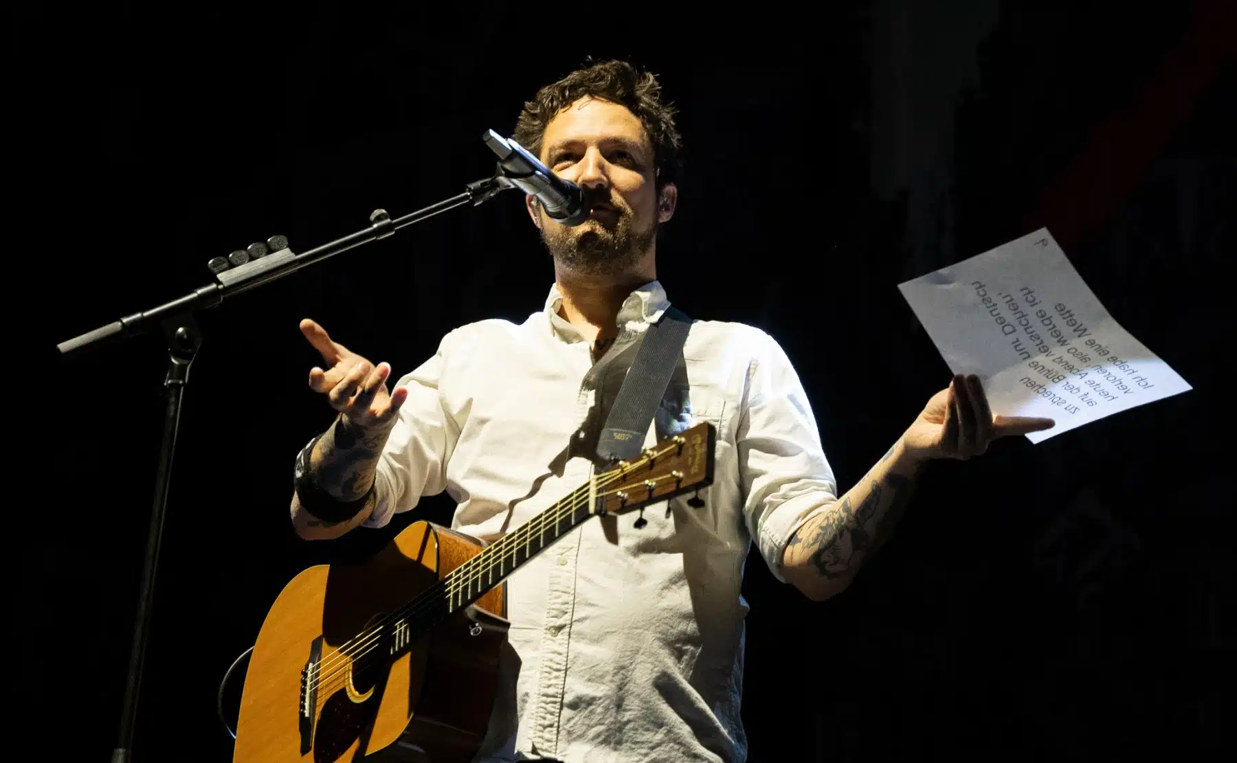 Pünktlich um 19 Uhr kamen die drei Jungs von der Band Pabst auf die Bühne erzählen, wie sie als Support Act eingeladen worden sind. Sympathische Story; jetzt war aber Zeit für Musik. Mit ihrem rockigen Sound versuchte die Band die Leute einzuheizen, aber leider wollte der Funke nicht direkt überspringen. Trotz viel Action auf der Bühne bewegten sich nur ein paar der Leute Richtung Ende des Sets. Nach ca. 25 Minuten war dann der nächste Support am Start. Kein anderer als Frank Turner mit seinen Sleeping Souls. Der sympathische Sänger betrat erst einmal alleine die Bühne, um eine Ankündigung zu machen. Er hätte eine Wette verloren und müsste das gesamte Konzert über Deutsch mit den Besuchern reden. Gesagt, getan. Okay, vieles davon hat er vom Monitor abgelesen, aber als Engländer ist es dennoch nicht so einfach. Mit der ganz alten Nummer „Recovery“ startete dann die gesamte Band und die Stimmung war echt gut. Die Mischung aus Folk- und Punkrock ging voll auf und die Besucher fingen an zu tanzen und auch der ein oder andere Pit entstand. So spielten sich Frank Turner and the Sleeping Souls durch ihre Diskografie und der ein oder andere lustige Spruch des Frontmanns ging Richtung Publikum. Den Song “Eulogy” sang der symphytische Brite sogar auf Deutsch, das schafft auch nicht jeder. Mit ihrer letzten Nummer “Four Simple Words” verabschiedete sich die Band von den Fans und bedankte sich für die Zeit, die die Besucher bei ihrer Show investierten.