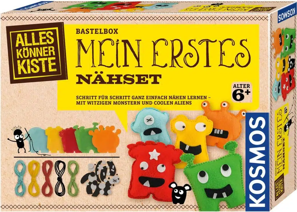 Die Knuddelmonster sind los! Mit der „AllesKönnerKiste Mein erstes Nähset“ nähen Kinder ab 6 Jahren Schritt für Schritt ihre ersten Figuren aus robustem Filz. Einfach der Anleitung folgen und die vorgestanzten Filzformen mit stumpfer Nadel und dickem Garn verbinden. Mit Füllwatte füllen und zum Schluss nach Lust und Laune mit den selbstklebenden Filz-Verzierungen gestalten. Ein wunderbares Set, mit dem von der ersten Naht bis zum individuellen Gestalten einfach alles gelingt! Kleine Monsternäher können gleichzeitig kreativ sein und ihre Feinmotorik verbessern. Erfolgserlebnisse sind garantiert, wenn sie ihr erstes Monsterchen selbstgenäht haben. Perfekt für kreative Bastelnachmittage mit Freunden!