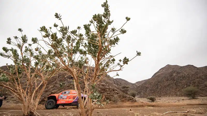 Die letzte Tageswertung der ersten Woche des Wüstenklassikers ging an Carlos Sainz/Lucas Cruz (ESP/ESP, Audi), die Gesamtwertung führen weiterhin Nasser Al-Attiyah/ Matthieu Baumel (QAT/FRA, Toyota) souverän an. Die Sonderprüfung von Ad-Dawadimi nach Riad begann mit Off-Piste, schlängelte sich entlang gewundener Pfade durch trockene Flussbetten und durch Täler. Nach rund 50 Kilometern öffnete sich das Gelände wieder. Welche der Spuren die richtigen waren, stellte daraufhin die Navigatoren vor eine knifflige Aufgabe. Auf die sandigen Pisten folgten erneut anspruchsvolle Navigation in Tälern und abermals die Querung von Dünen – bis ins Ziel.