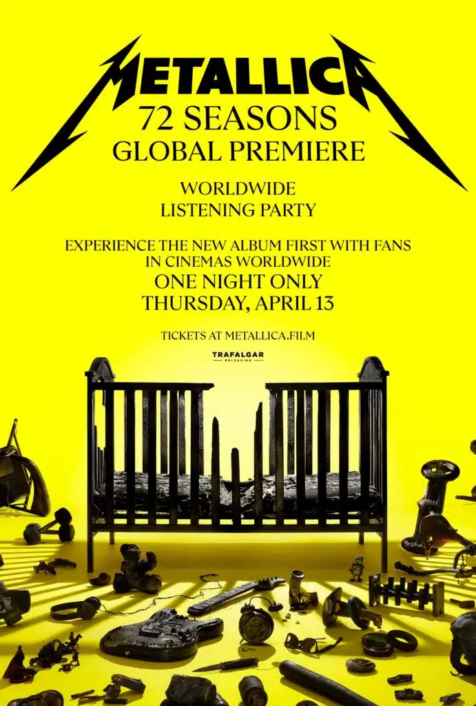 Metallica, Trafalgar Releasing und LUF Kino freuen sich, Fans weltweit zu einem ganz besonderen Hörerlebnis einzuladen: der globalen Premiere von Metallicas kommendem 12. Studioalbum „72 Seasons“. Nur einen Abend lang, am Donnerstag, den 13. April, wird „72 Seasons“ in vollem Umfang und in einem überwältigenden Surround-Sound exklusiv für das Kinopublikum auf der ganzen Welt gespielt – jeder der neuen Songs mit einem eigenen Musikvideo und einem exklusiven Kommentar der Band. Dieses einmalige Ereignis wird den Fans einen unvergesslichen Abend bescheren, wenn sie „72 Seasons“ am Vorabend der Veröffentlichung am 14. April erstmals in voller Länge erleben. Sehen Sie sich das Ankündigungsvideo zu „Metallica: 72 Seasons – Global Premiere“ von Metallica HIER an.