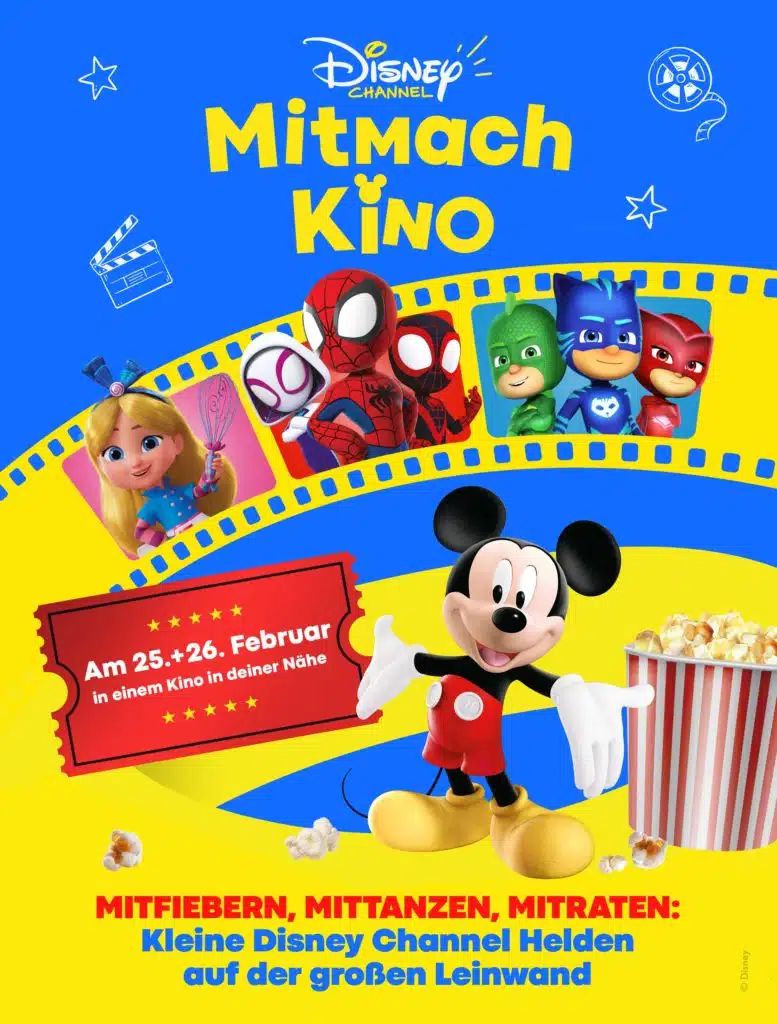 Unter folgendem Link gibt es zudem einen deutschlandweiten Kinofinder: https://app.powster.com/disney/disney-channel-mitmach-kino/de/ (hier könnt ihr schauen, welche Kinos in der Region teilnehmen)