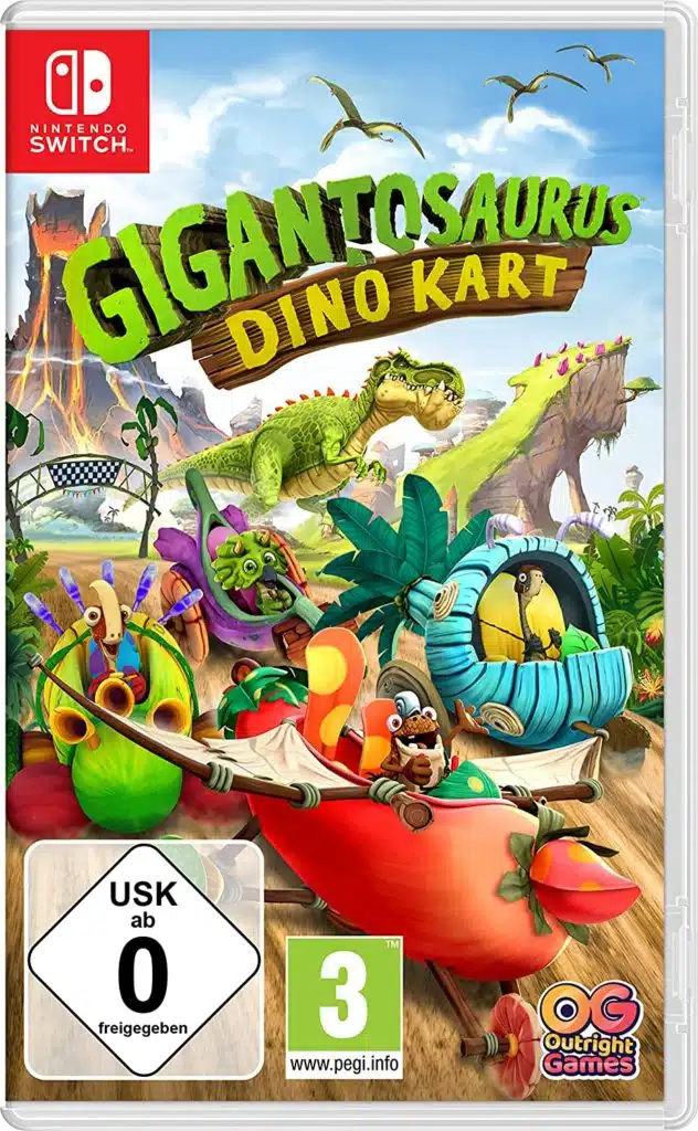 Als dein Lieblingsdino kannst du in Cretacia in einer prähistorischen Kartmeisterschaft herumdüsen. Bis zu 4 SpielerInnen aller Altersstufen können mit dabei sein, vielleicht trefft ihr sogar auf den geheimnisvollen Gigantosaurus höchstpersönlich!