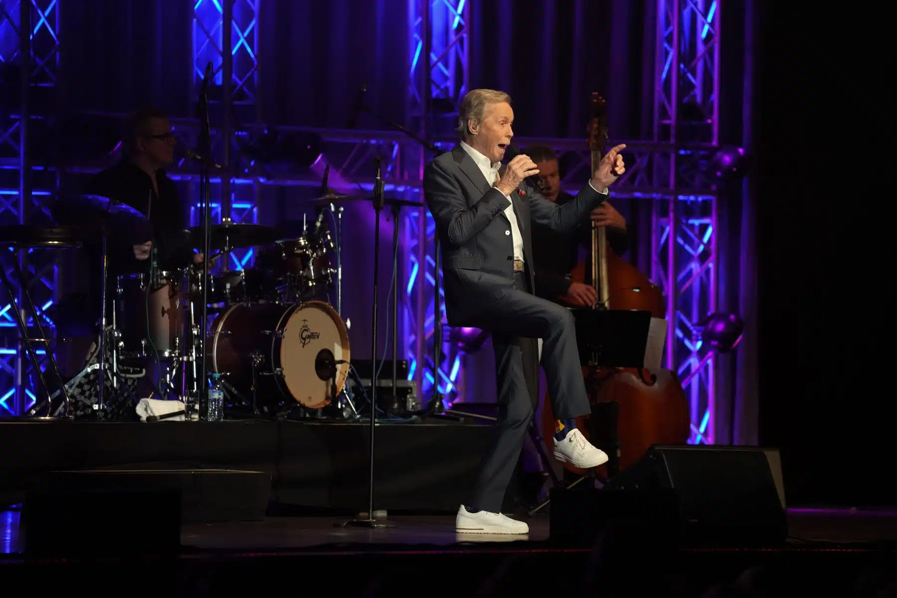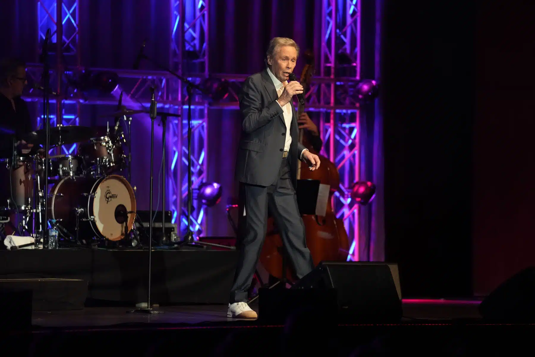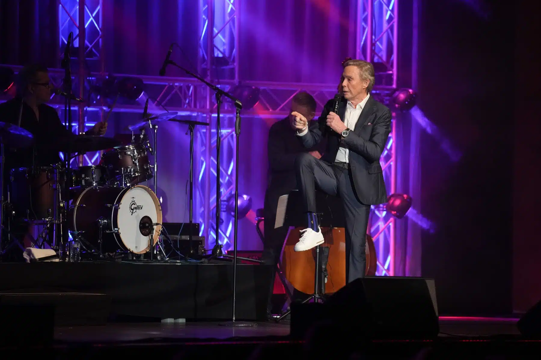 Anfang des Abends rockten Peter Kraus und seine Band mit dem Klassiker „Rock Around The Clock“ und setzten somit den Anfang eines abwechslungsreichen, musikalischen Abends. Höhepunkte des Abends waren die alten und wunderschönen Musikstücke der großen Sänger und Musiker, wie Frank Sinatra, Nat King Cole, Samy Davis Jr., Ella Fitzgerald und Louis Armstrong. Mit einer professionellen und mitreißenden Show verstand es Peter Kraus, sein Publikum in seinen Bann zu ziehen. Auch „Sugar Baby“, eine der vielen aufmüpfigen Rock N Roll Hits war dabei und holte die Gäste zum Tanzen auf dem Boden und in den Gängen aus den Sitzen. Die Show verwandelte sich zu einer beeindruckenden Bühnenshow. Es war ein Konzert, das alle Generationen begeisterte.