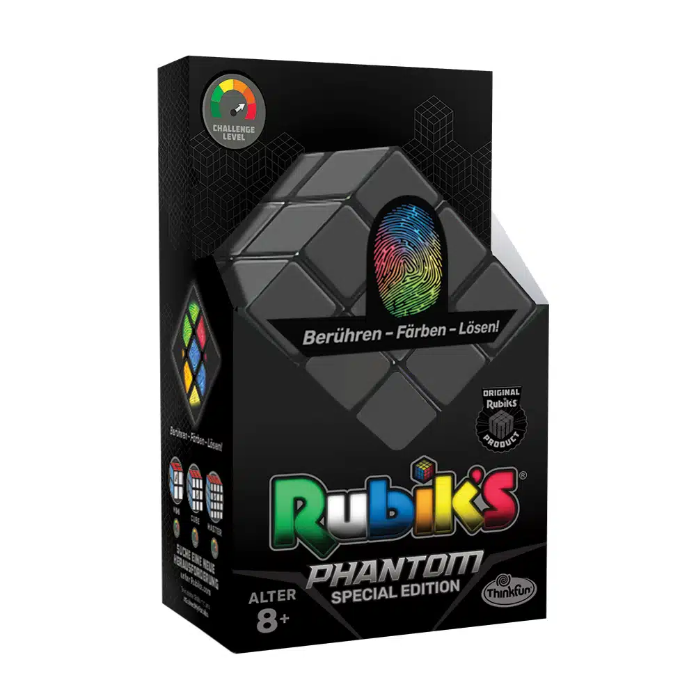 Als Special Edition überzeugt der Rubik’s Phantom seit kurzem mit einem besonders herausfordernden Design: Die wärmeempfindlichen Seiten sind mit einem speziellen Lack versehen, die ihre Farben nur bei Berührung preisgeben. Um den wahrhaftigen Zauberwürfel ins Rollen zu bringen, hat