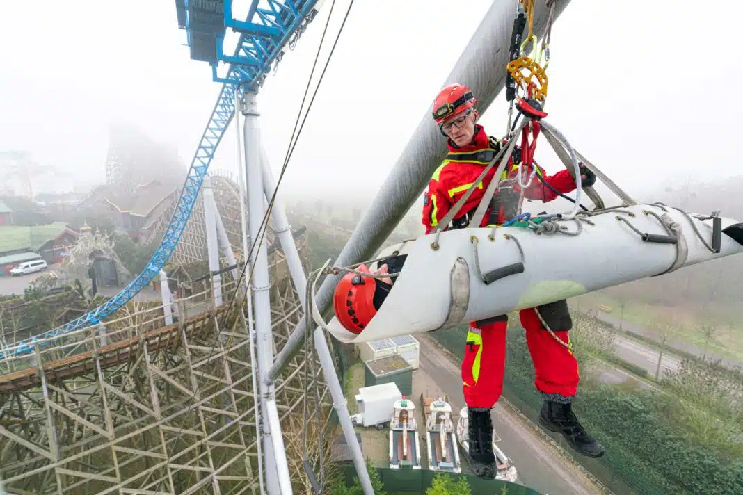 Bis zu 73 Meter geht es im Europa-Park auf den zahlreichen Achterbahnen nach oben. Genau das Richtige für die Höhenrettungsgruppe Karlsruhe, um dort verschiedenste Rettungstechniken der „Speziellen Rettung aus Höhen und Tiefen“ zu trainieren. Bei einer gemeinsamen Übung mit der Werkfeuerwehr des Europa-Park Erlebnis-Resorts probten am Mittwoch insgesamt 20 Feuerwehreinsatzkräfte für den Ernstfall.