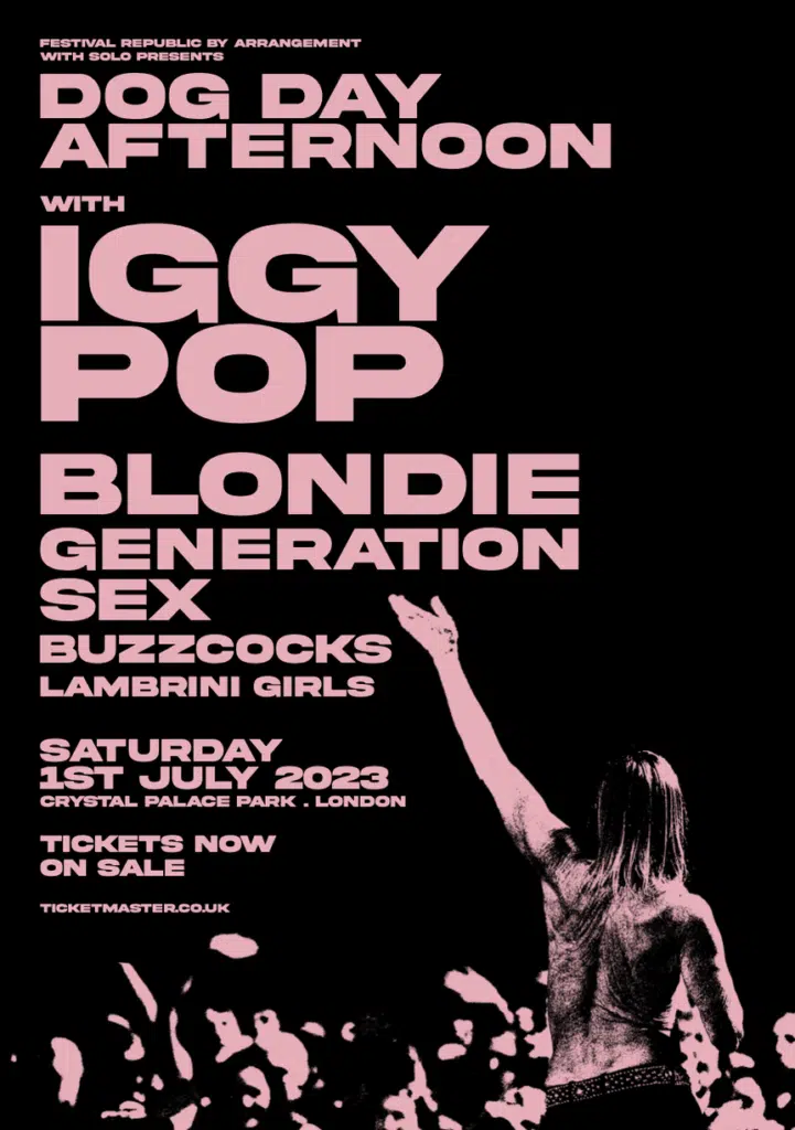 London day-festival Dog Day Afternoon, taking place on July 1st at Crystal Palace, will be headlined by Iggy Pop with Blondie and Generation Sex (Generation X’s Billy Idol and Tony James, plus Steve and Paul from Sex Pistols).