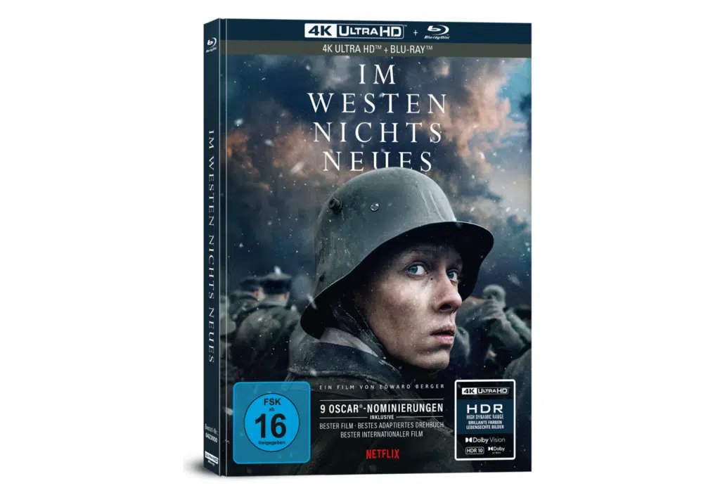 9 Oscar®- und 14 BAFTA-Nominierungen: Im Westen nichts Neues erscheint nun auch als hochwertige Heimkino-Edition! Am 24. März 2023 veröffentlicht capelight pictures in Zusammenarbeit mit Netflix Edward Bergers Meisterwerk als 2-Disc Limited Collector’s Edition im Mediabook mit dem Film in 4K Ultra HD auf UHD-Blu-ray und in HD auf Blu-ray.
