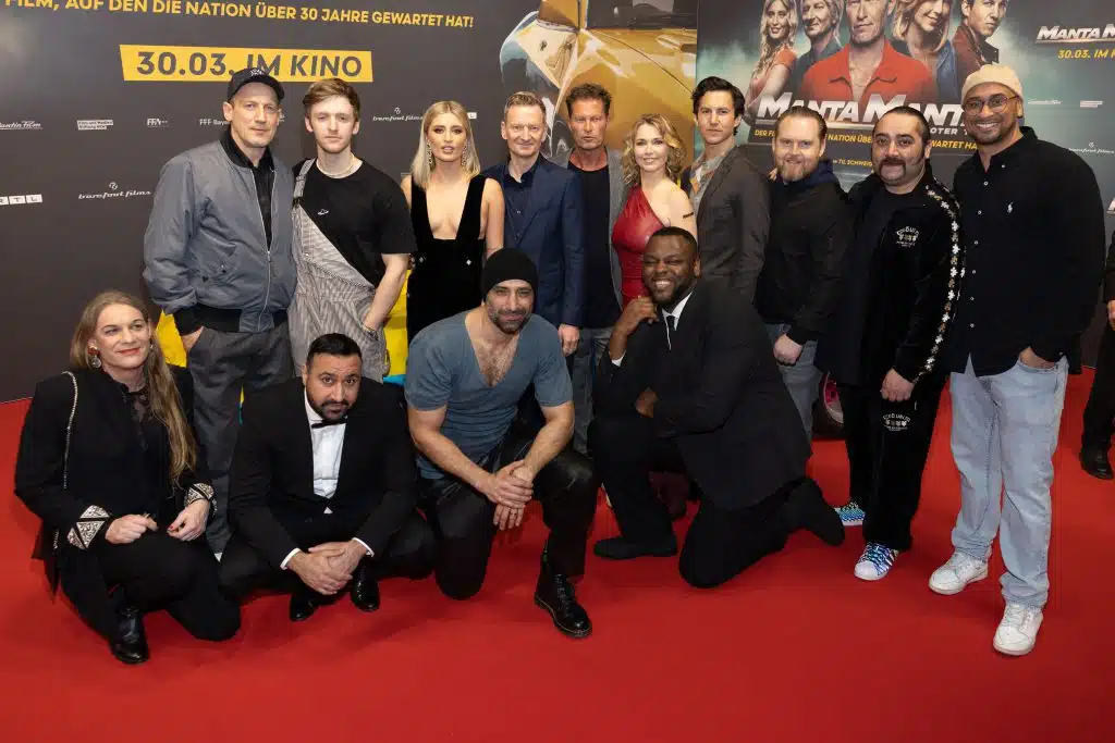 Regisseur, Drehbuchautor und Hauptdarsteller Til Schweiger, Tina Ruland, Michael Kessler, Luna Schweiger, Tim Oliver Schultz sowie Tamer Trasoglu, Ronis Goliath, Nilam Farooq, Wotan Wilke Möhring und Axel Stein wurden ebenso wie Tuninglegende Jean Pierre „JP“ Kraemer und Fußballstar Lukas Podolski, die beide einen Cameo-Auftritt im Film haben, Timur Bartels, Isabel Vollmer, Evelyn Burdecki, Alena Gerber, Justus Johanssen und Kailas Mahadevan unter großem Jubel und Blitzlichtgewitter am Roten Teppich begrüßt. Auch die Produzent*innen Viola Jäger, Christoph Müller und Philipp Reuter freuten sich darauf, die Fortsetzung von „Manta, Manta“ endlich vor großem Publikum zu präsentieren.