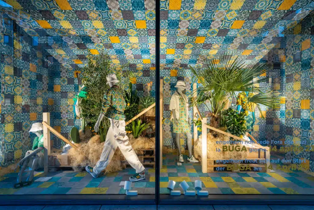 Mannheim, 29. März 2023. Anlässlich der BUGA 23 in Mannheim blüht es in den Häusern unter dem Motto „Testa di Moro“. Kundinnen und Kunden können seit knapp einer Woche die sizilianische, südl.ndische Atmosphäre in den Häusern sehen und genießen. Die Schaufenster bei engelhorn Mode im Quadrat, engelhorn sports und engelhorn Dessous und Wäsche wurden vom Creative Director von engelhorn, Herrn Jürgen Müller, kunstvoll und aufwendig in Szene gesetzt. Zitronenbäume, Palmen, Olivenbäume und die sizilianische Keramiktradition bringen italienisches Flair nach Mannheim.