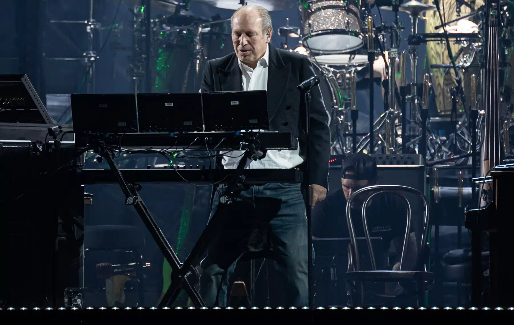 Aber es war nicht nur seine brillante Musik, die das Publikum zum Ausrasten brachte. Es war die unverkennbare Freude, die Hans Zimmer auf der Bühne ausstrahlte, vielleicht mehr als jeder andere Künstler, den man je gesehen hat. Er hatte sichtlich Spaß am Leben, bewegte sich im Rhythmus, stampfte mit den Füßen und schloss die Augen, um ganz in die Musik einzutauchen. Es gab Momente, in denen er einfach nur seinen virtuosen Gitarristen Guthrie Robert Govan beobachtete und die Magie genoss, die sie gemeinsam erzeugten.