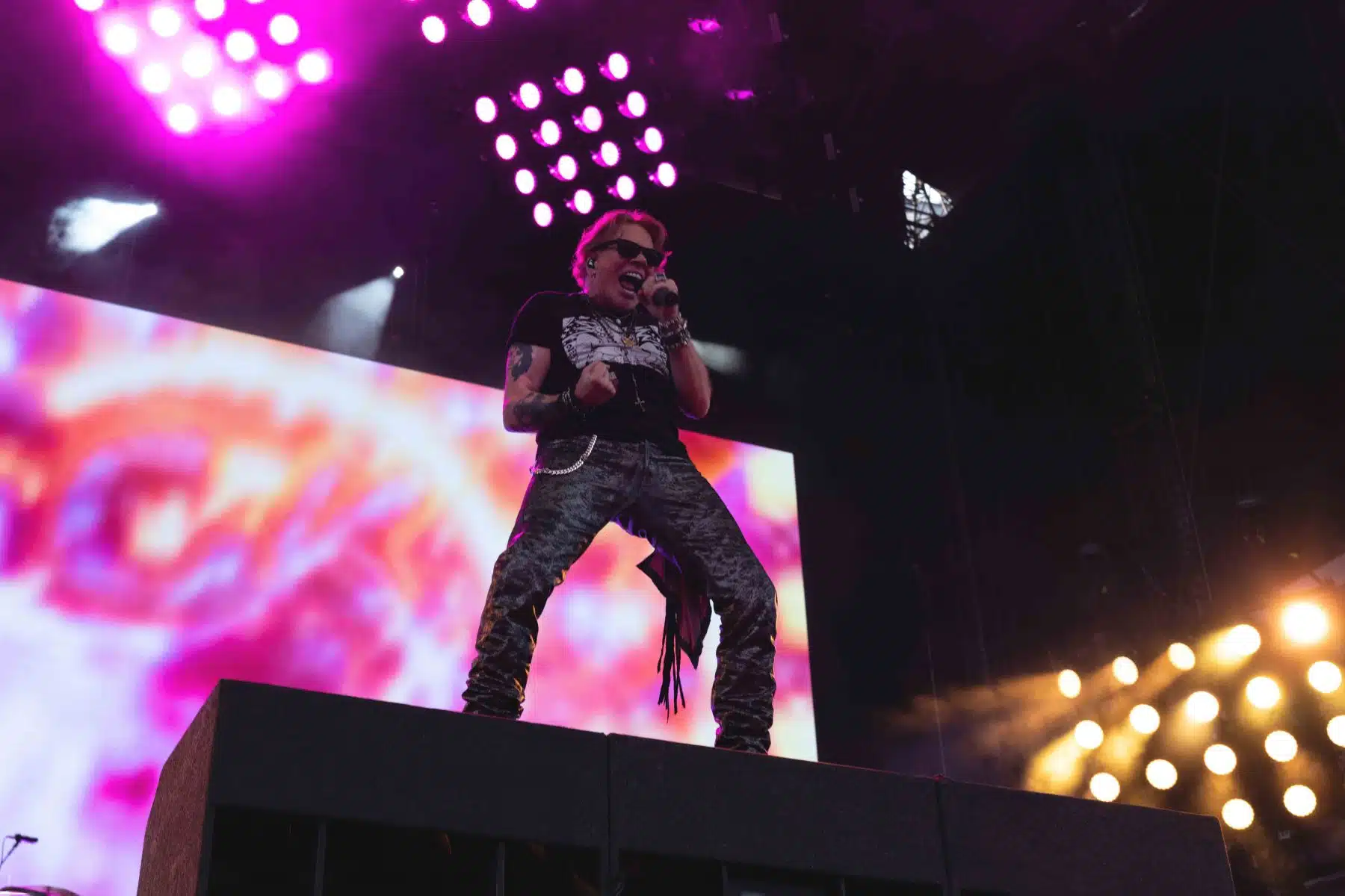 Das Stadion bebte förmlich, als die Lichter ausgingen und die charakteristischen Gitarrenriffs von Slash erklangen. Die Band betrat die Bühne mit voller Energie und eröffnete die Show mit ihrem Klassiker „It´s So Easy“. Die Menge tobte vor Begeisterung, und der Frontmann Axl Rose bewies sofort, dass er noch immer einer der charismatischsten und kraftvollsten Sänger der Rockgeschichte ist. Seine ikonische Stimme durchdrang das Stadion, und die Fans sangen aus voller Kehle mit.